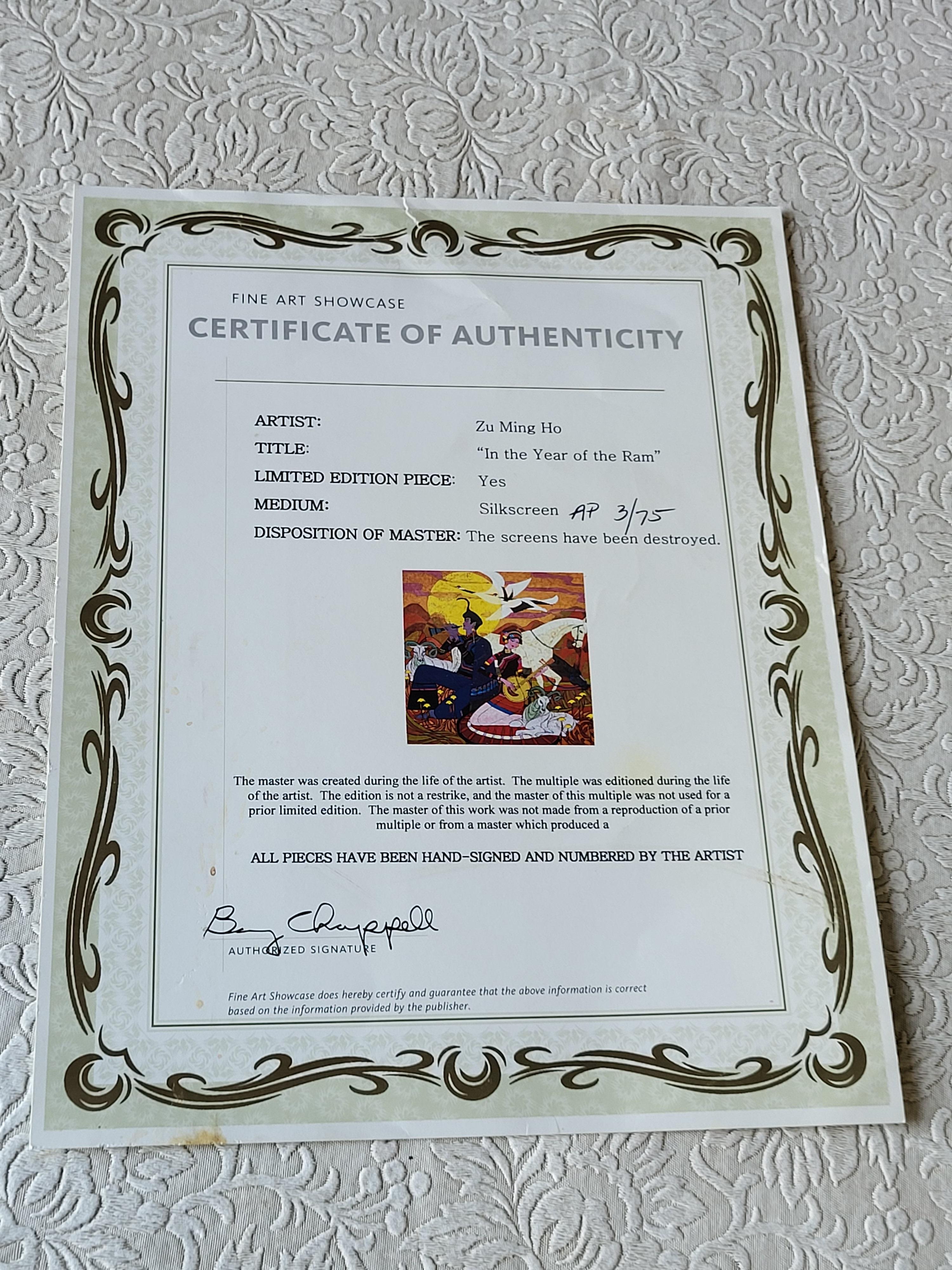 zu ming ho in the year of the rain artist proof serigraph w/ coa from the estate collection with coa! 27" x 27" framed size see pics