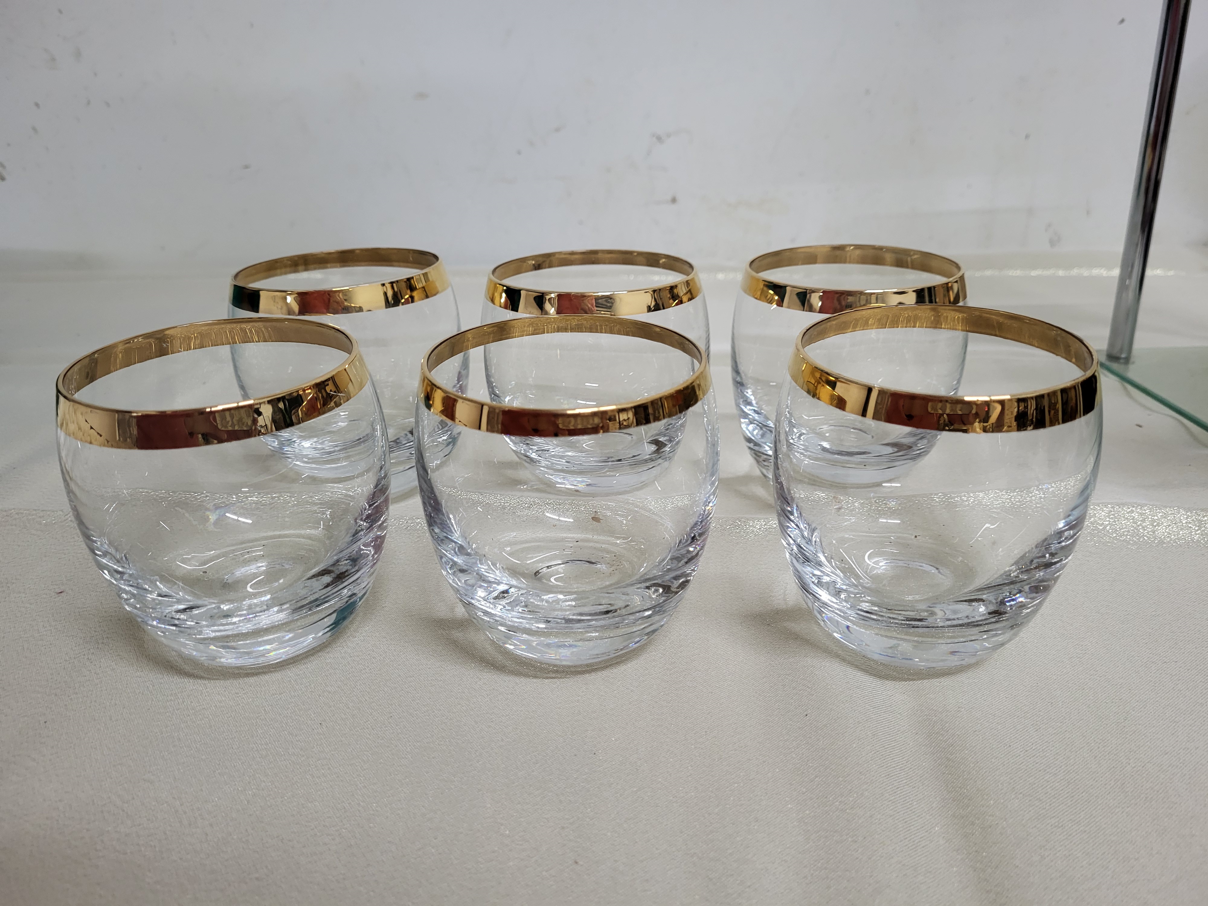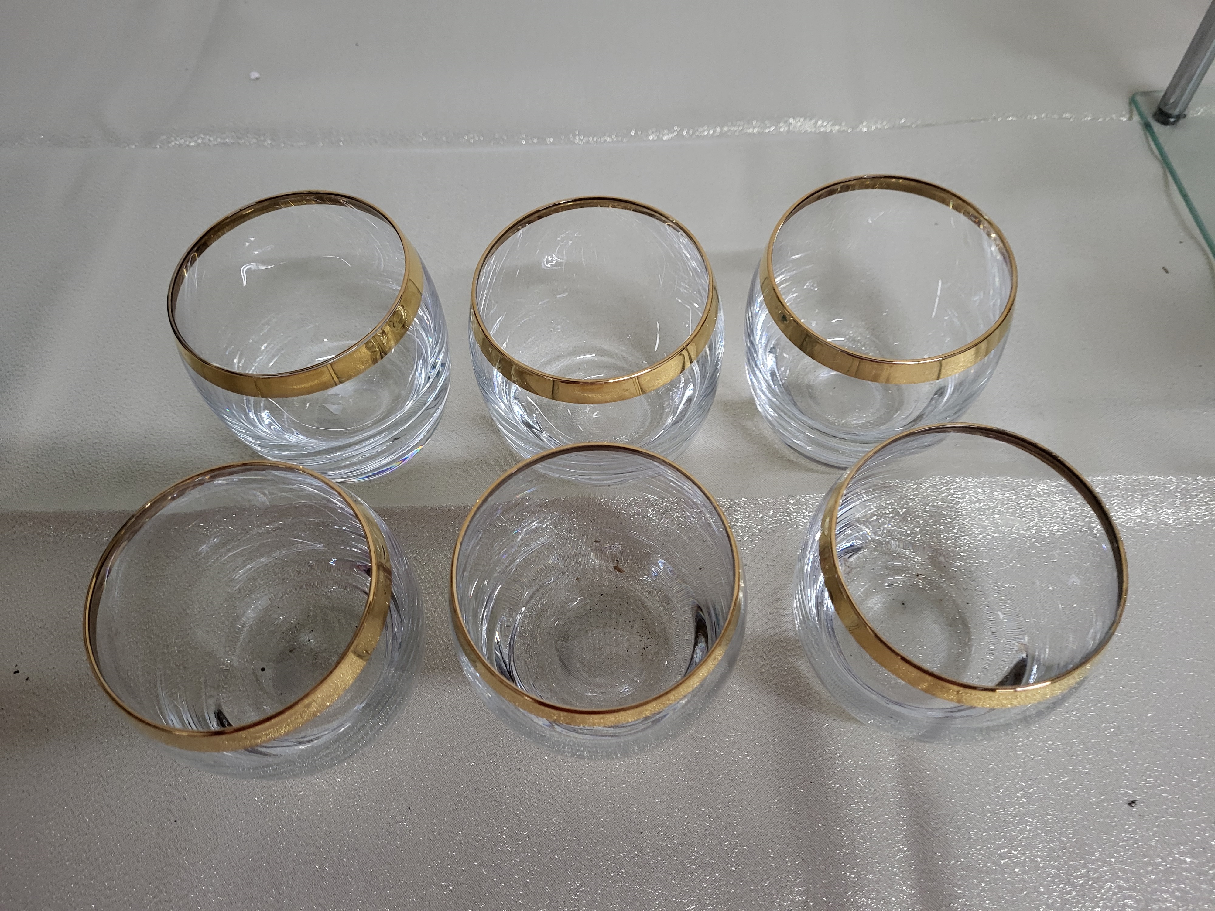 in excellent conditon no break all 6 for one bid see pics they also call them roly poly glasses gold rim