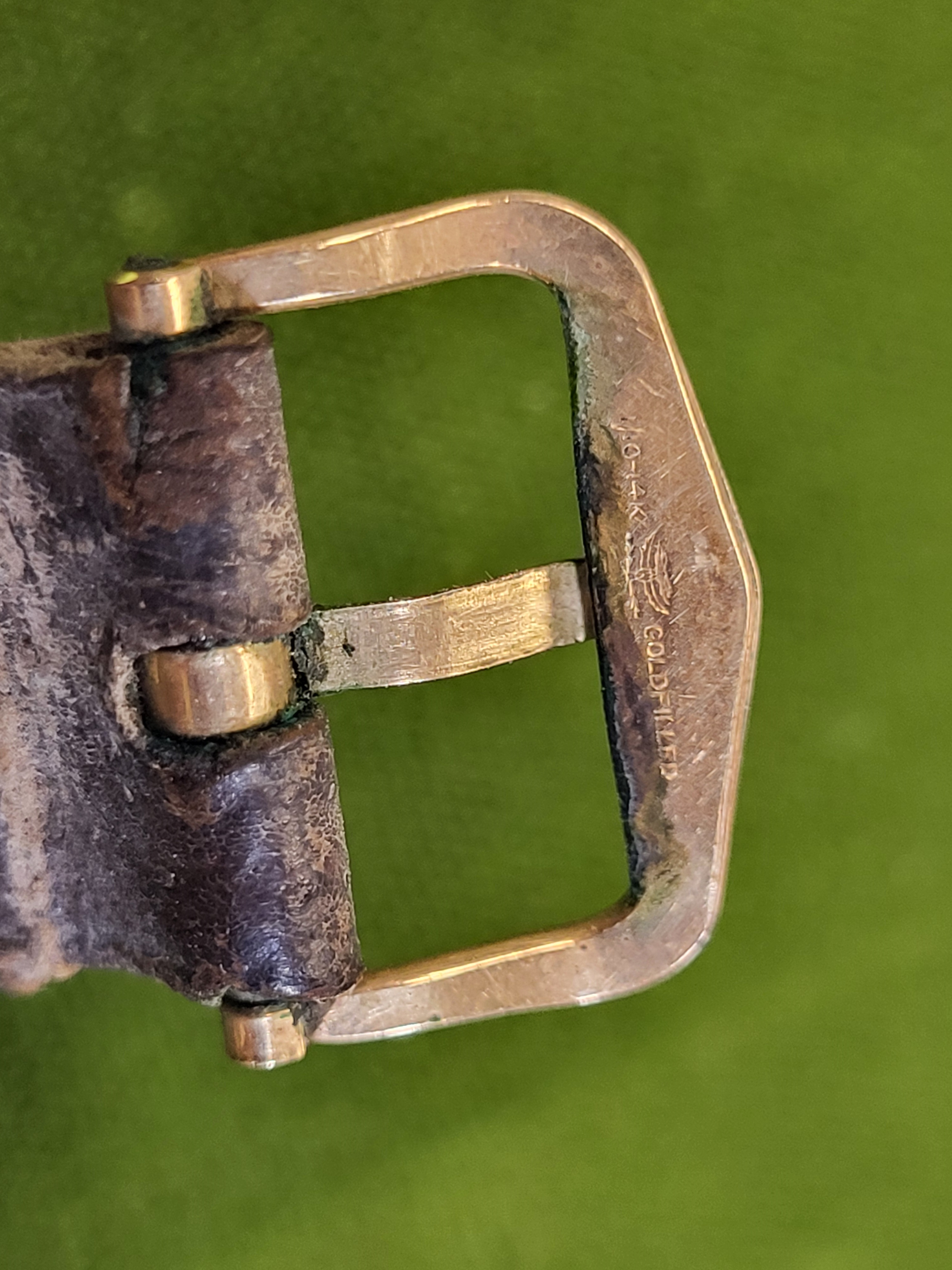grade 430 movement 6/0 size 14k gold filled and gold filled buckles movement is working will need hands and crystal seepics
