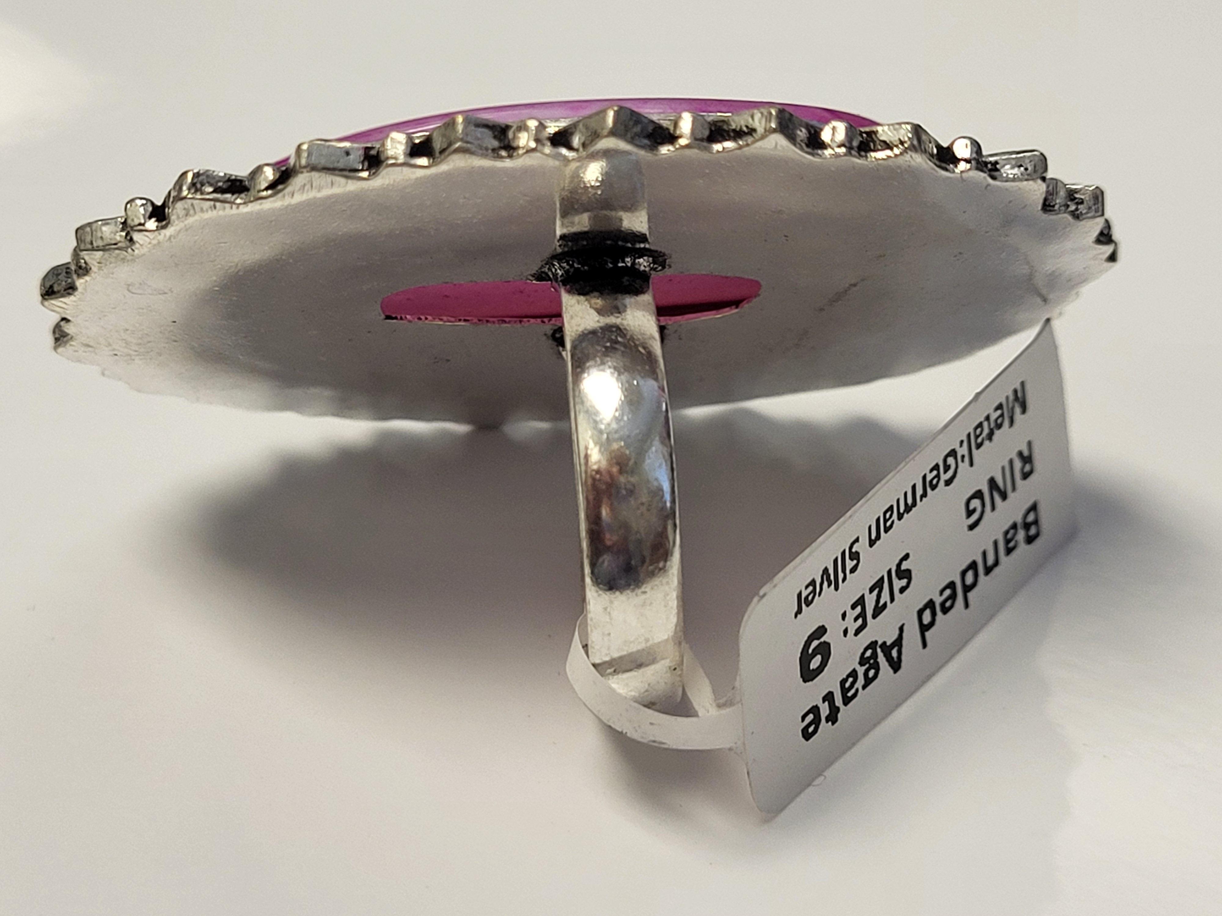beautiful! nwt 37mm x24mm banded agate sz 9 ring unmarked seepic