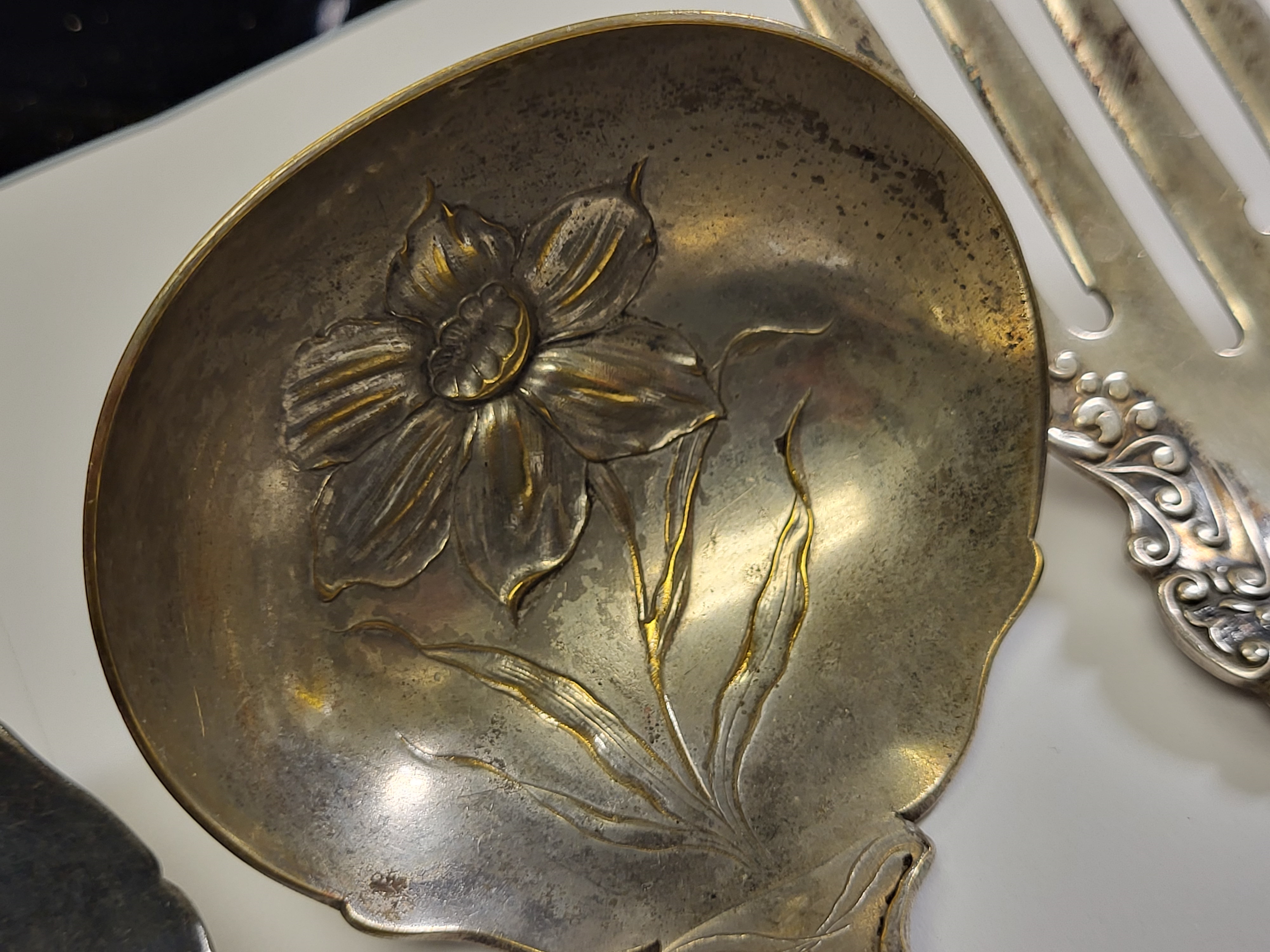 Victorian silver plate lot ladle, fork, butter spoons