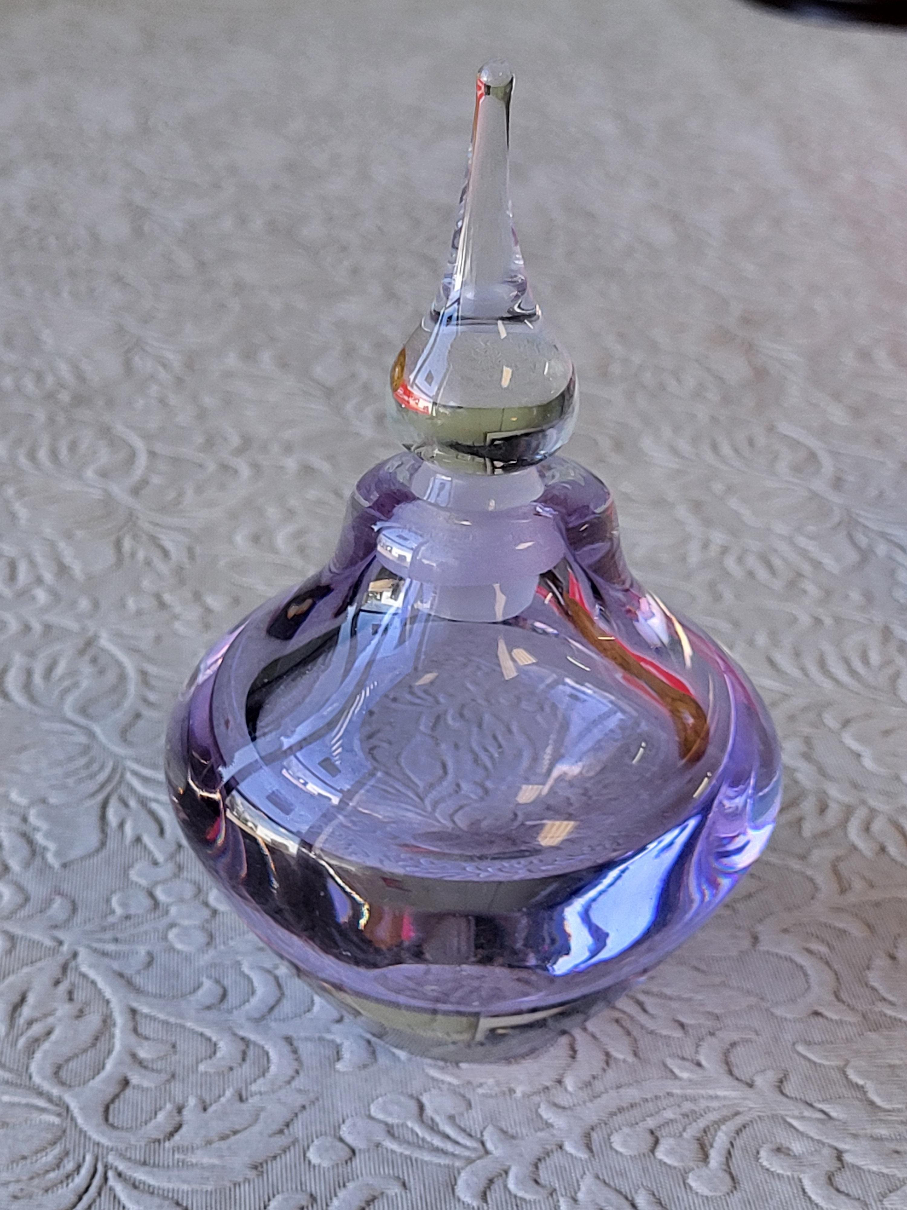 nice medium lavender color 4 3/4″ w/ stopper n damage noted see pic