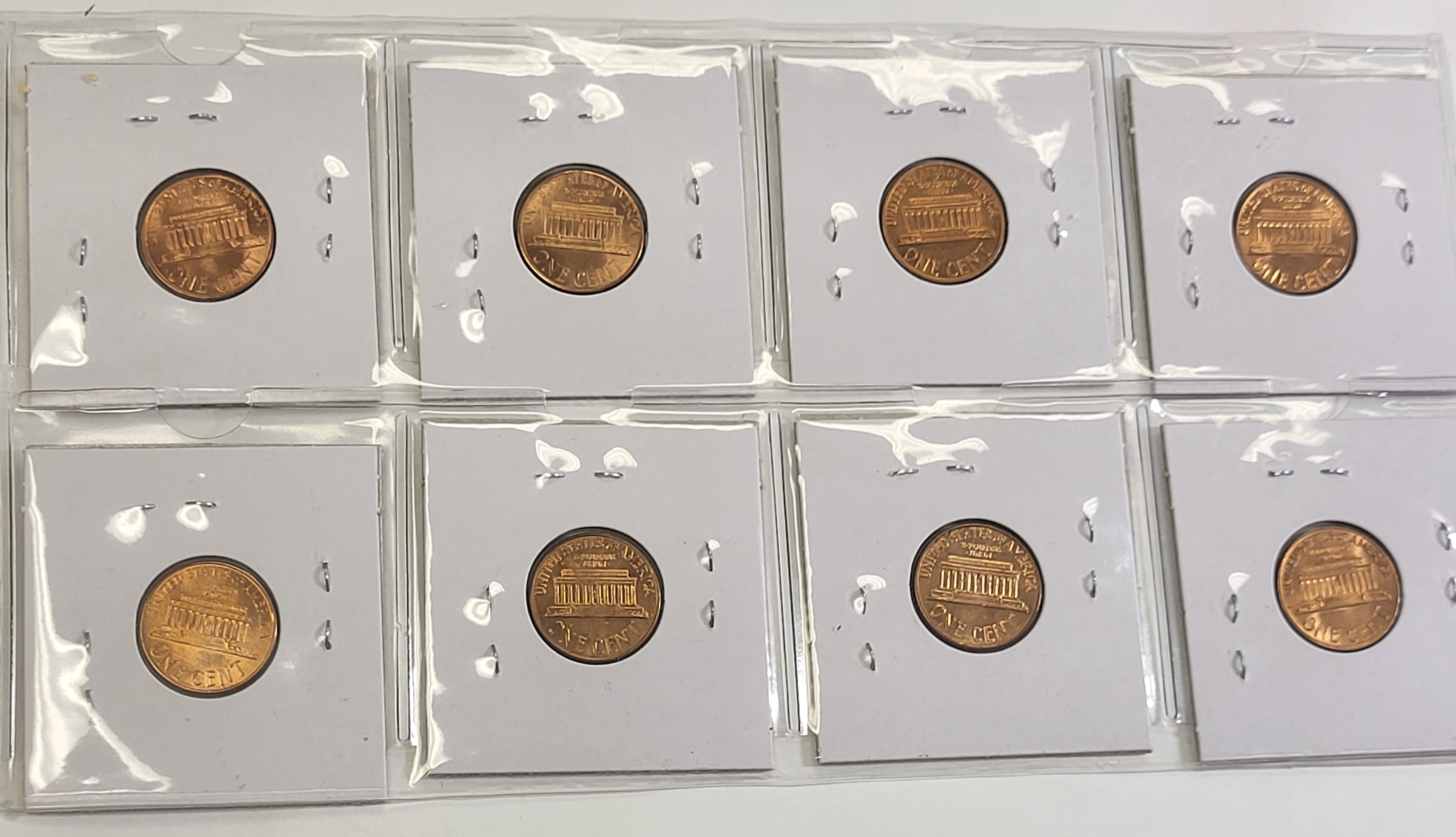 all brilliant unc. red 1960D, 63D, 64D, 70P, 73P, 74P, 79P and 81 D check out the pics all 8 for one bid