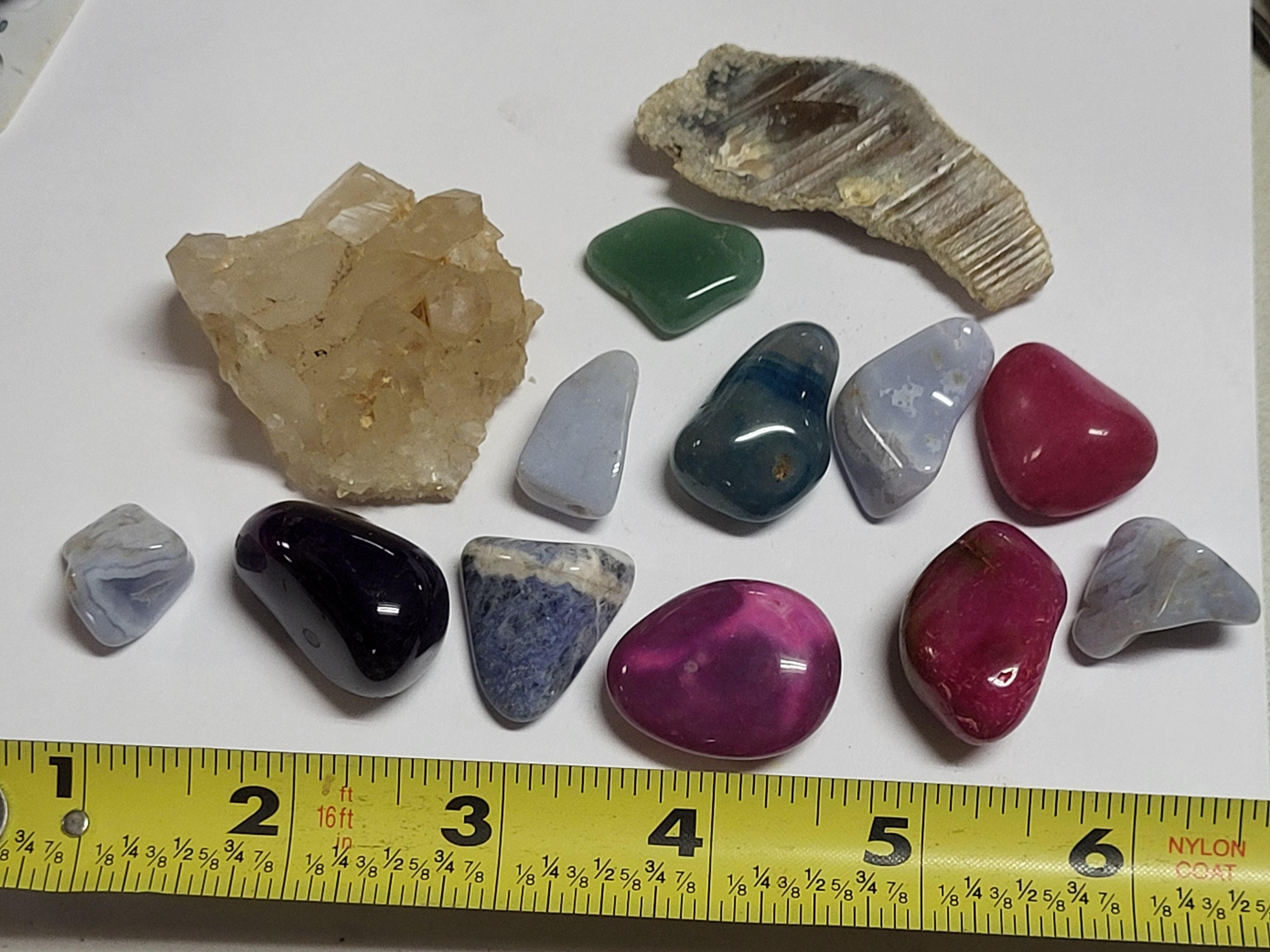 tumbled gemstone lot of 13 pcs quartz, jade, purple agate, sodalite etc all beautiful stones could be wire wrapped or cut and set in jewelry all 13 pcs for one bid seepics