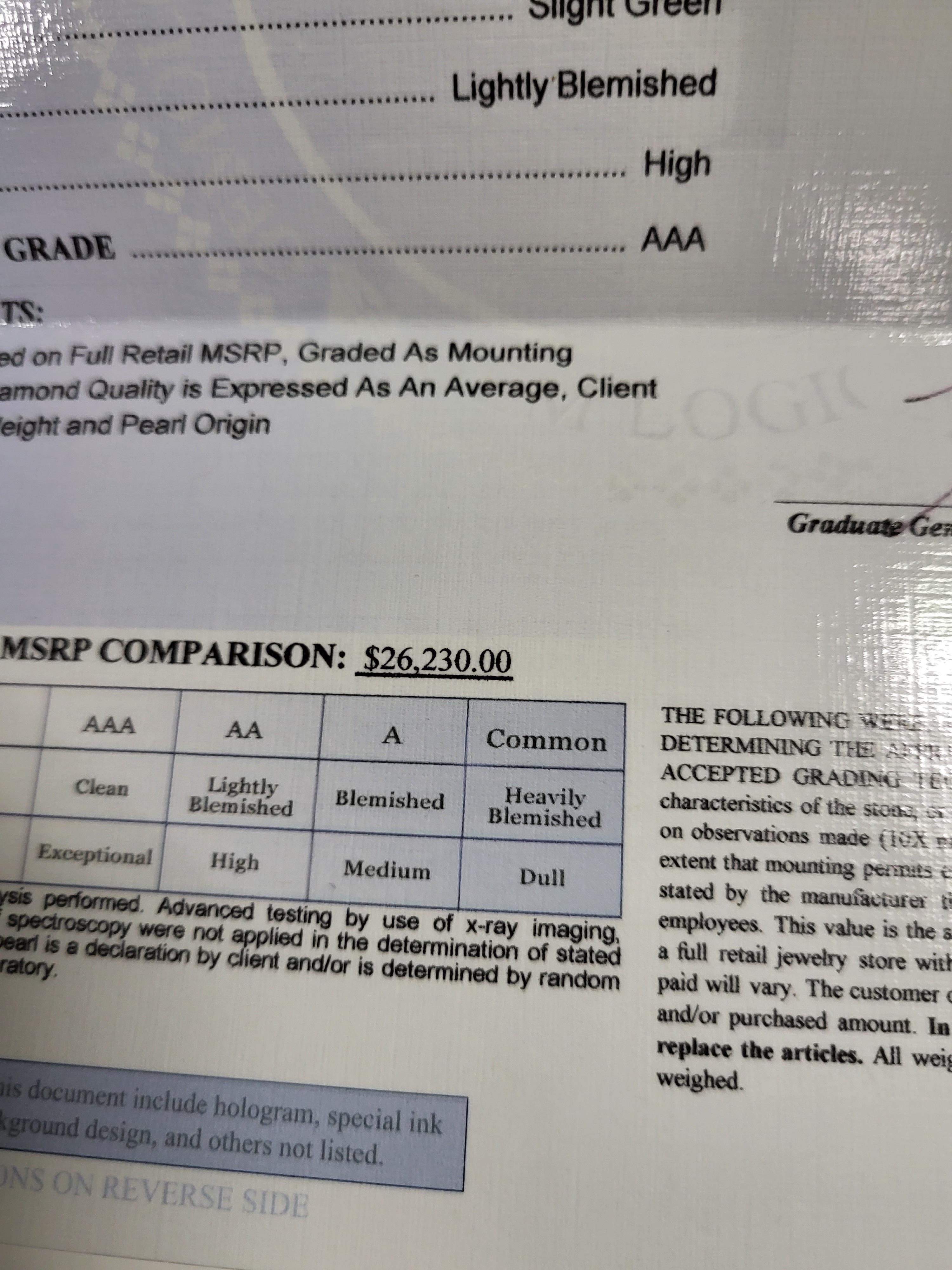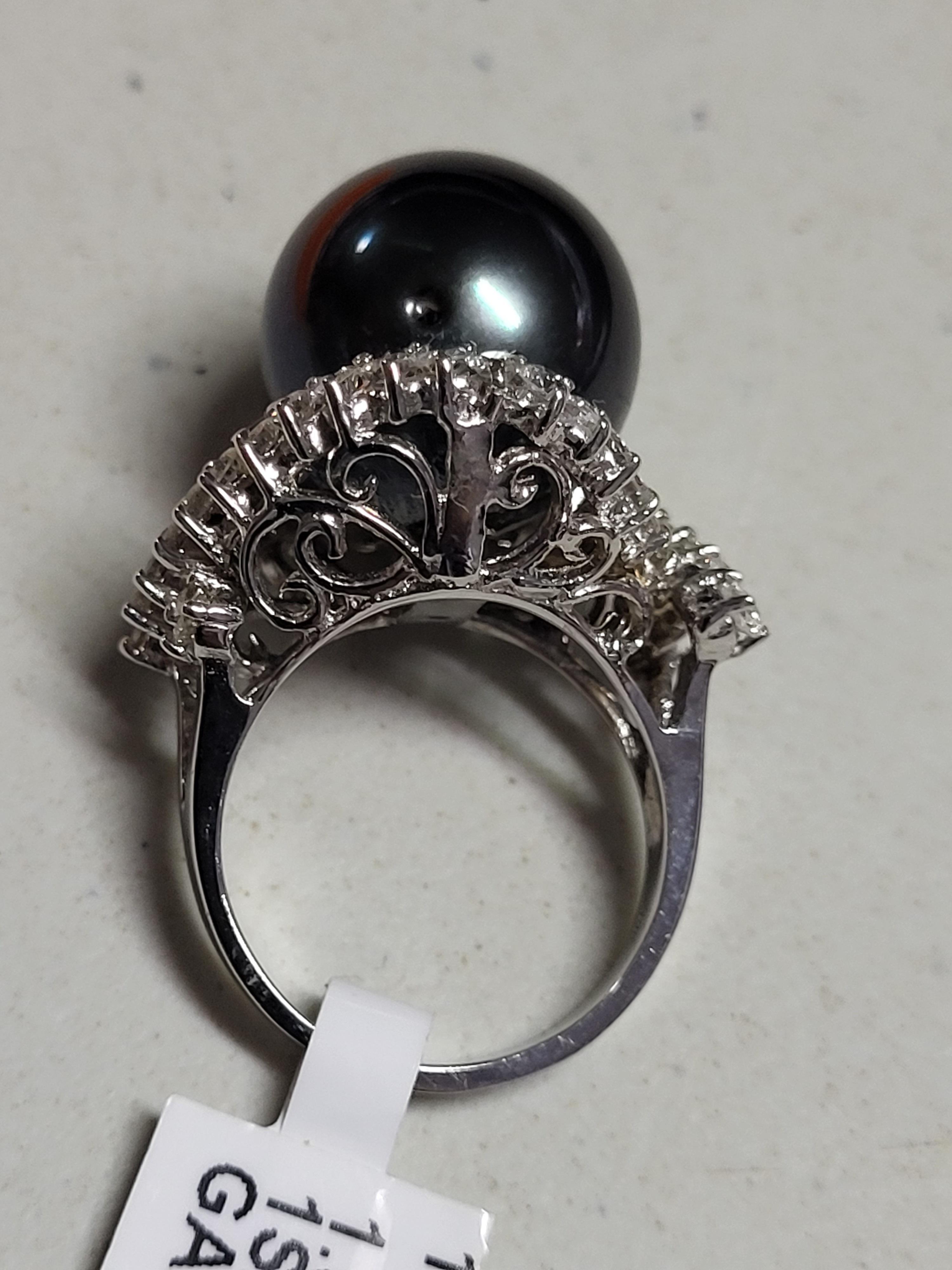 18k white gold south sea pearl and diamond ring 39 round brilliant cut diamonds, 14.00-15.00 mm black slight green high luster quality grade AAA pearl with appraisal msrp $26,230.00 size 6