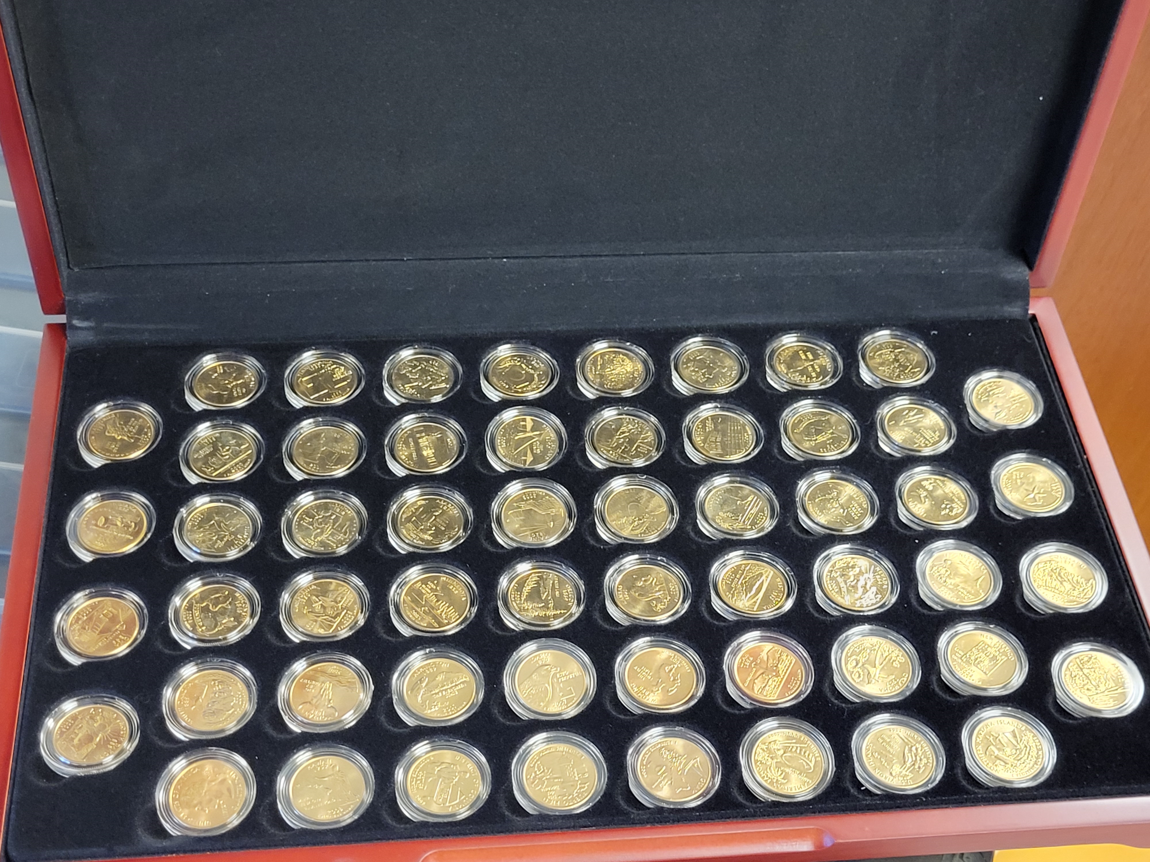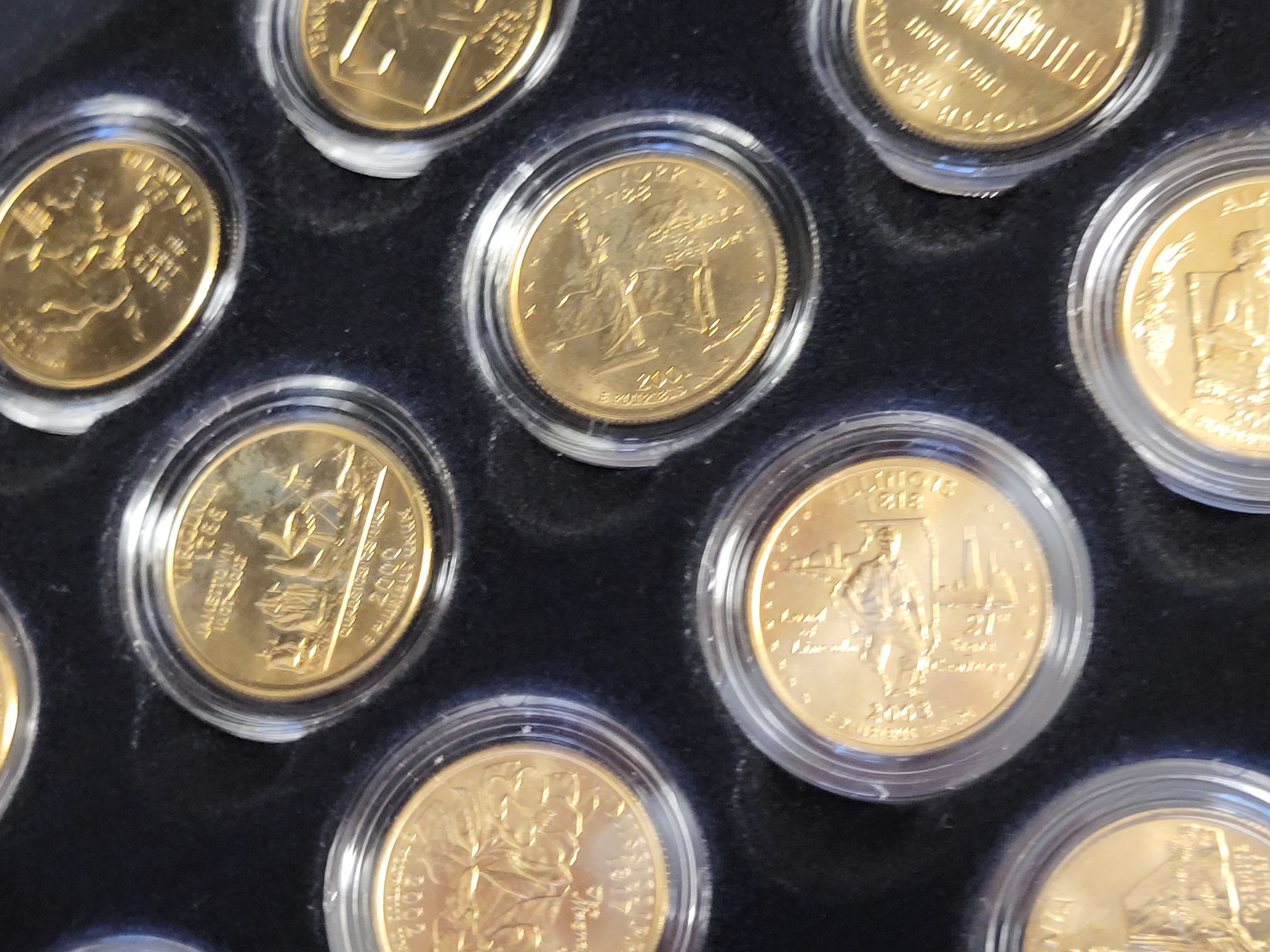 lot of 56 us statehood quarters 24K gold plated gem mint! in presentation box