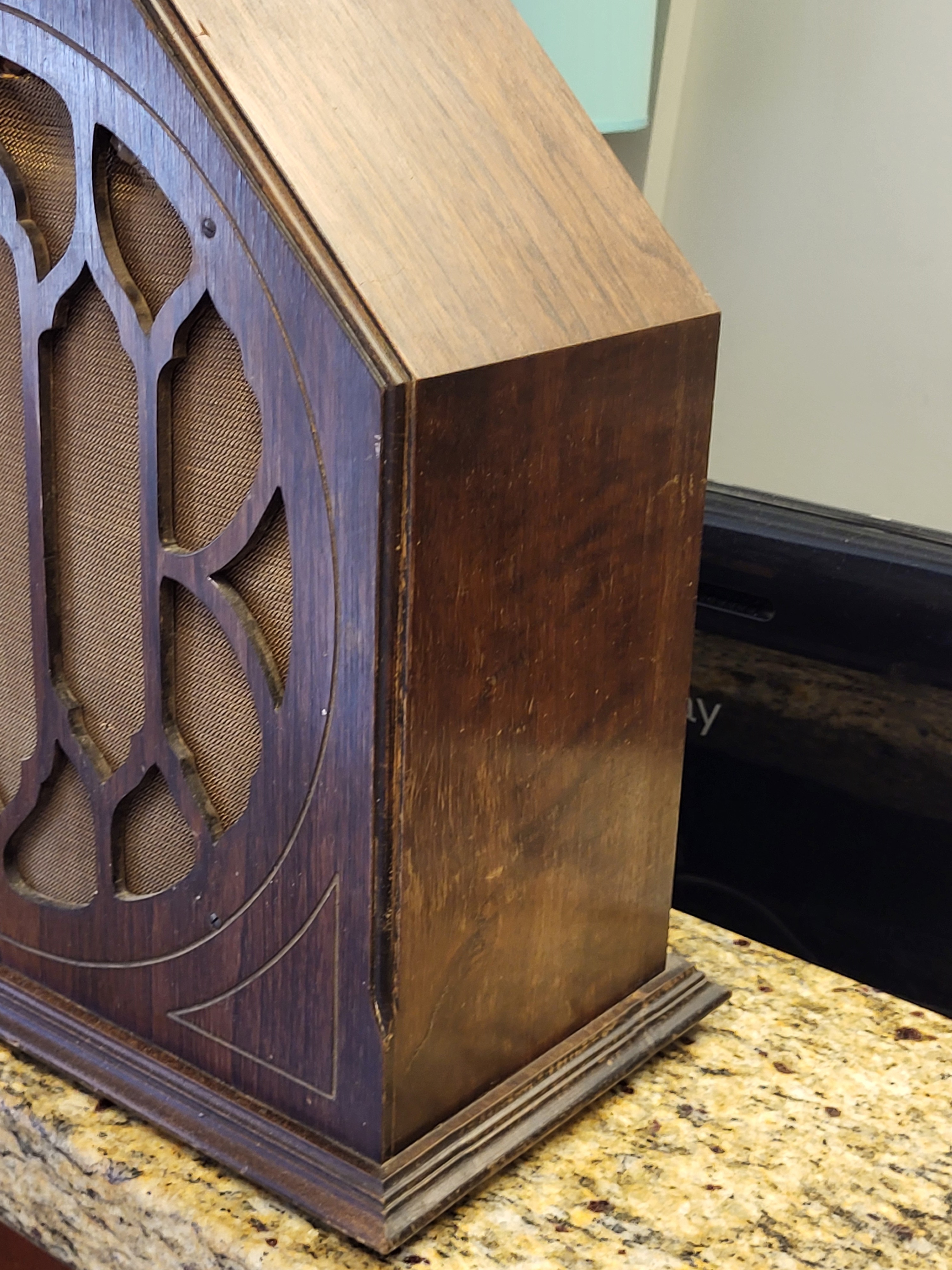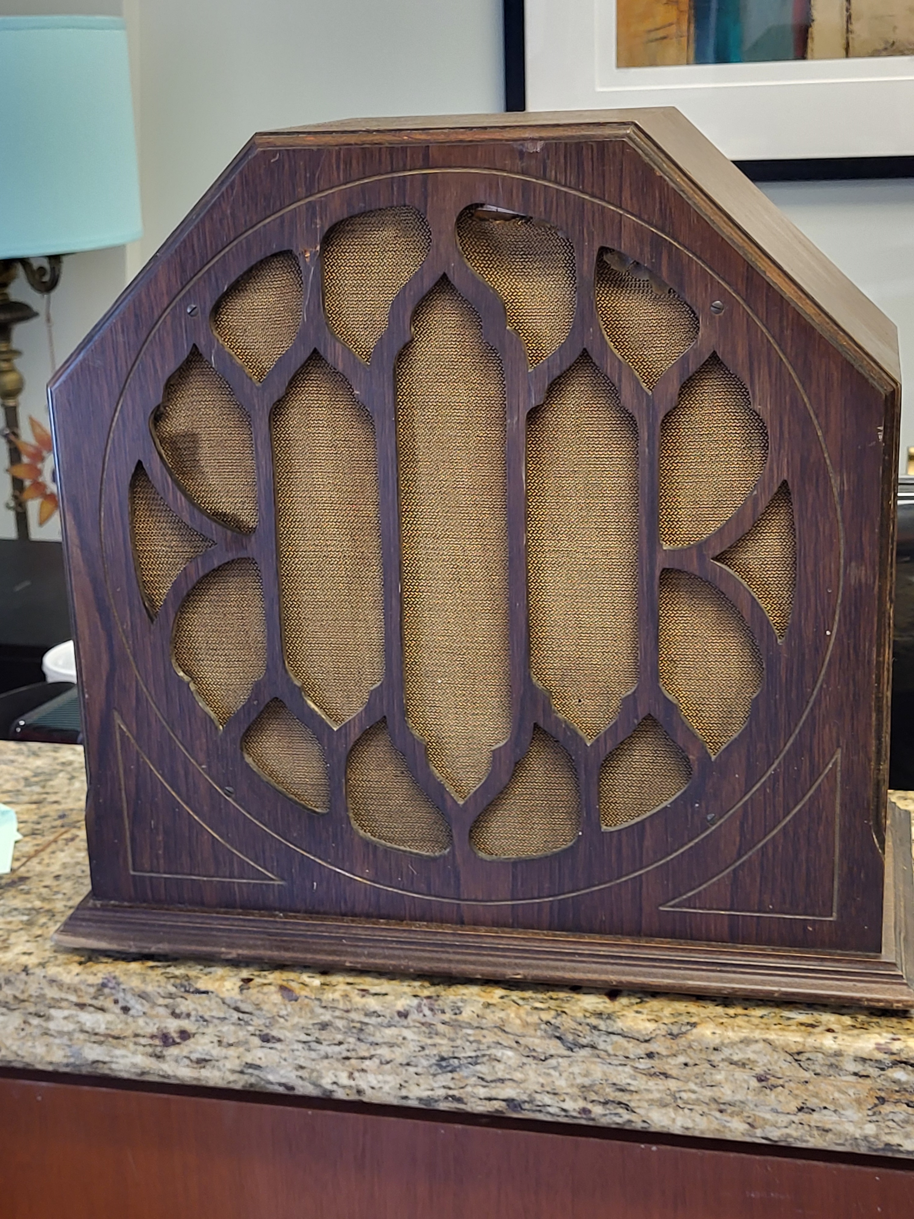 vintage , very nice octagon cabinet unsigned maker from estate marked working, not tested by us 15 1/2″ x 16 /2″ x 8″