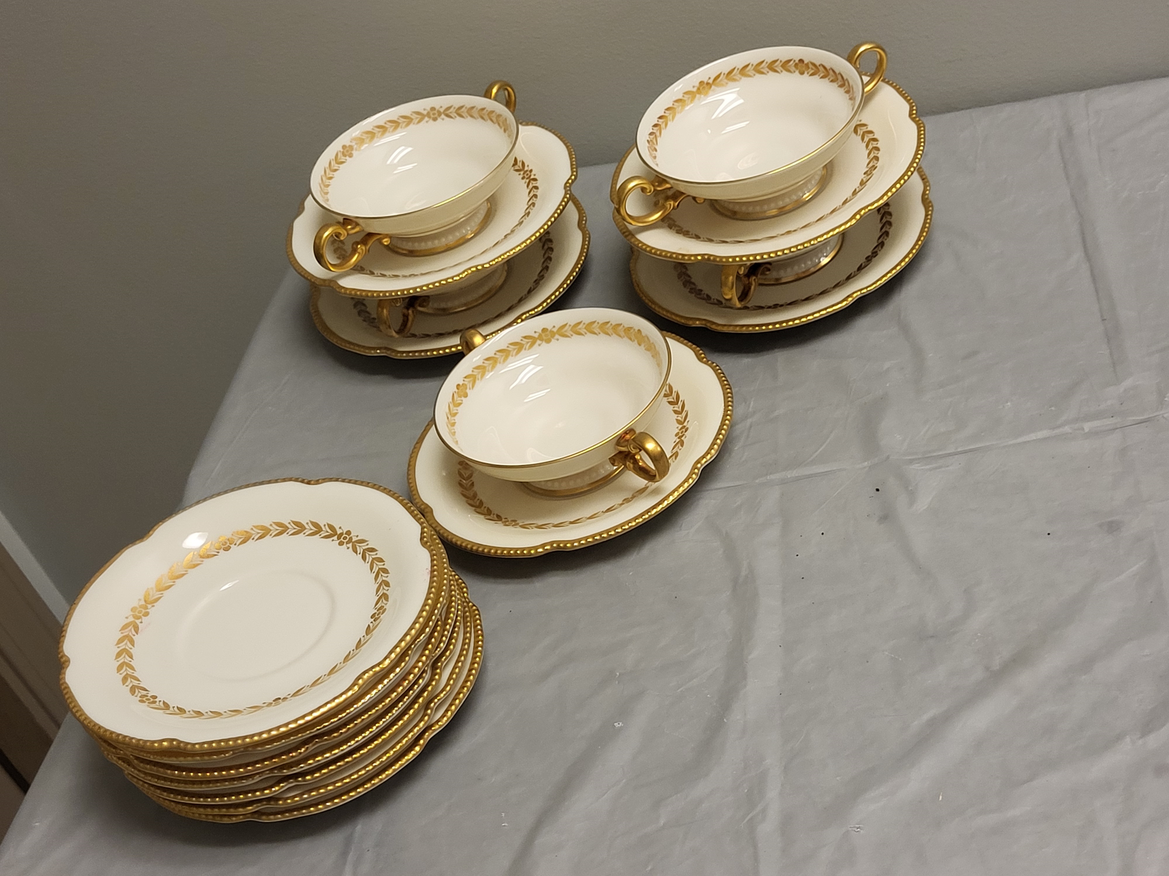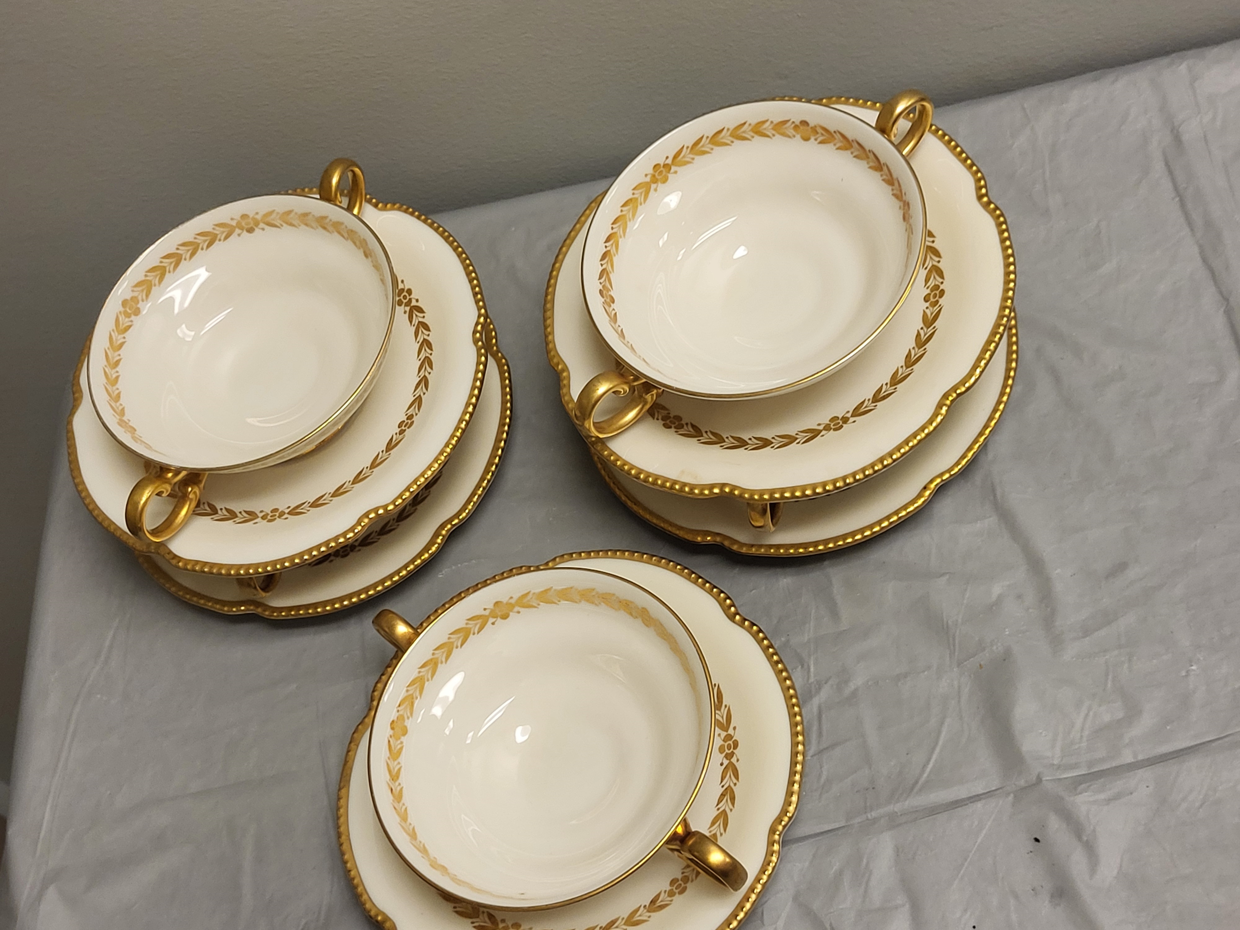 laurel – castleton footed cream soup bowls w/ under plates lot of 17