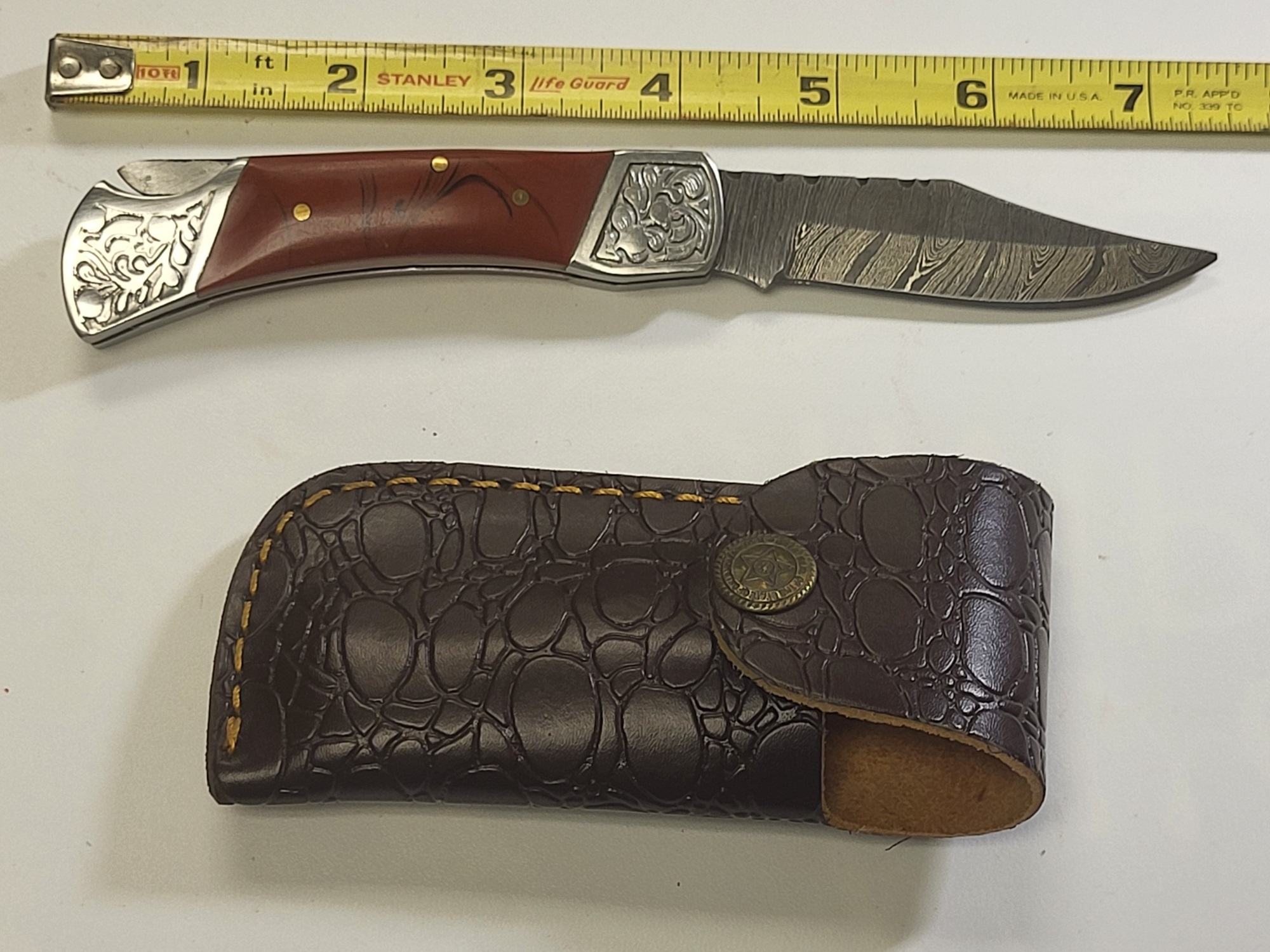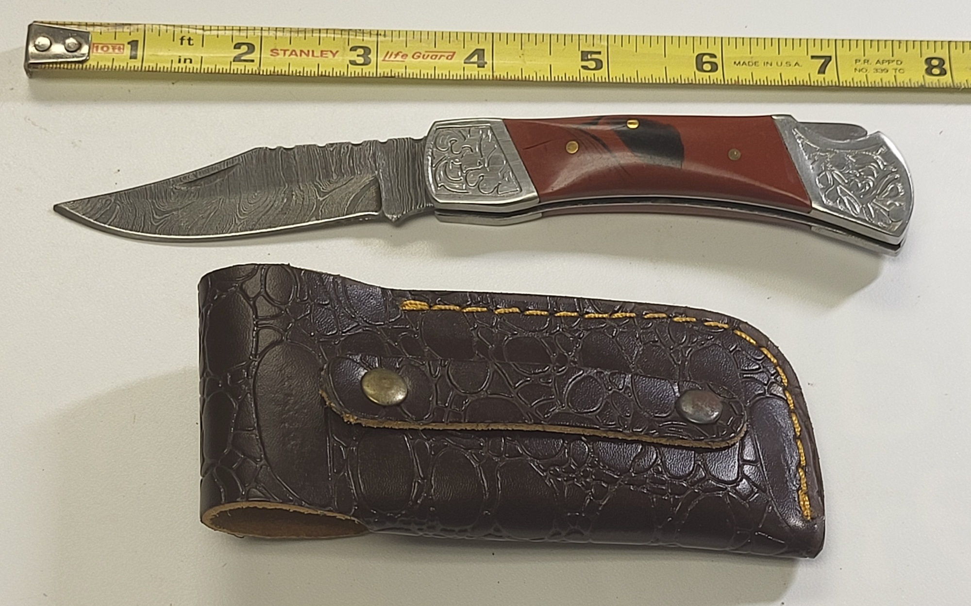 Damascus steel folding lock blade pocket knife w/sheath damascus steel folding lock blade pocket knife w/sheat