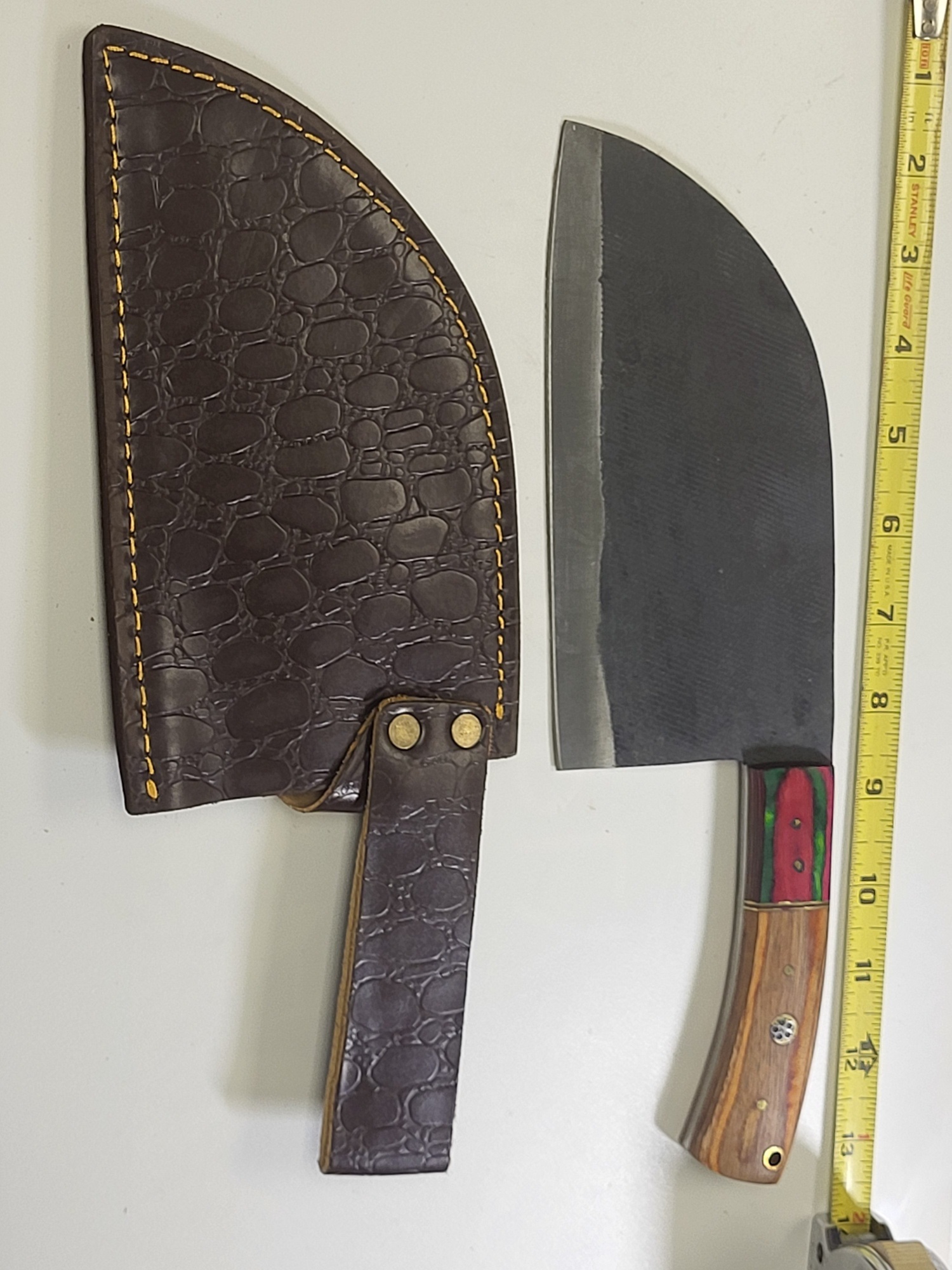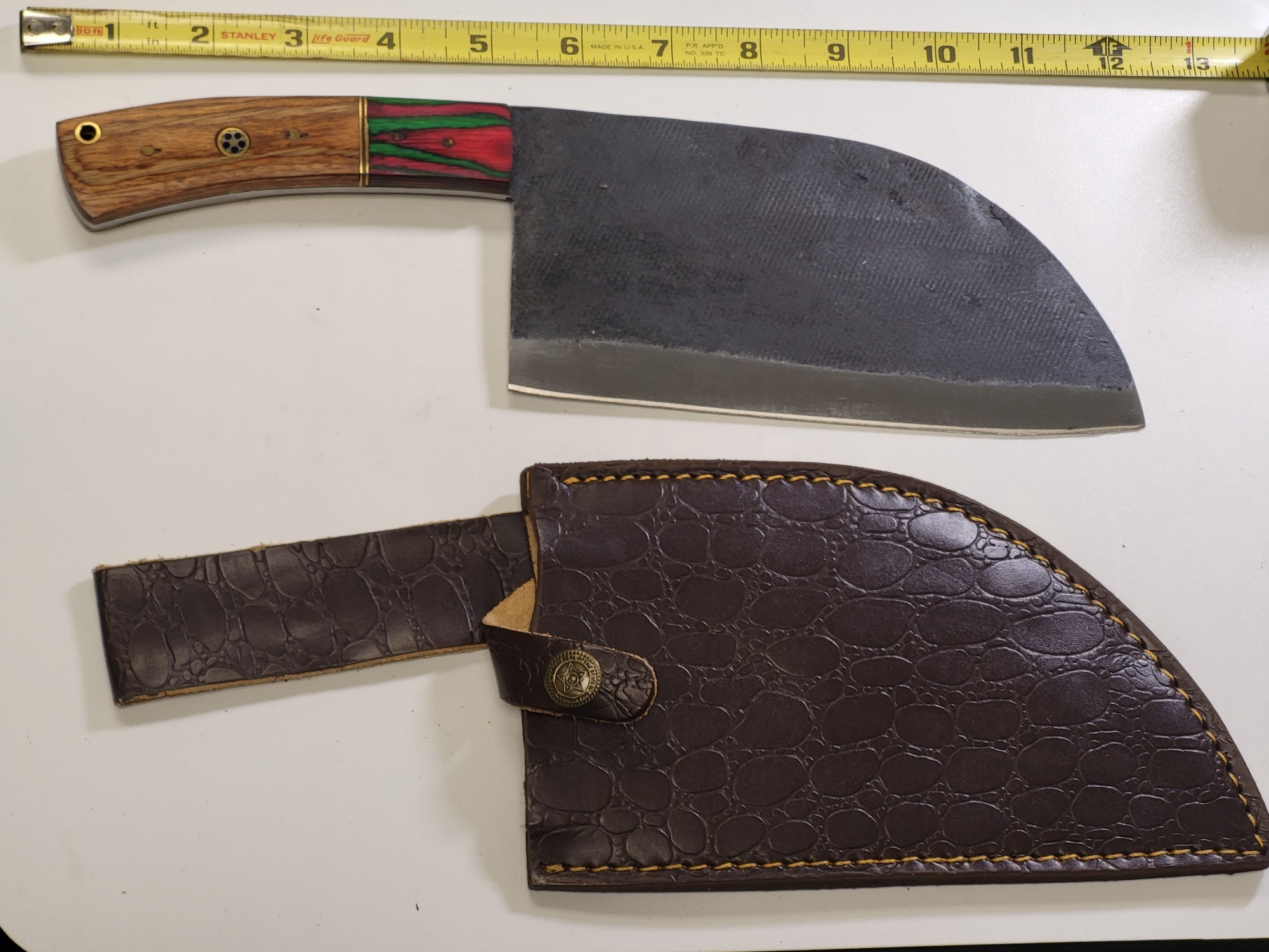 Damascus steel meat cleaver w/leather sheath