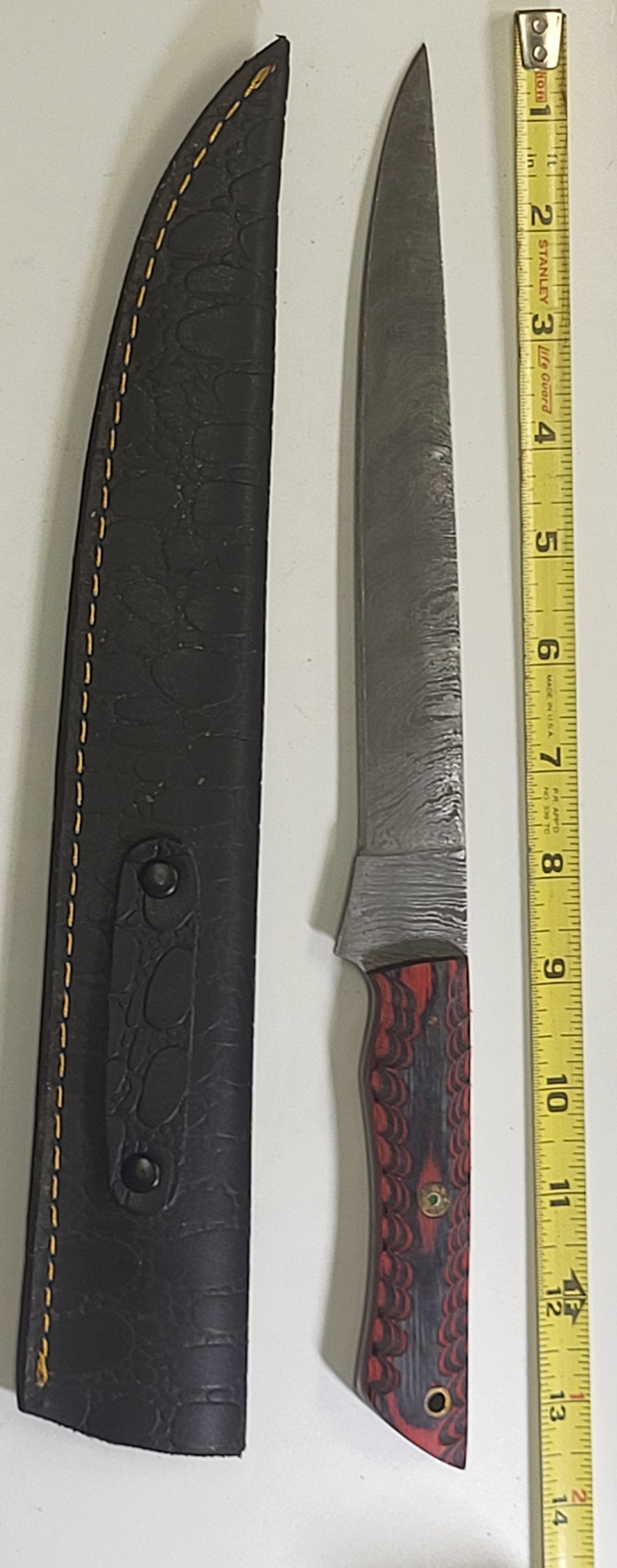 in excellent condition 13.5″ w/ leather sheath great for the fisherman or chief see pics