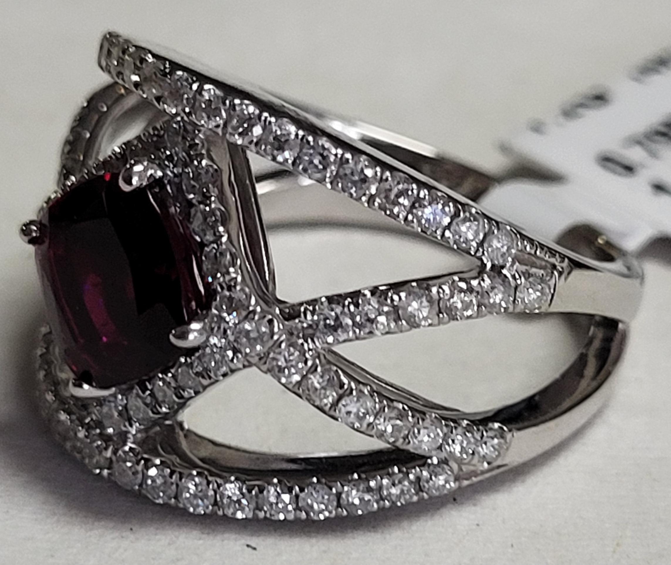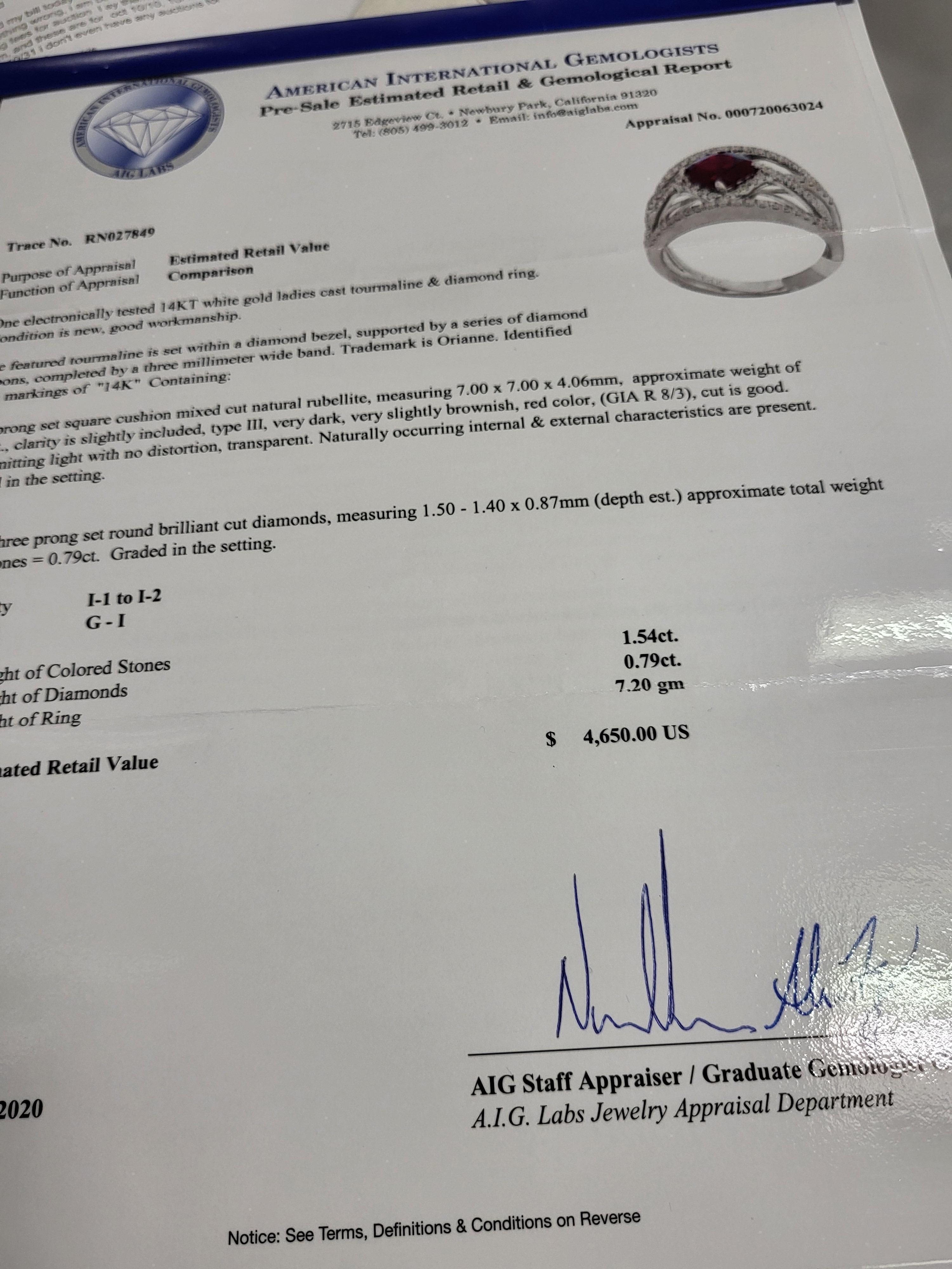 14k white gold setting w/center 1.54 carat tourmaline surrounded by 83 prong set diamonds w/appraisal $4650.00 size 7