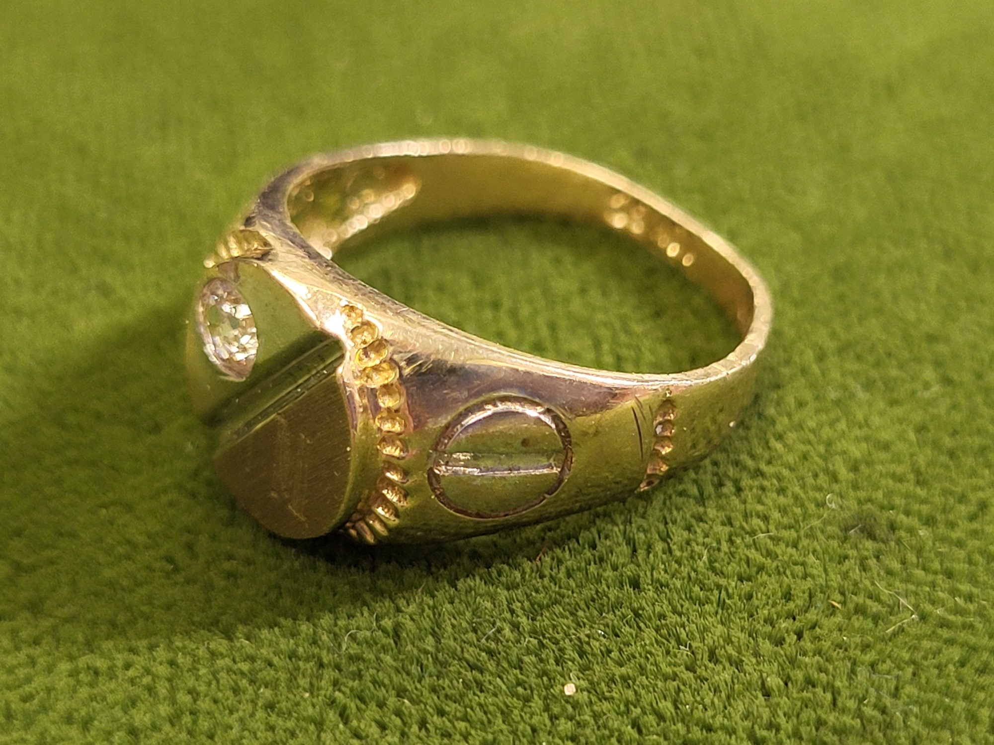 sz 4.5 from estate marked 10 k gs with faux diamond very pretty ring 2.2 grams see pics