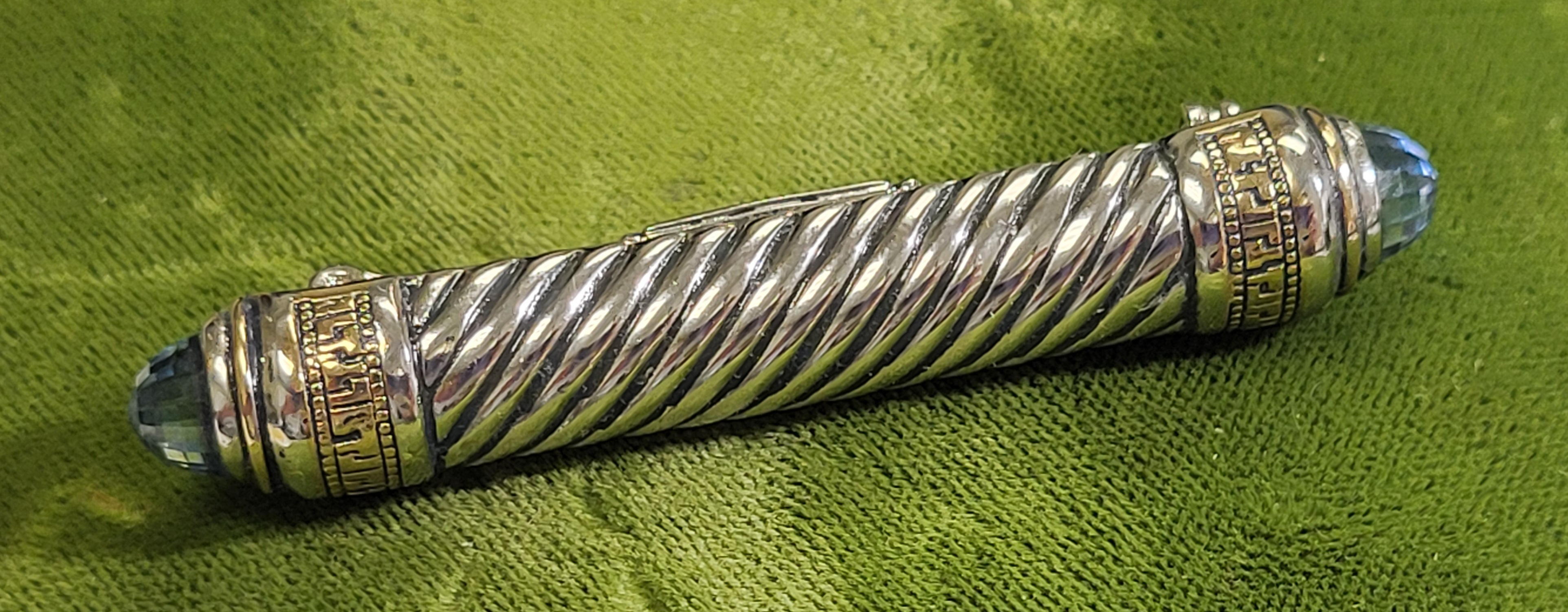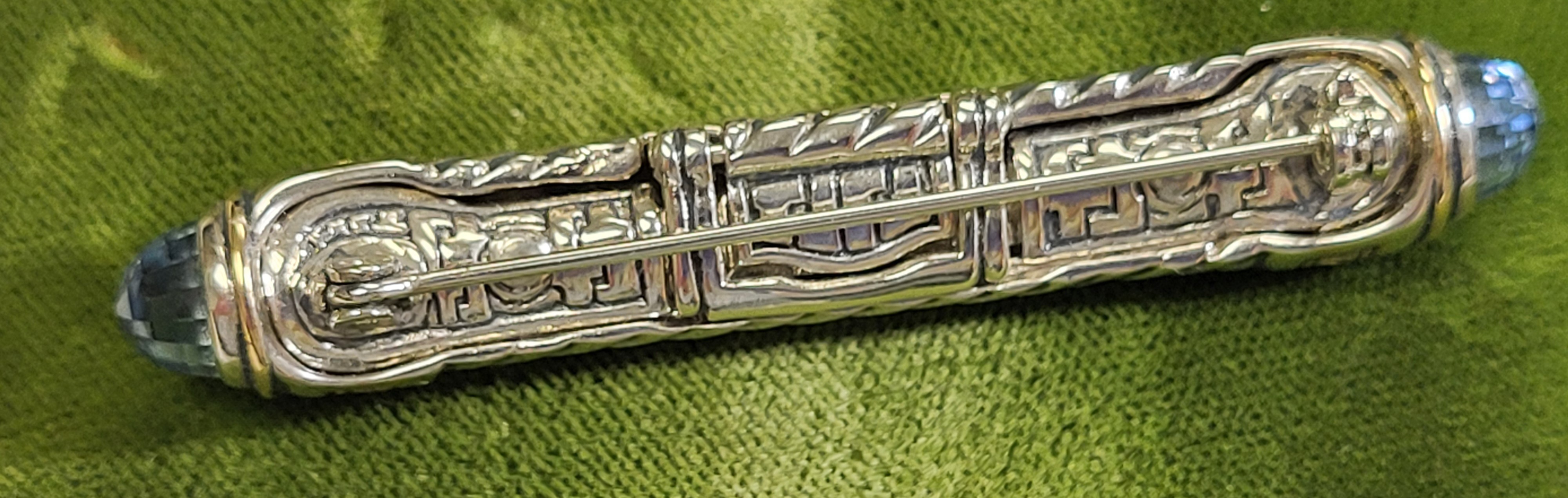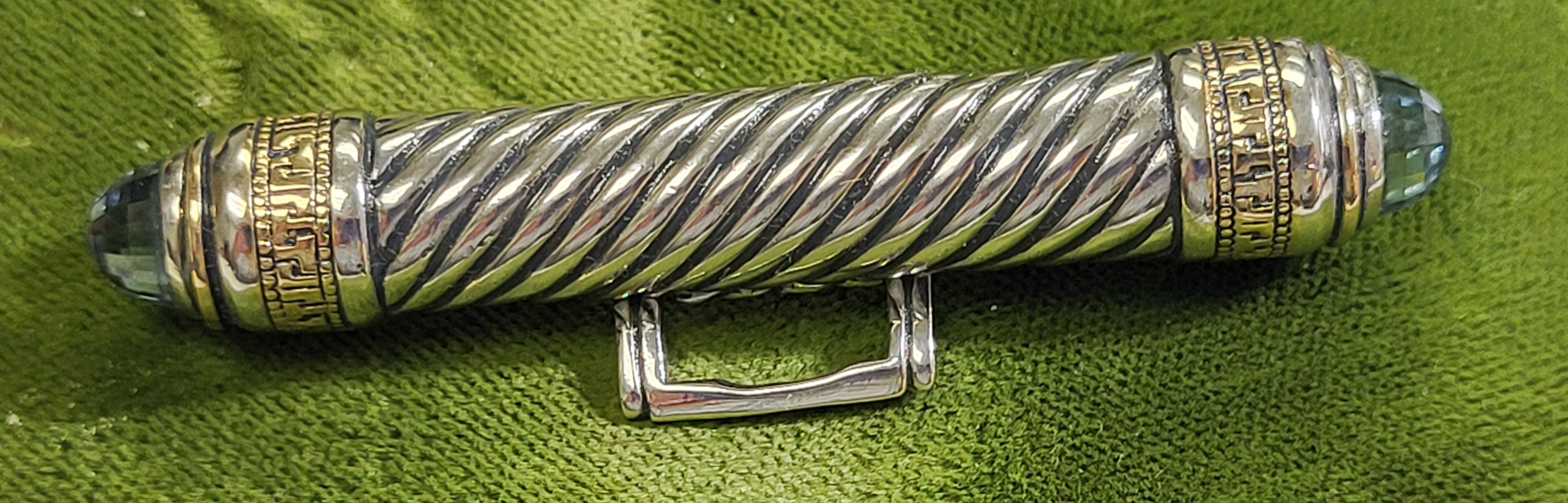 aquamarine ends folding eye glass holder brooch in exc conditon 2 1/2″ long see pics