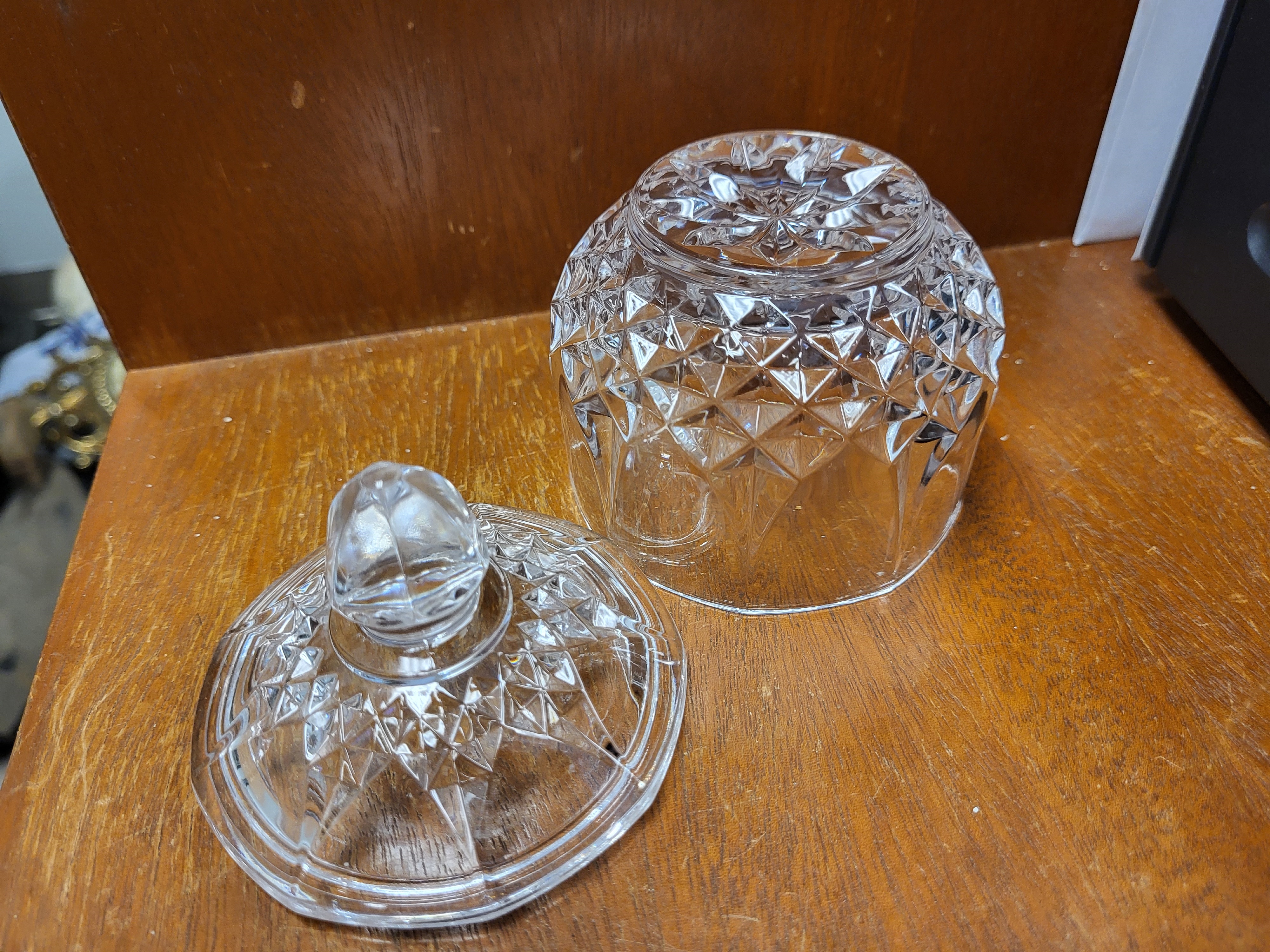 in very good condition no damage 4 1/2″ tall with lid see pics