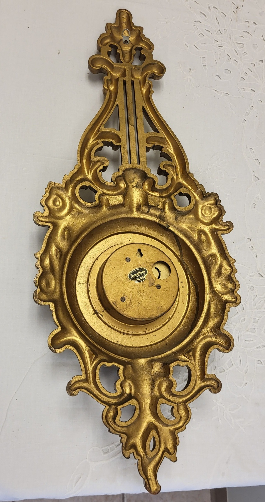 syroco wood 8 day clock from estate 28″ tall x 11″ wide w/ key and working see pics