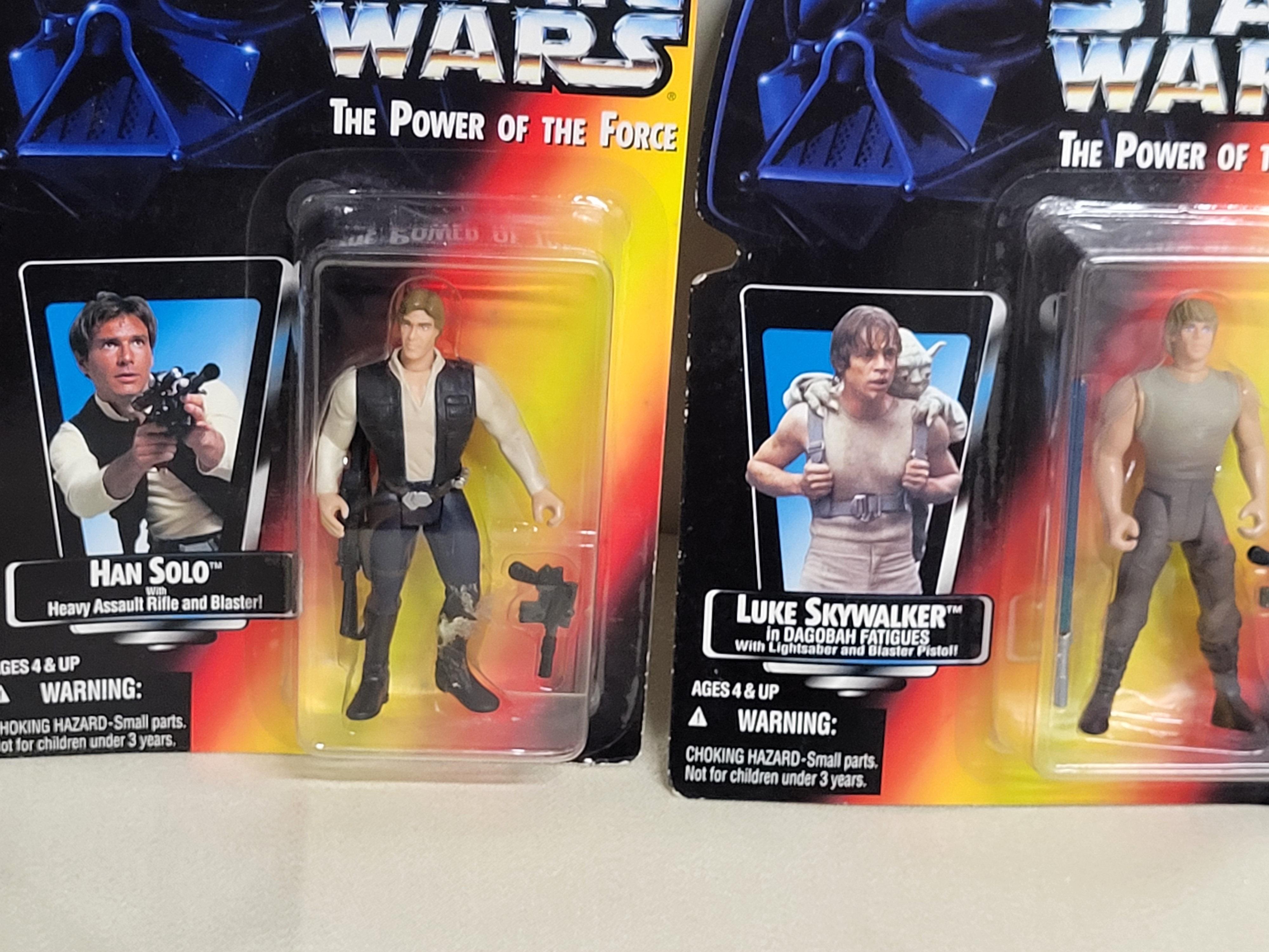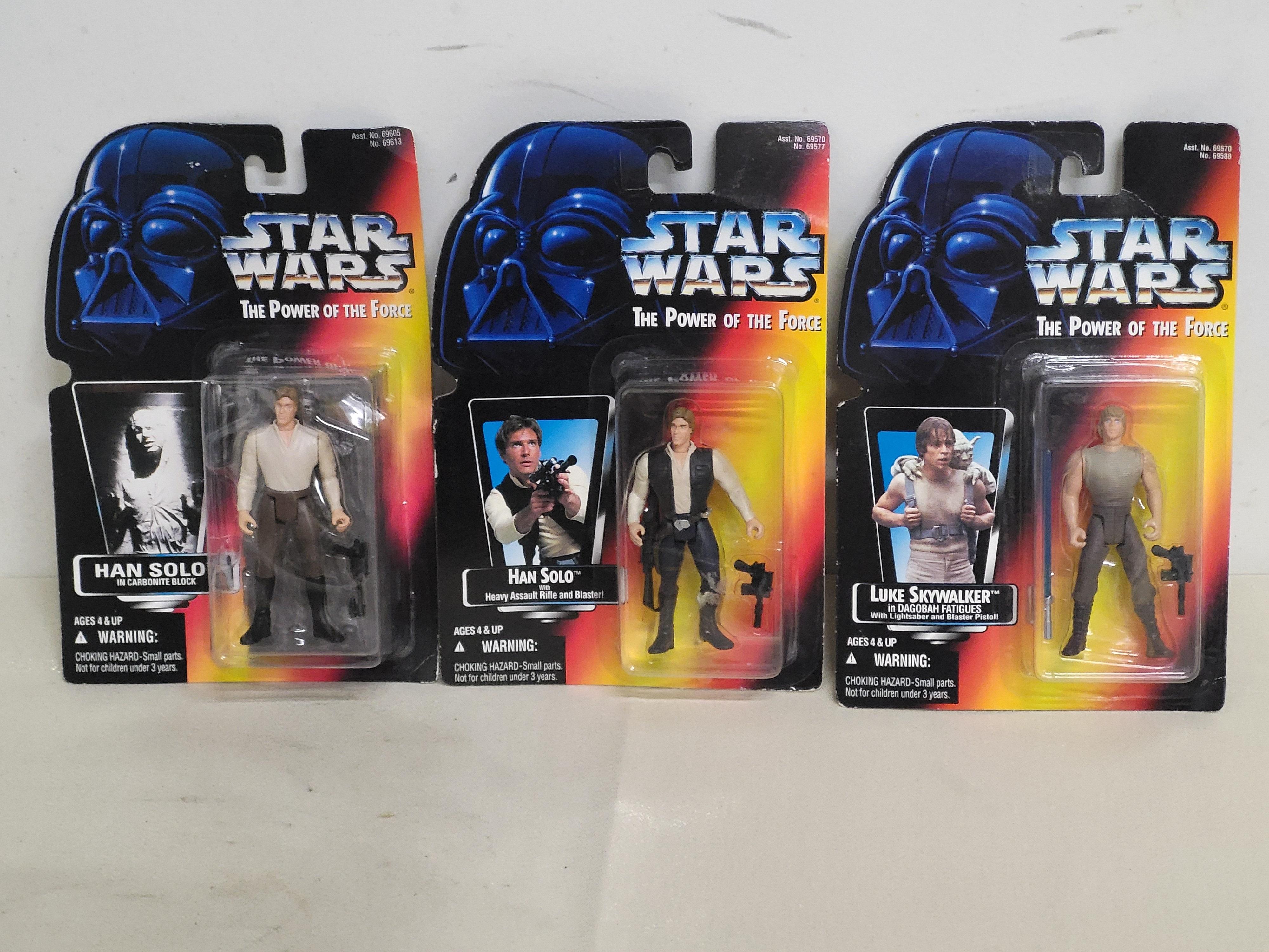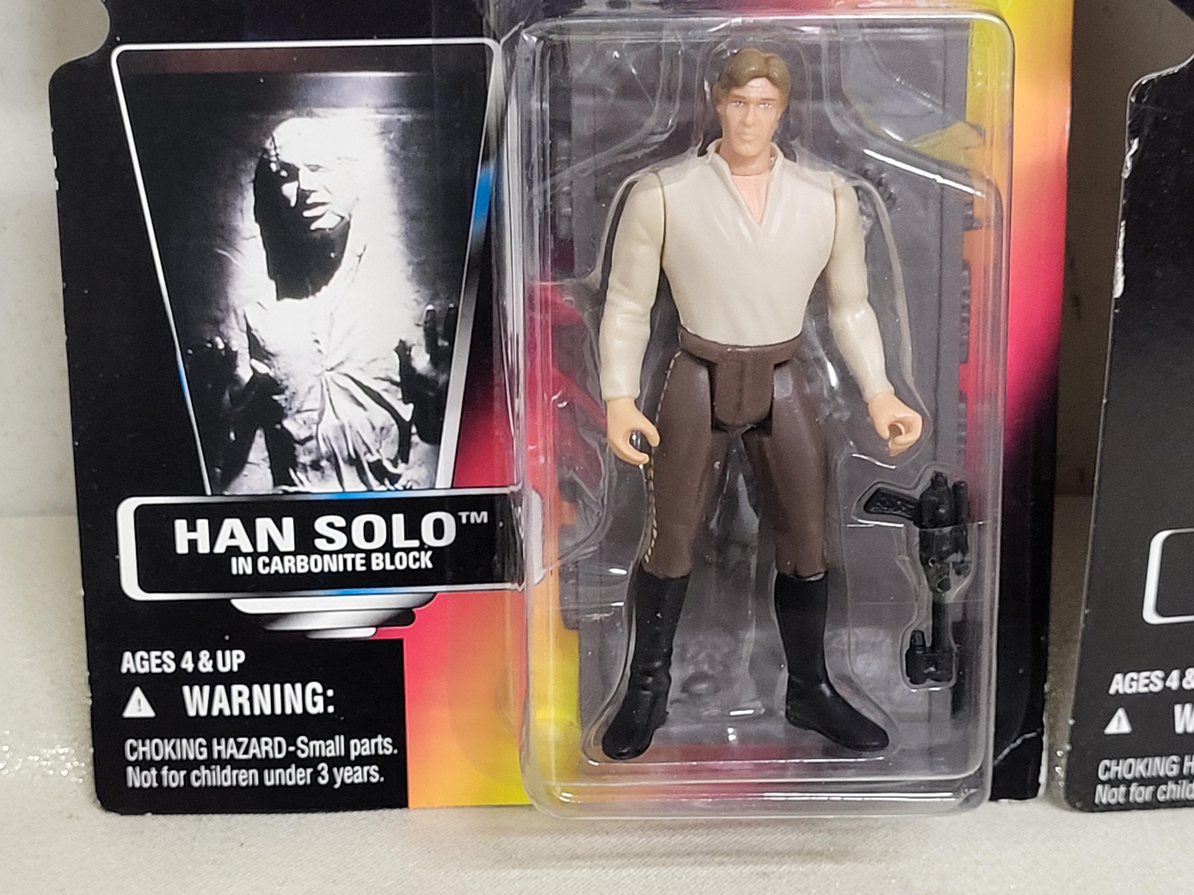 1995 kenner hans solo, luke skywalker , all mint in orig packages hands soio in cubonite and heavy assault riifle all 3 for one bid see pics