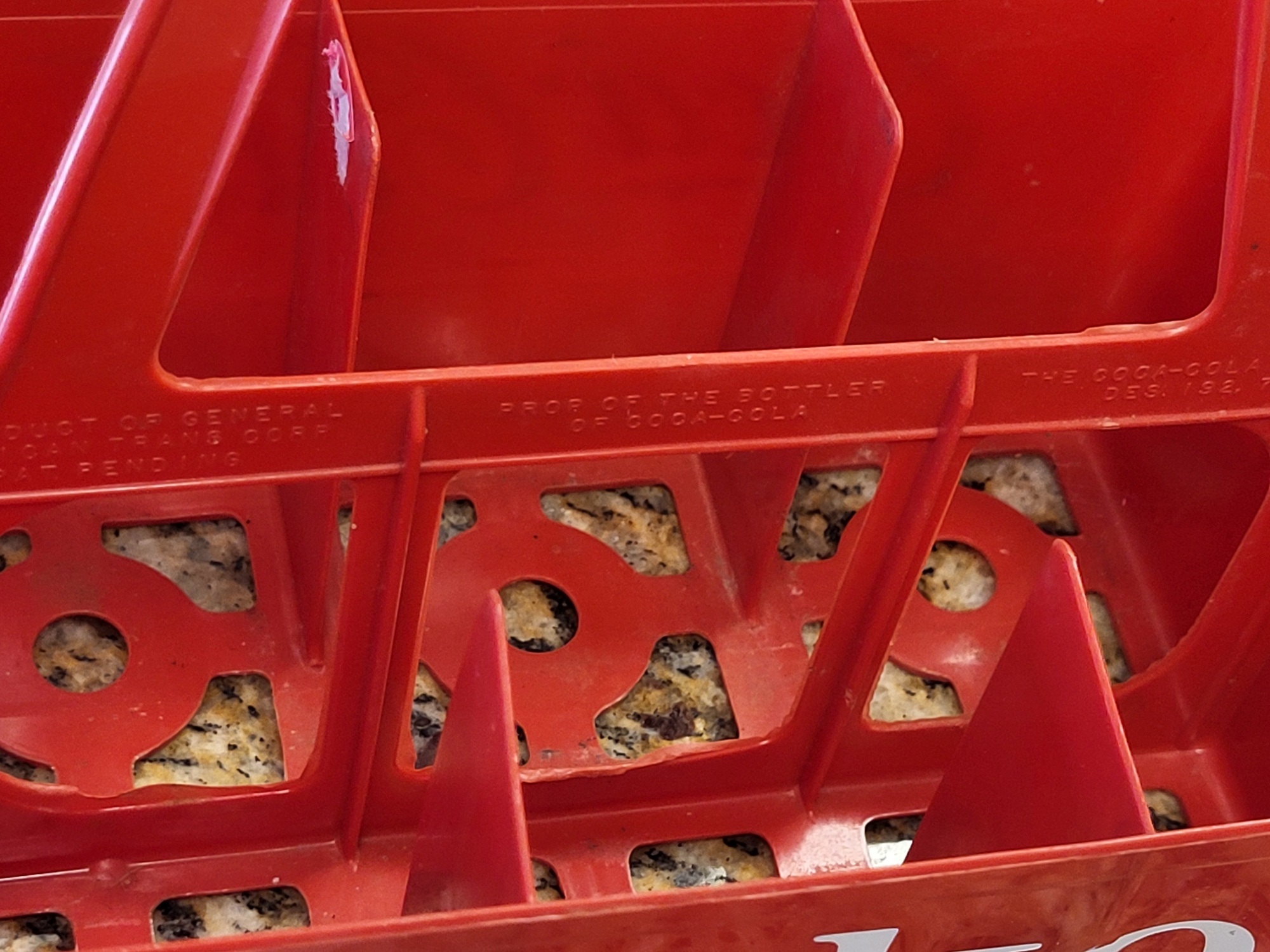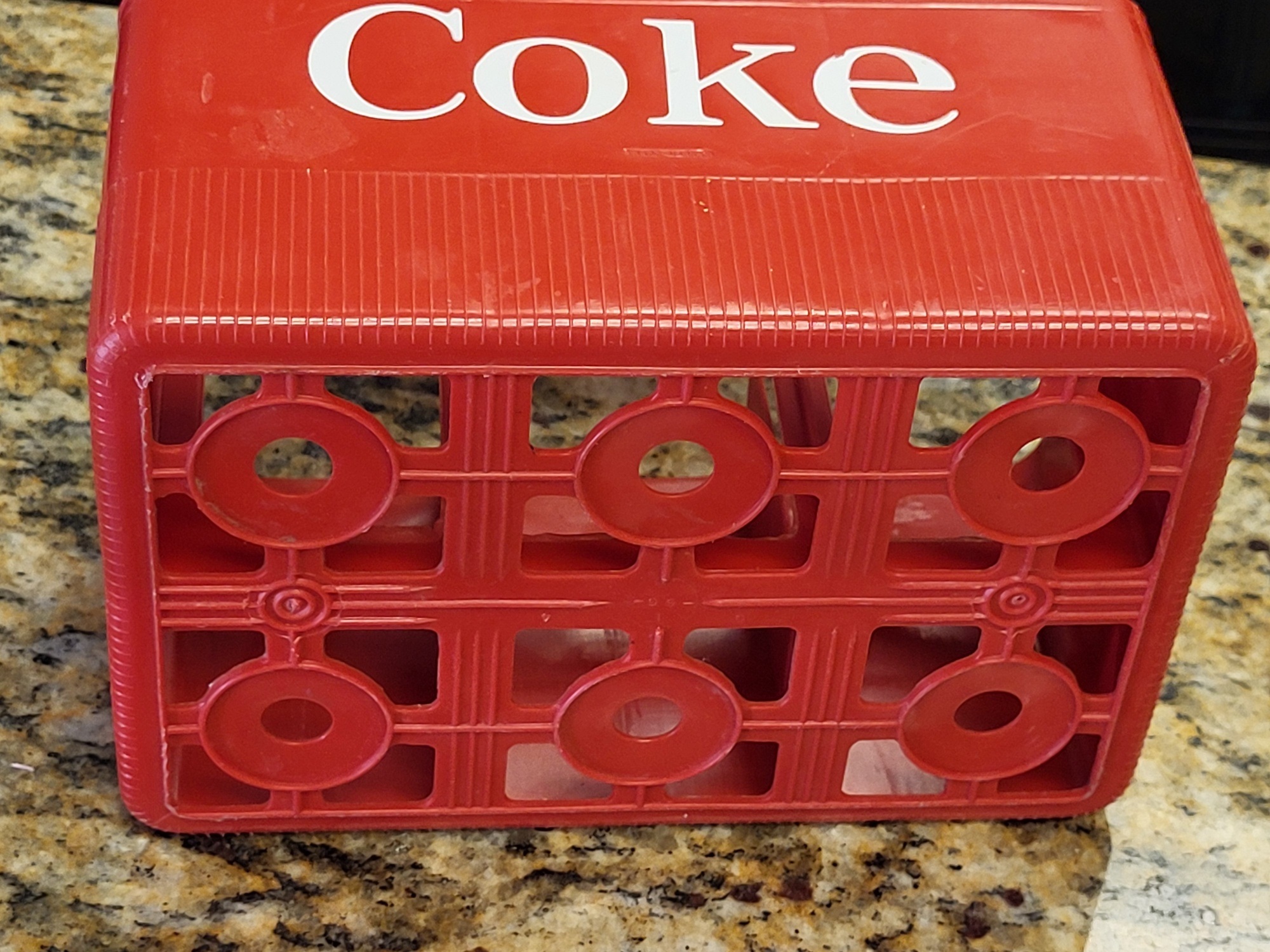 6 1/2″ tall 7 1/2″ wide 5″ deep in great shape looks like made for 8 oz? bottles seepics