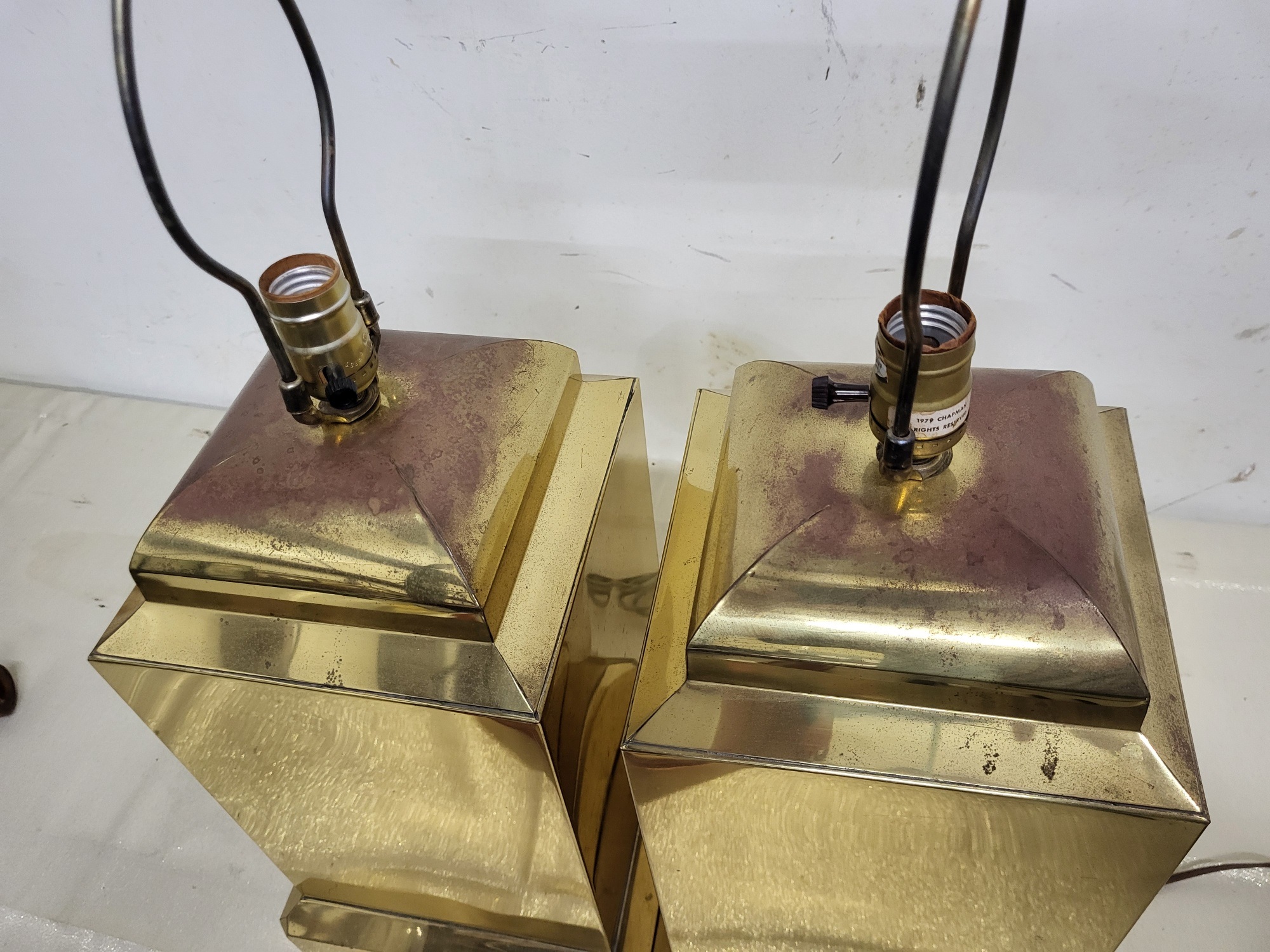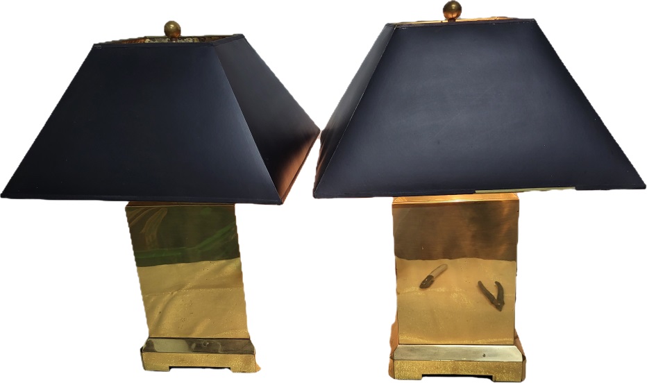 from the estate 26″ tall 18″ wide shades see pics both for one bid see pics chapman signed 1979, very high end lamps