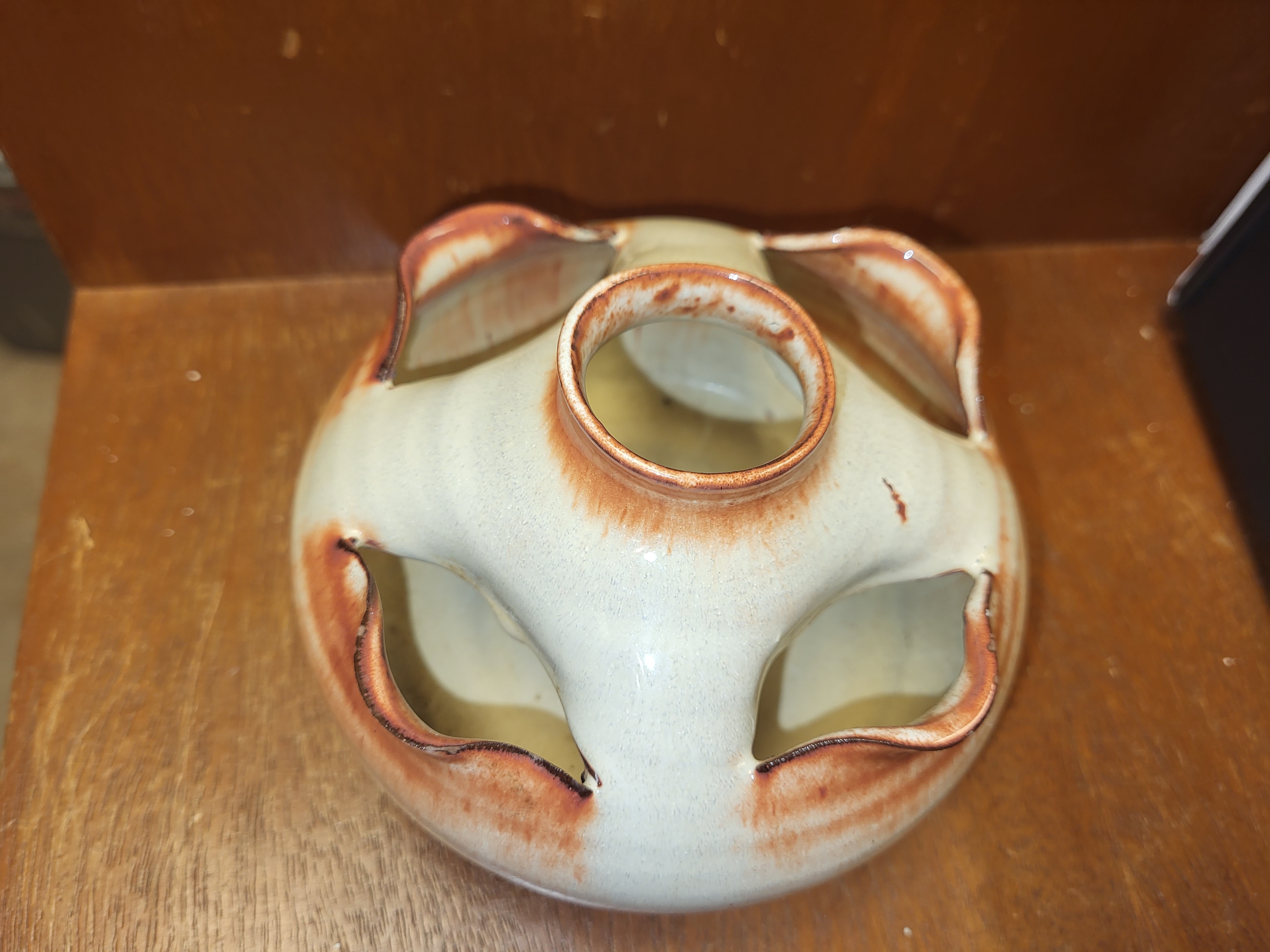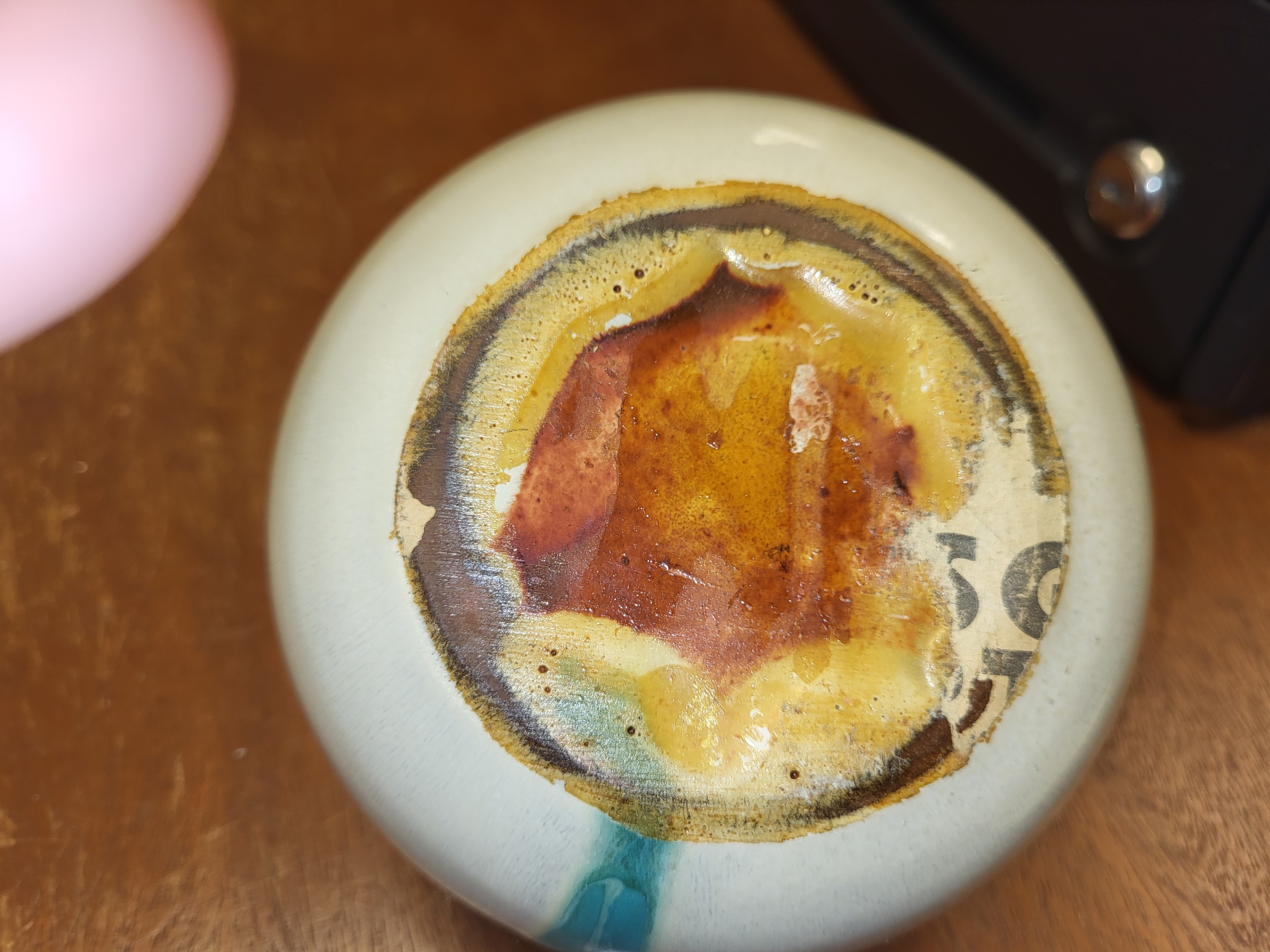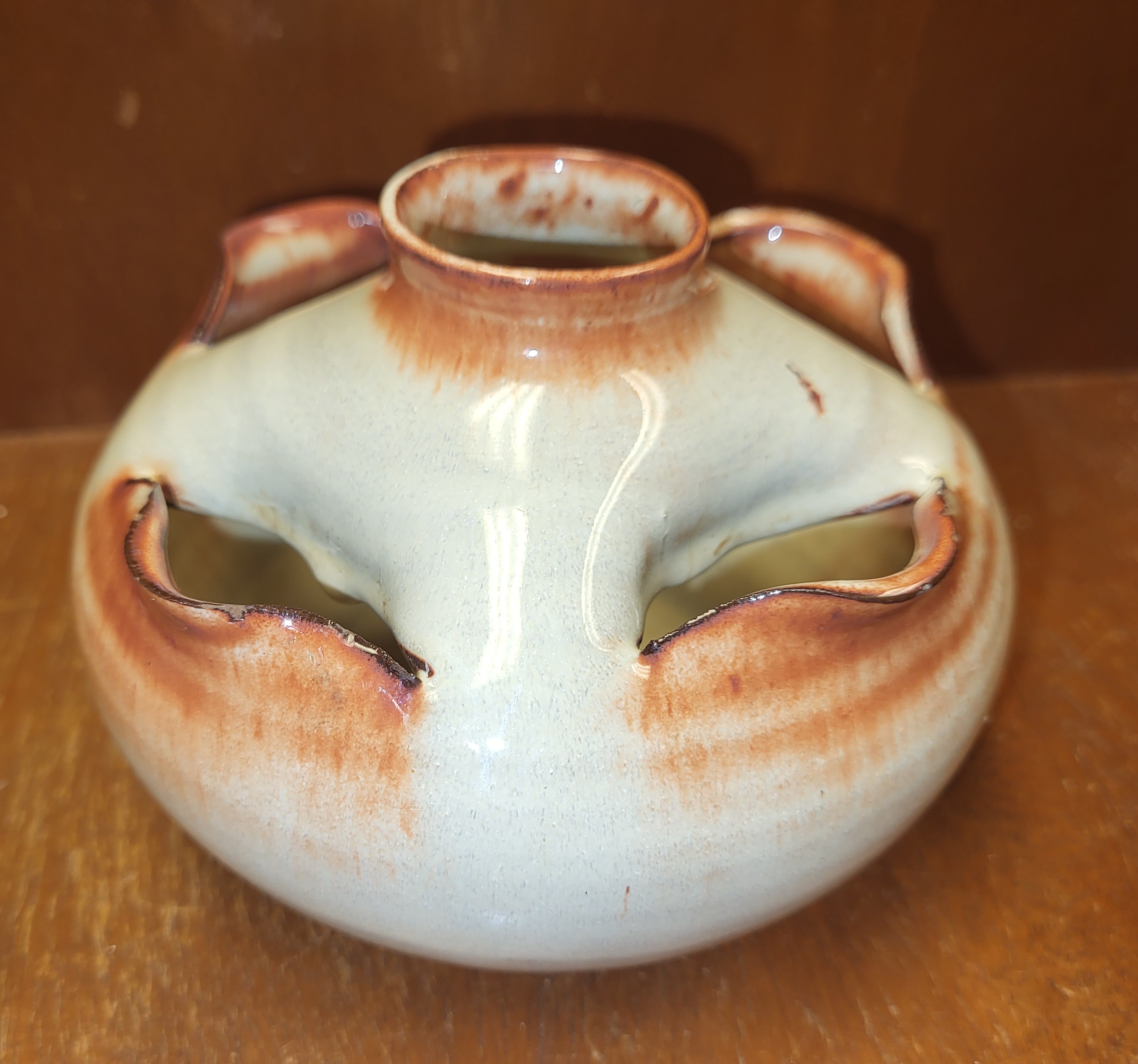 beautiful piece of pottery we can not make out signature on bottom 5″ wide 3″ tall at tallest point see pics