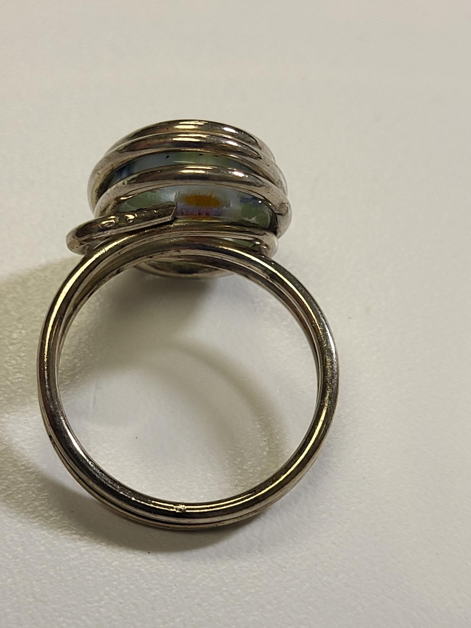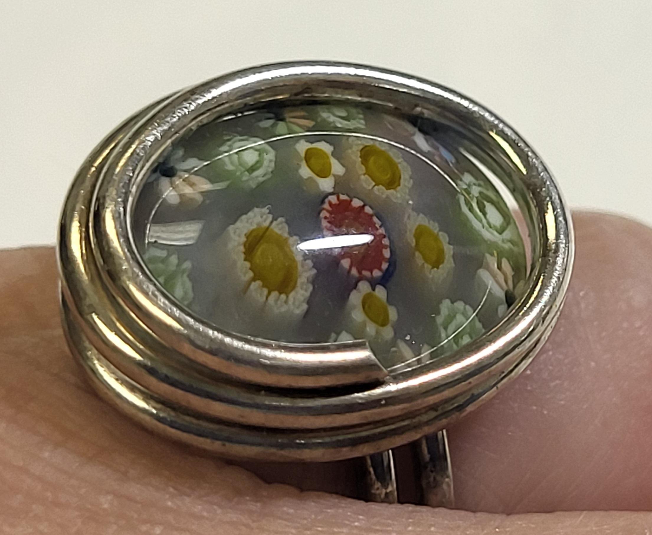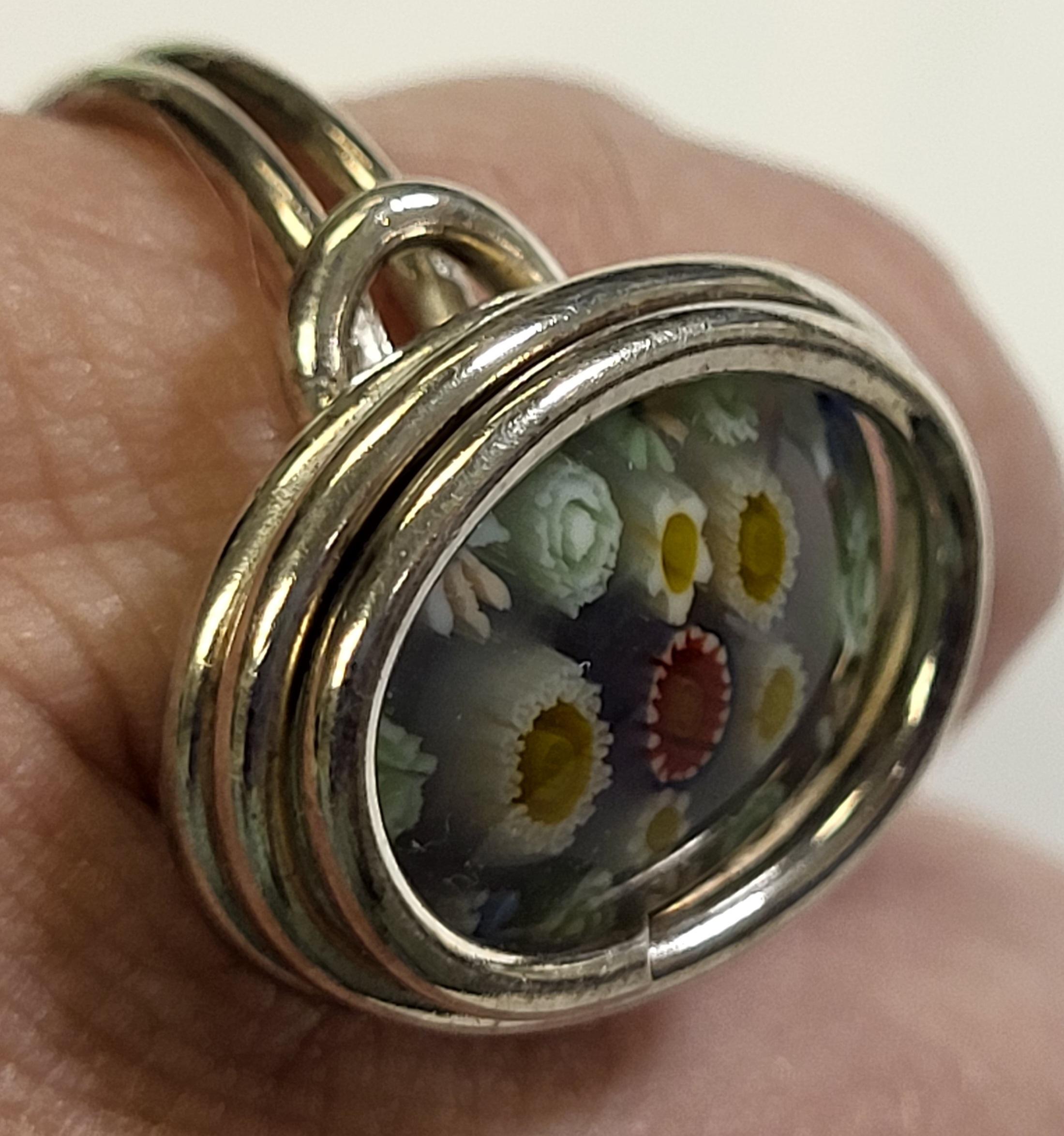 sterling silver ring set w/ millefiori center design sz 10 see pics