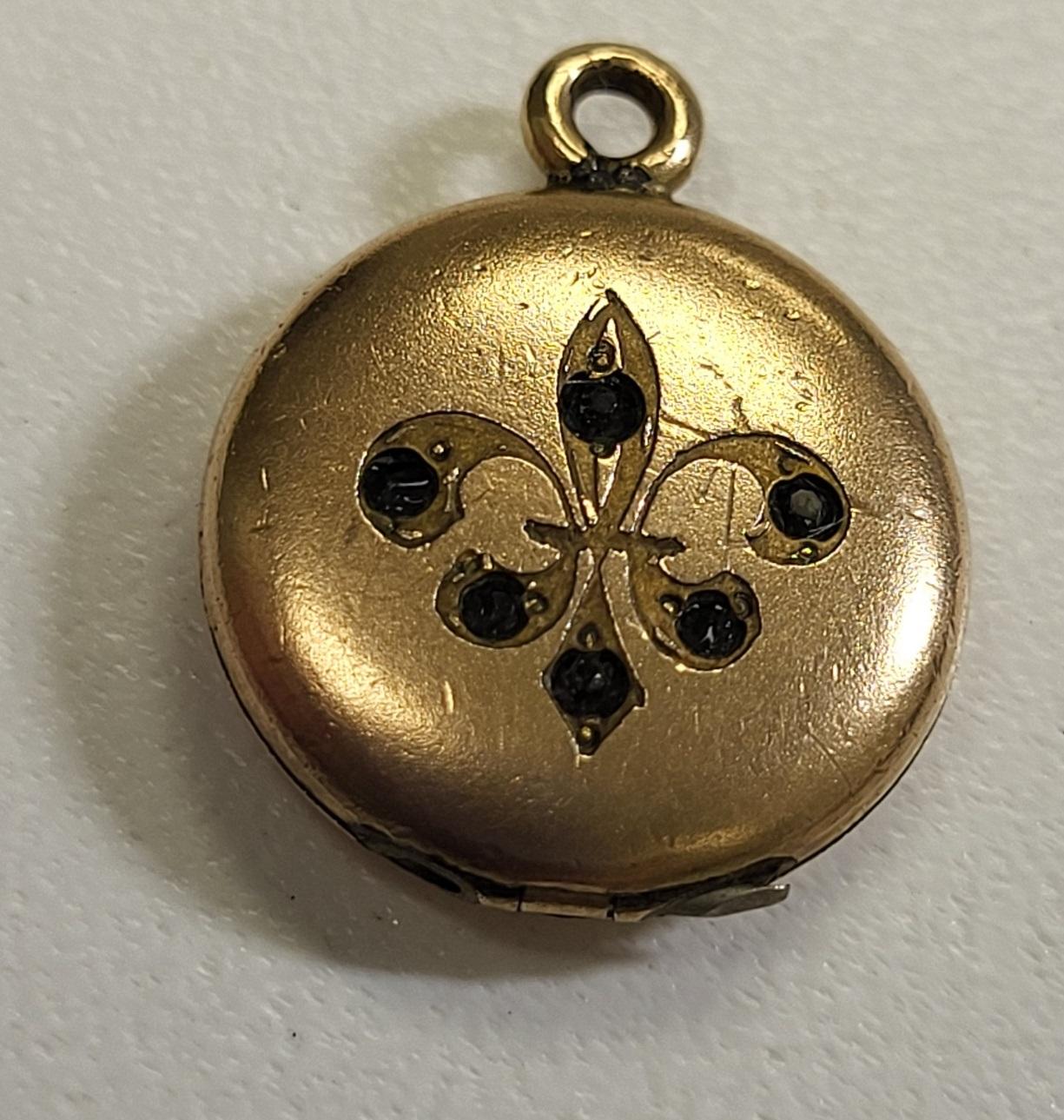 art deco locket pendant fleur de lis gold filled or gold? very peteit 5/8″ wode 3 grams very good condition see pics