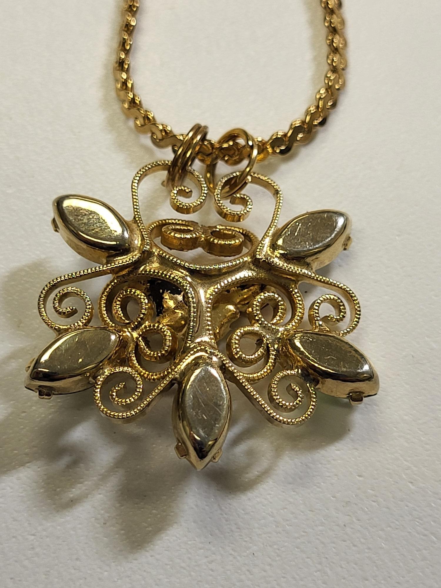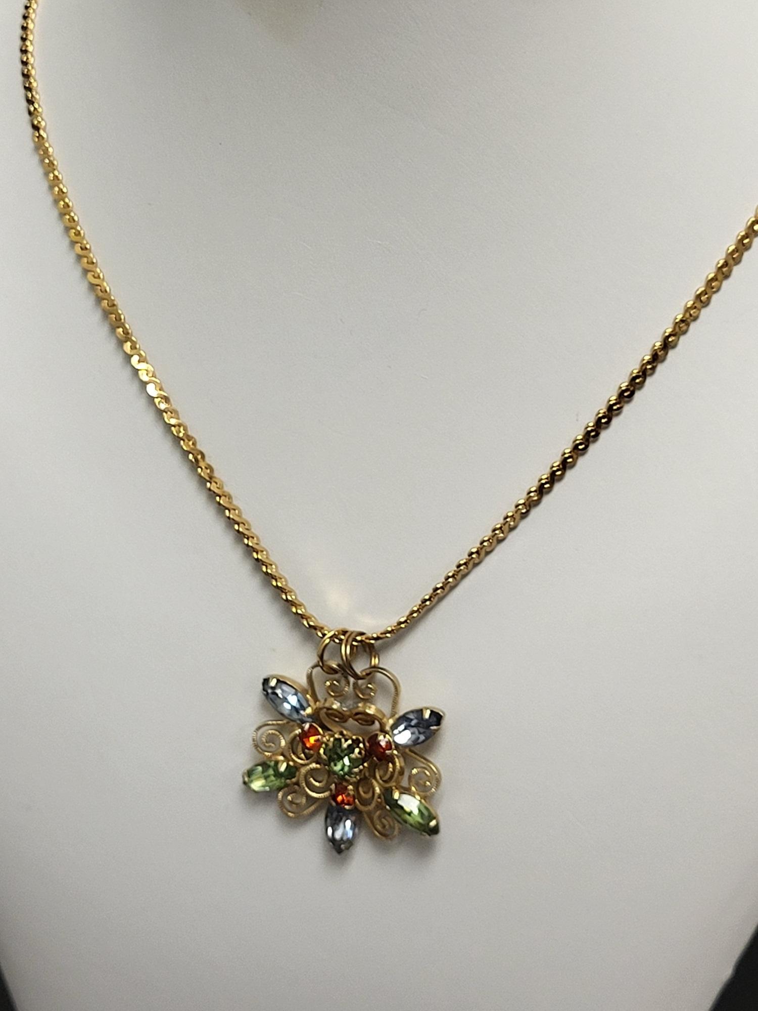 18″ gold tone necklace jeweled flower pendant see pics