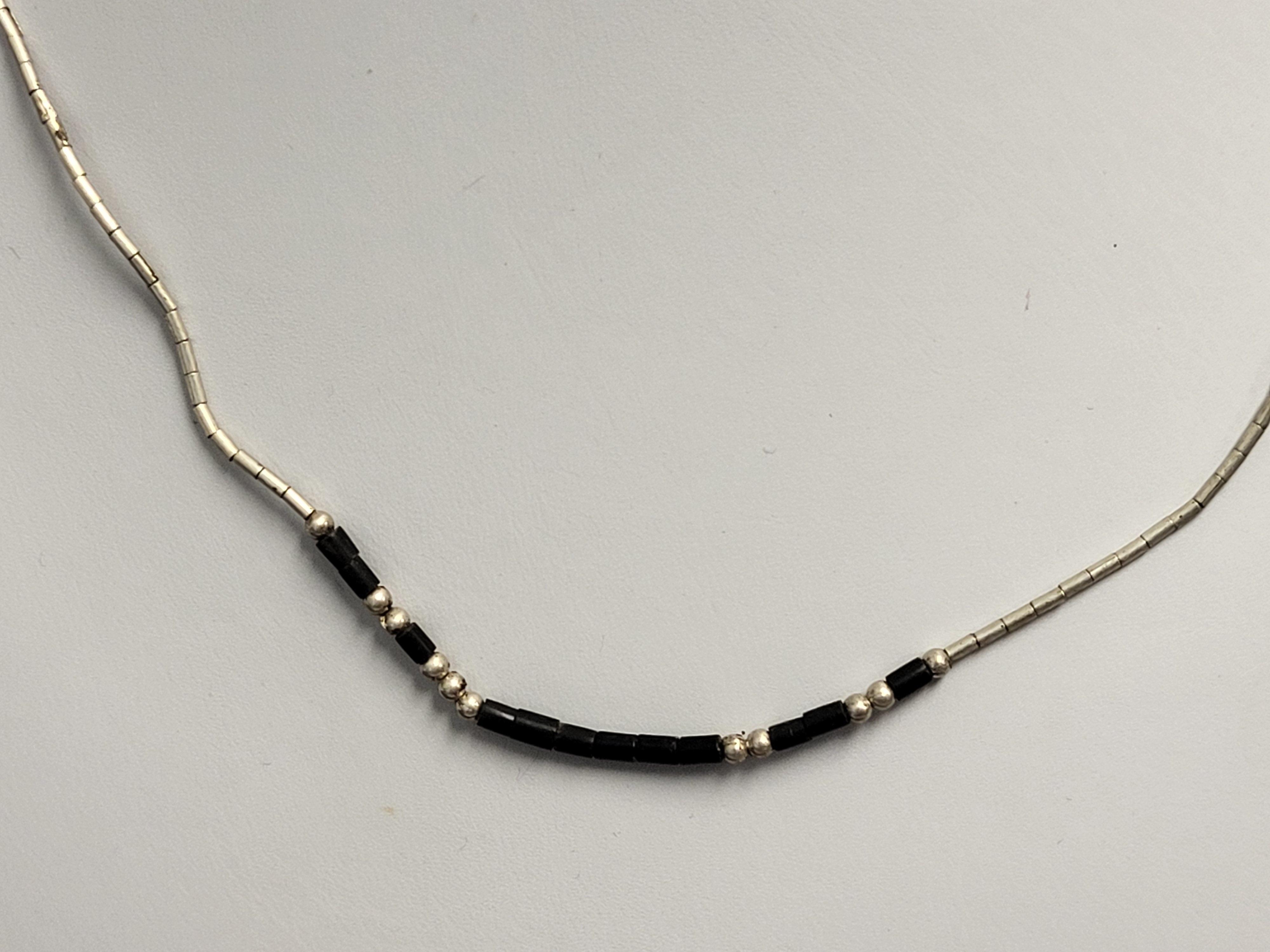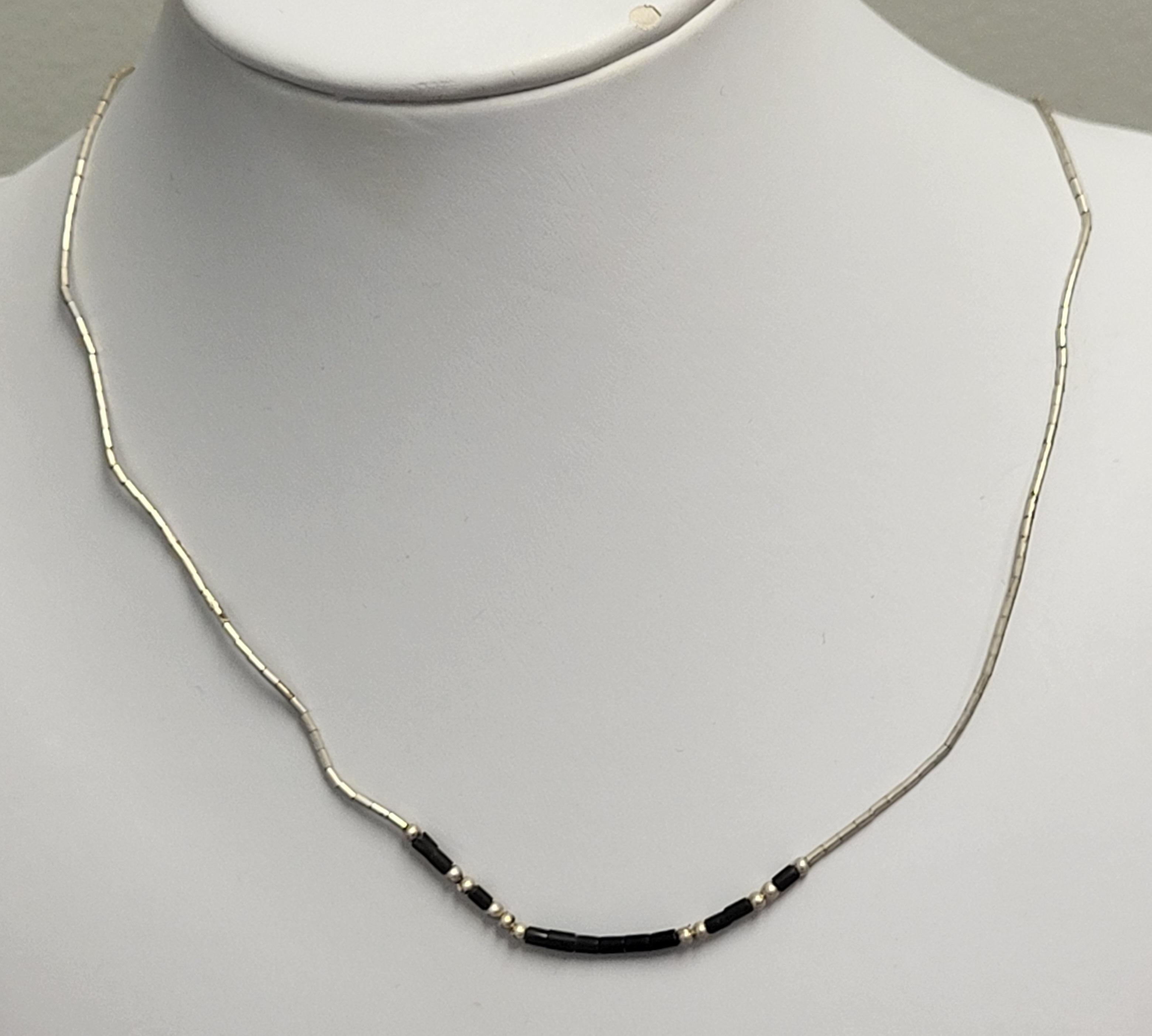 16 1/2″ sterling silver w/onyx looks to be native american? seepics