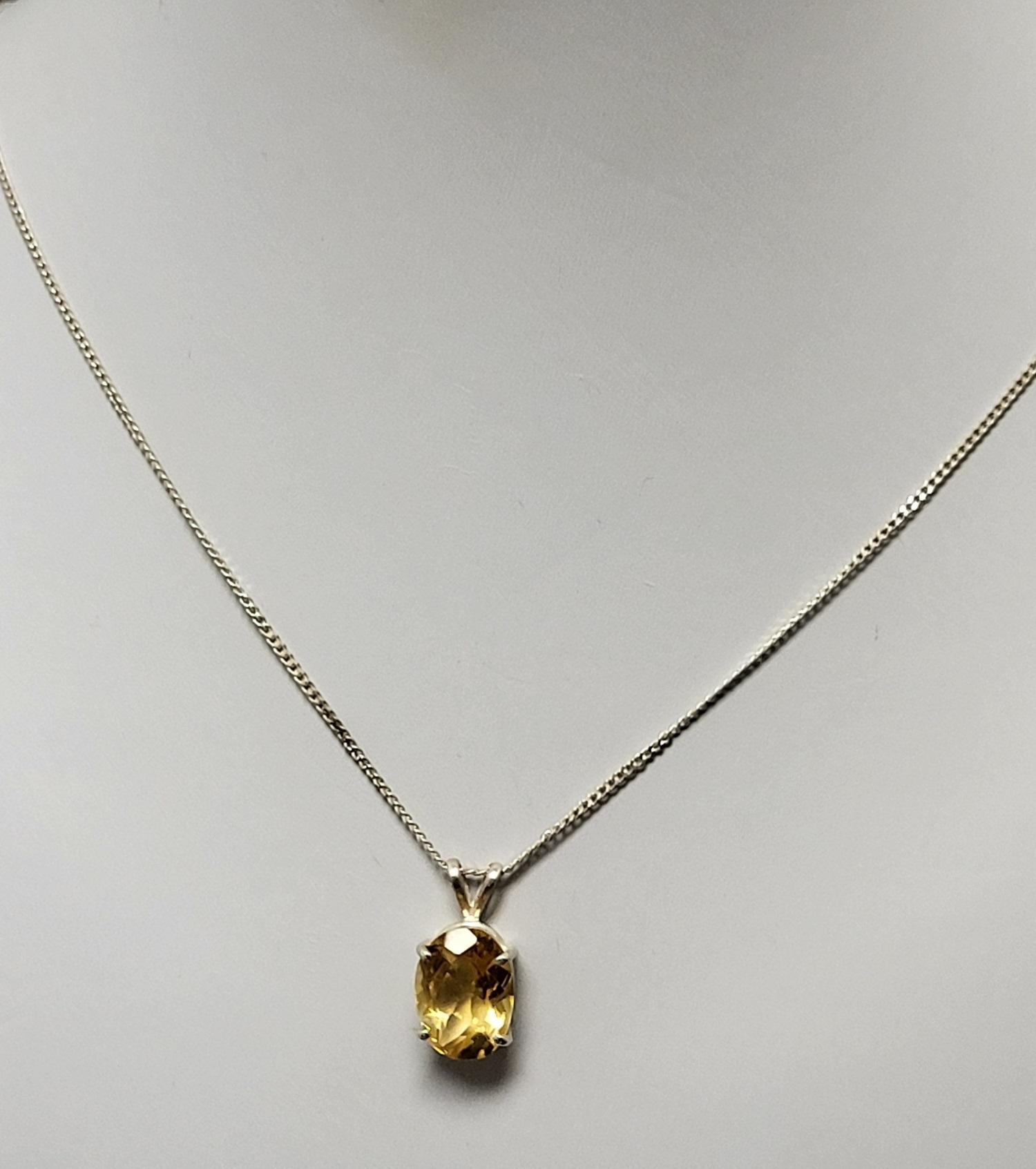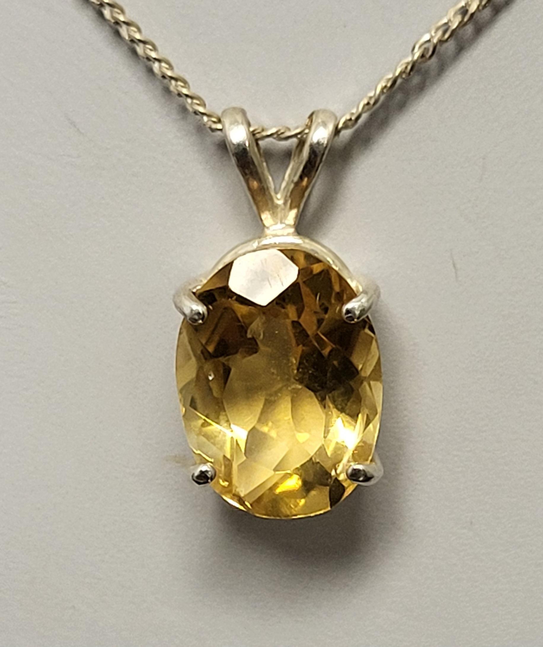 appx 3+ carat gorgeous citrine set in sterling w/ sterling box link 18″ necklace see pic