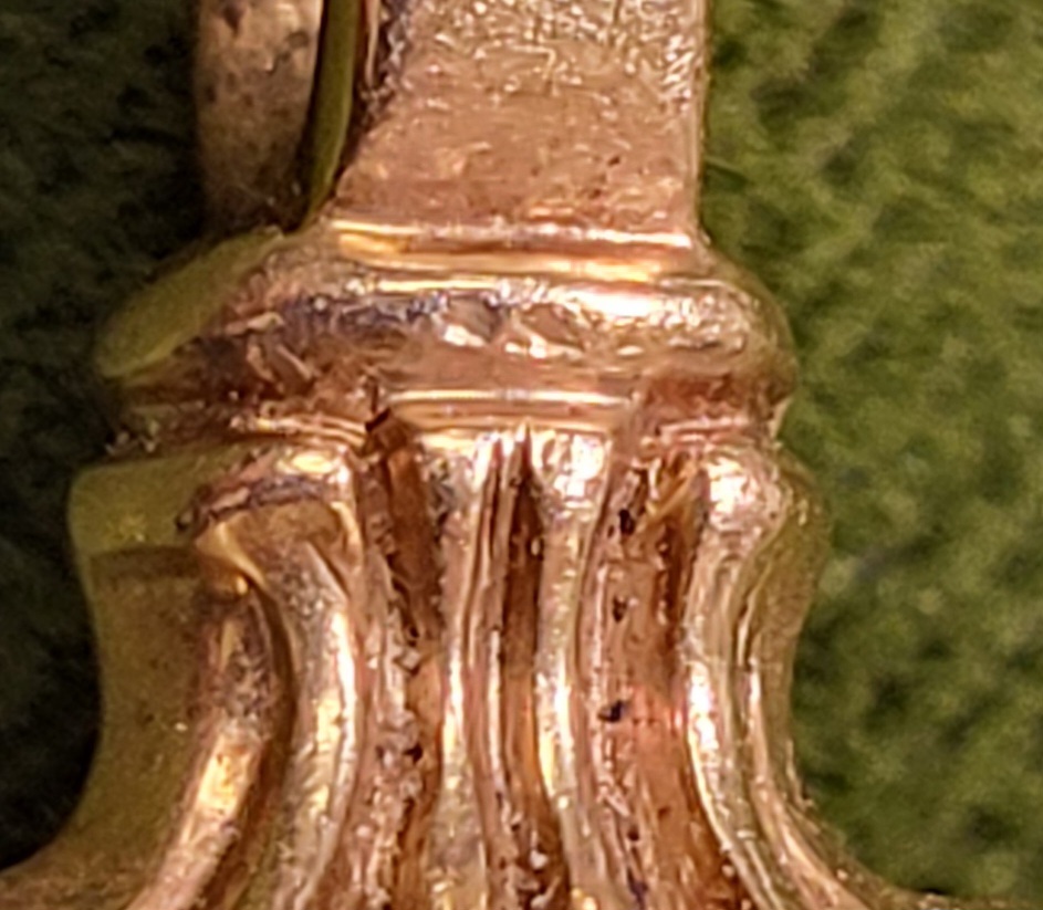 looks like could be a purity stamp on top side? poss 14K or 18″? see pics great early piece 1 1/4″ long 5/8″ wide