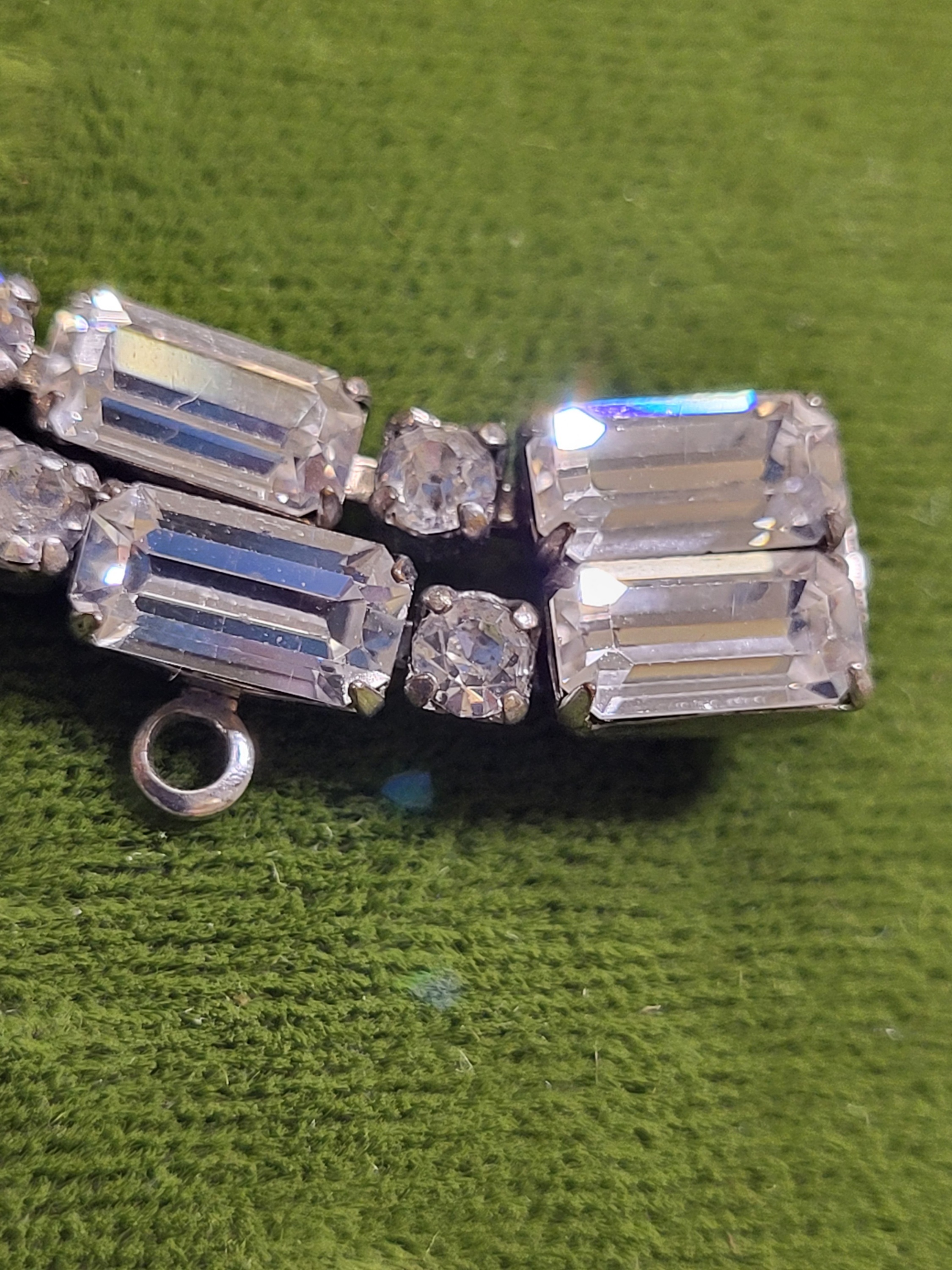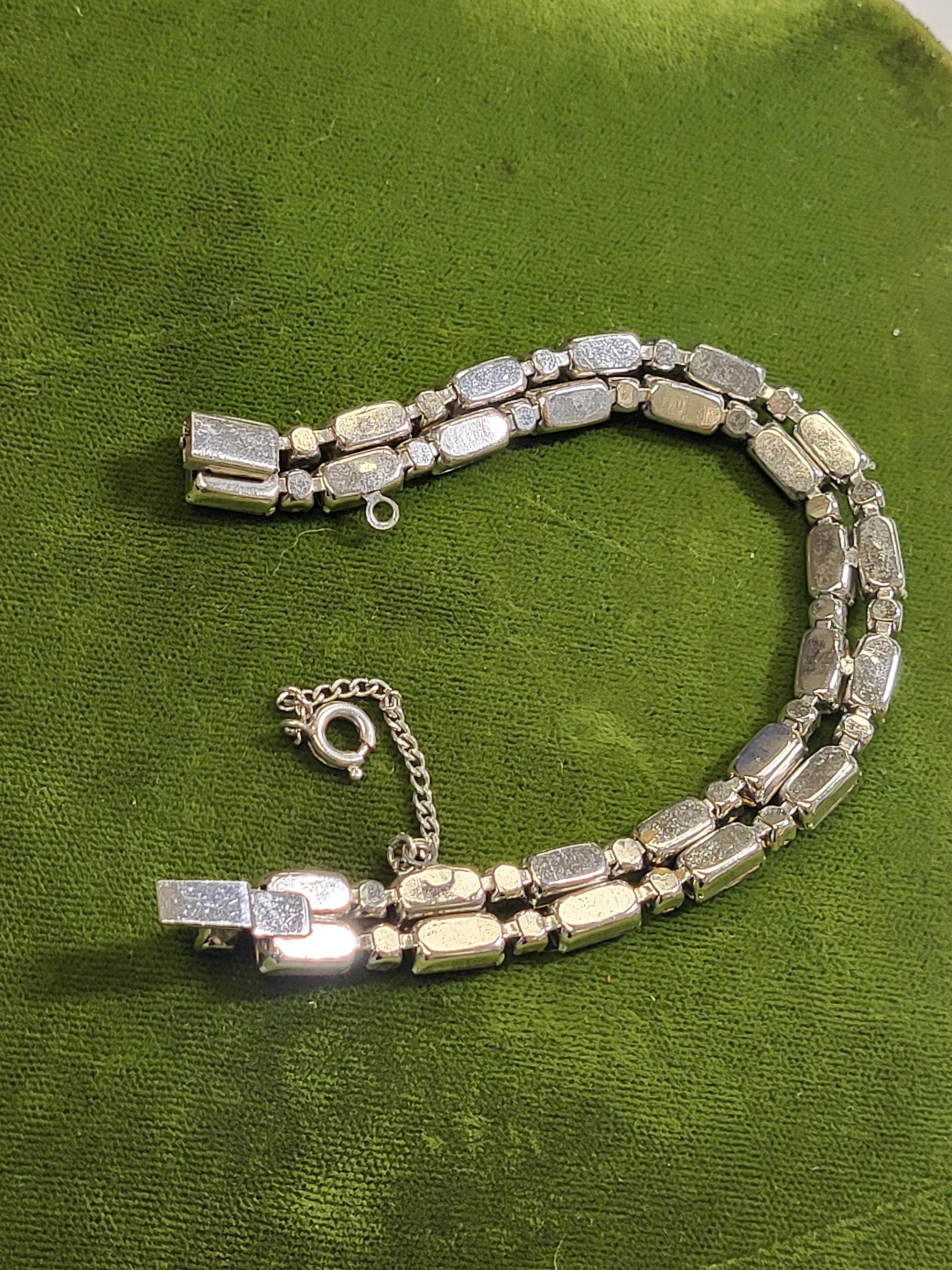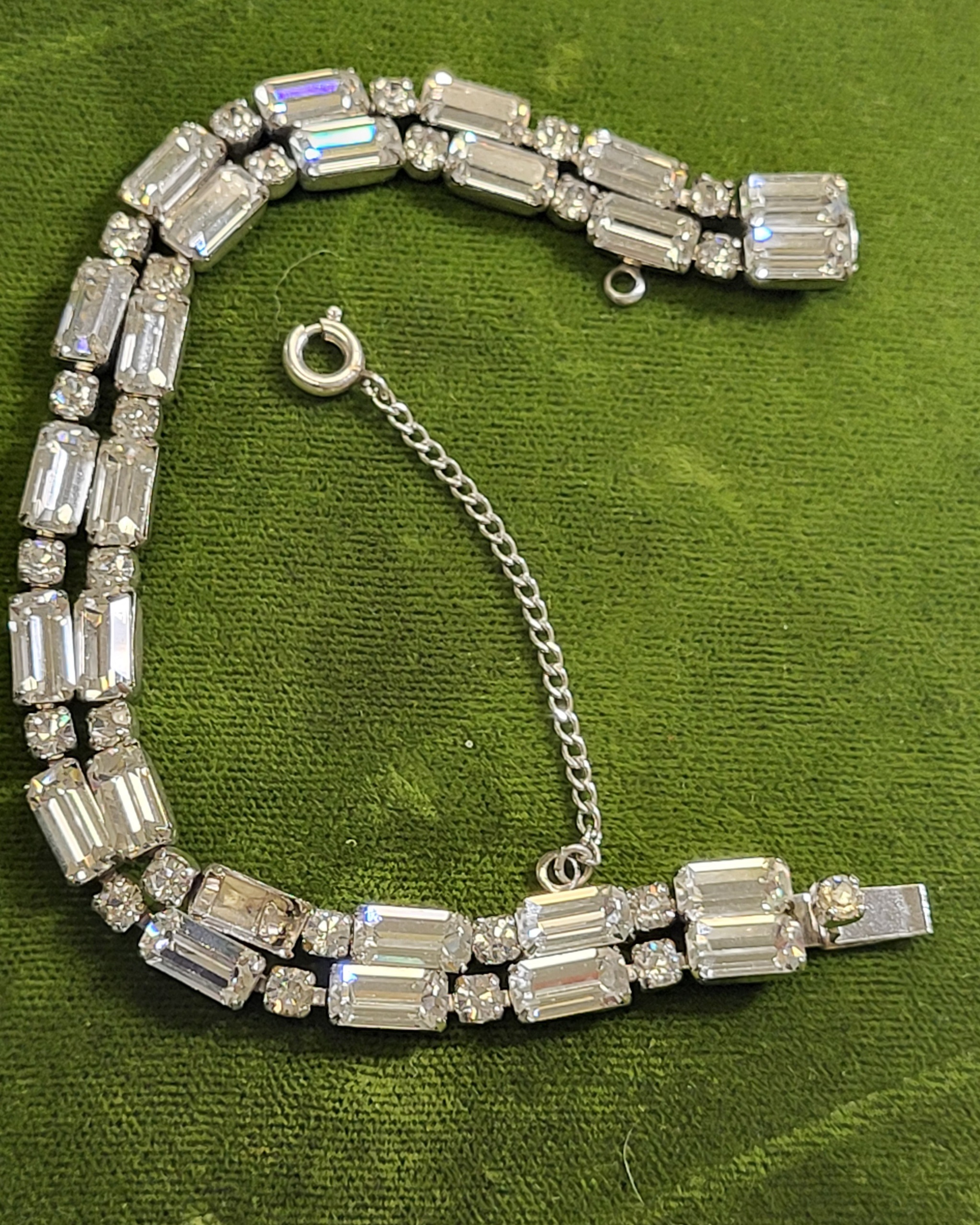 retro rhinestone tennis bracelet w/safety chain mint!