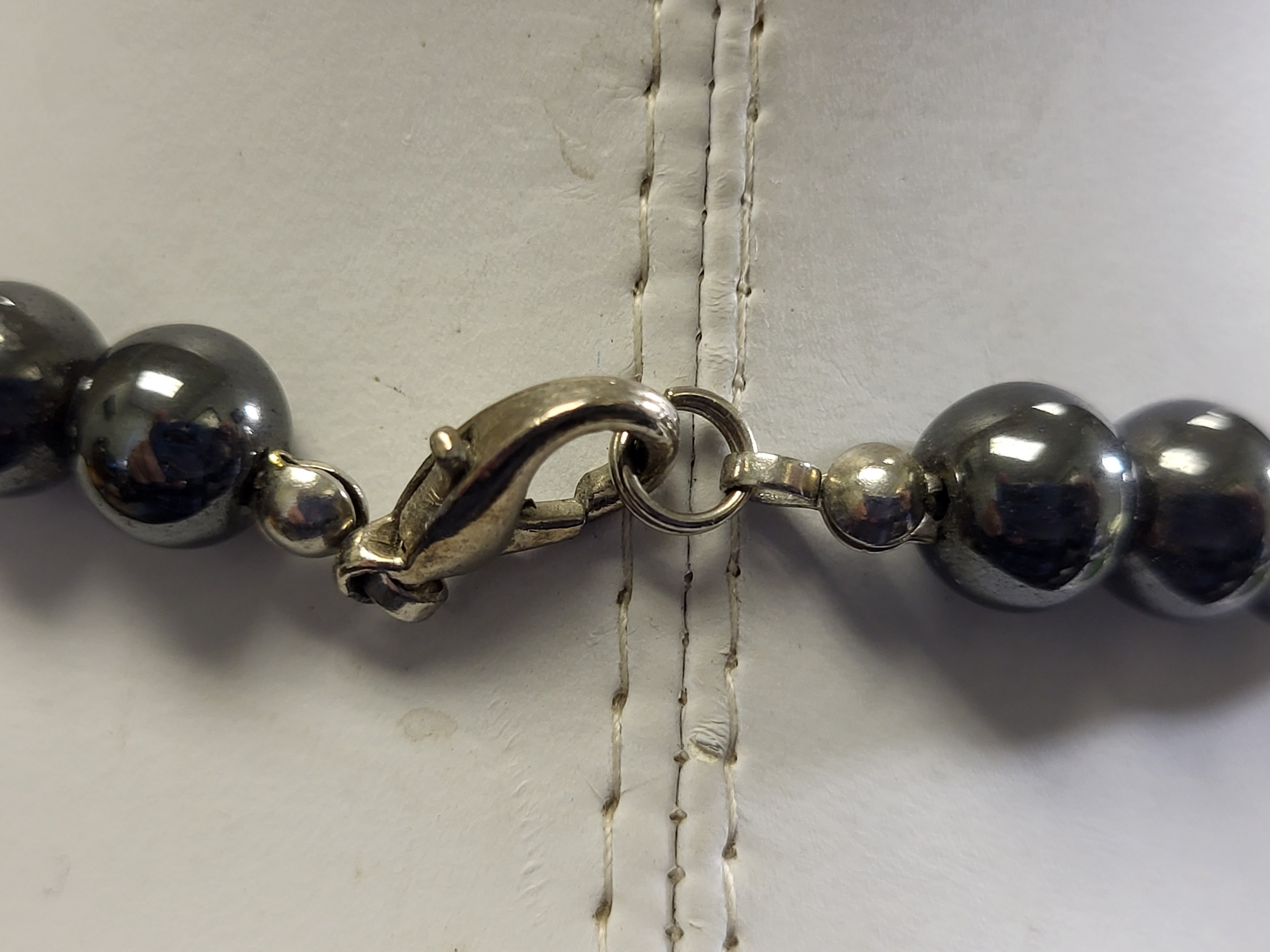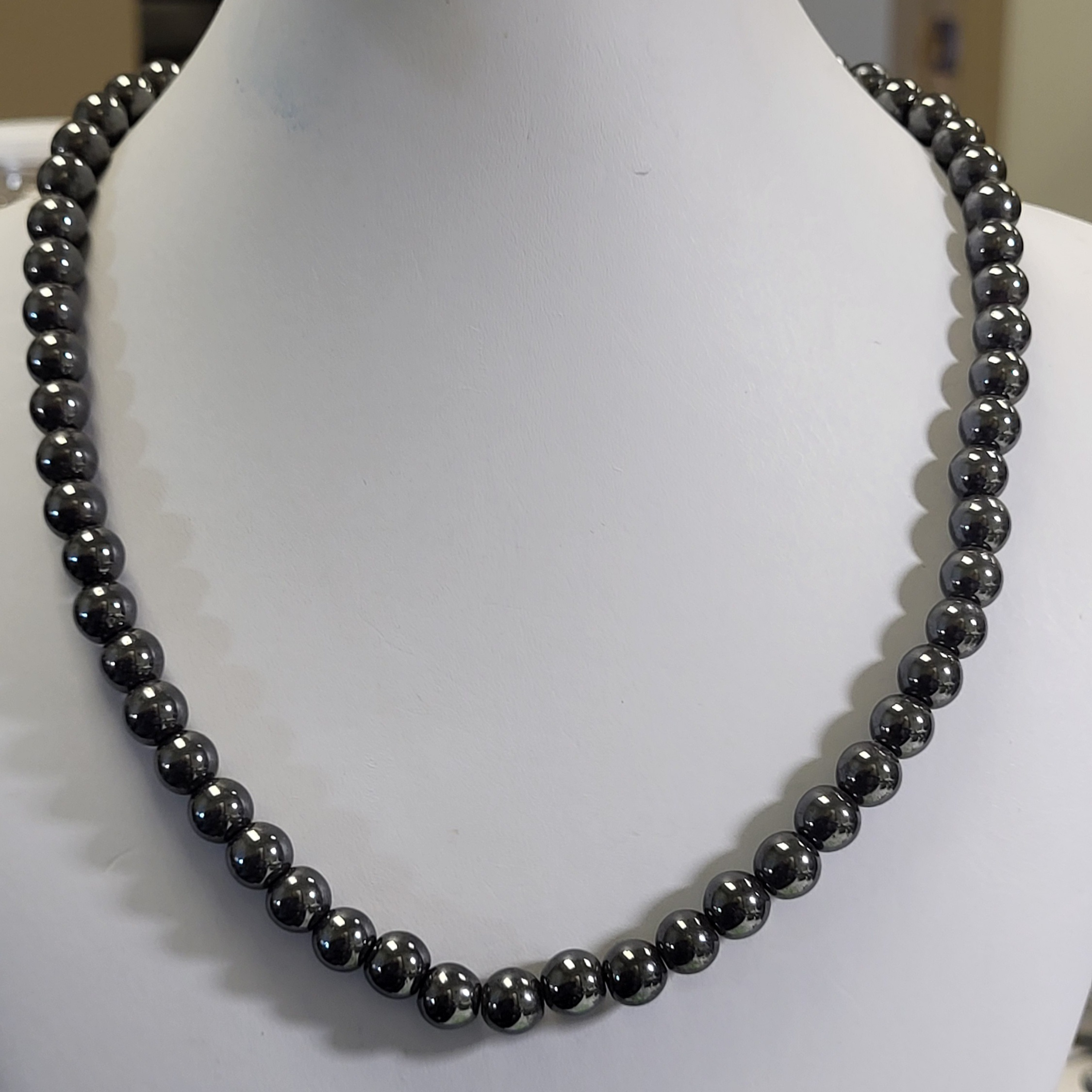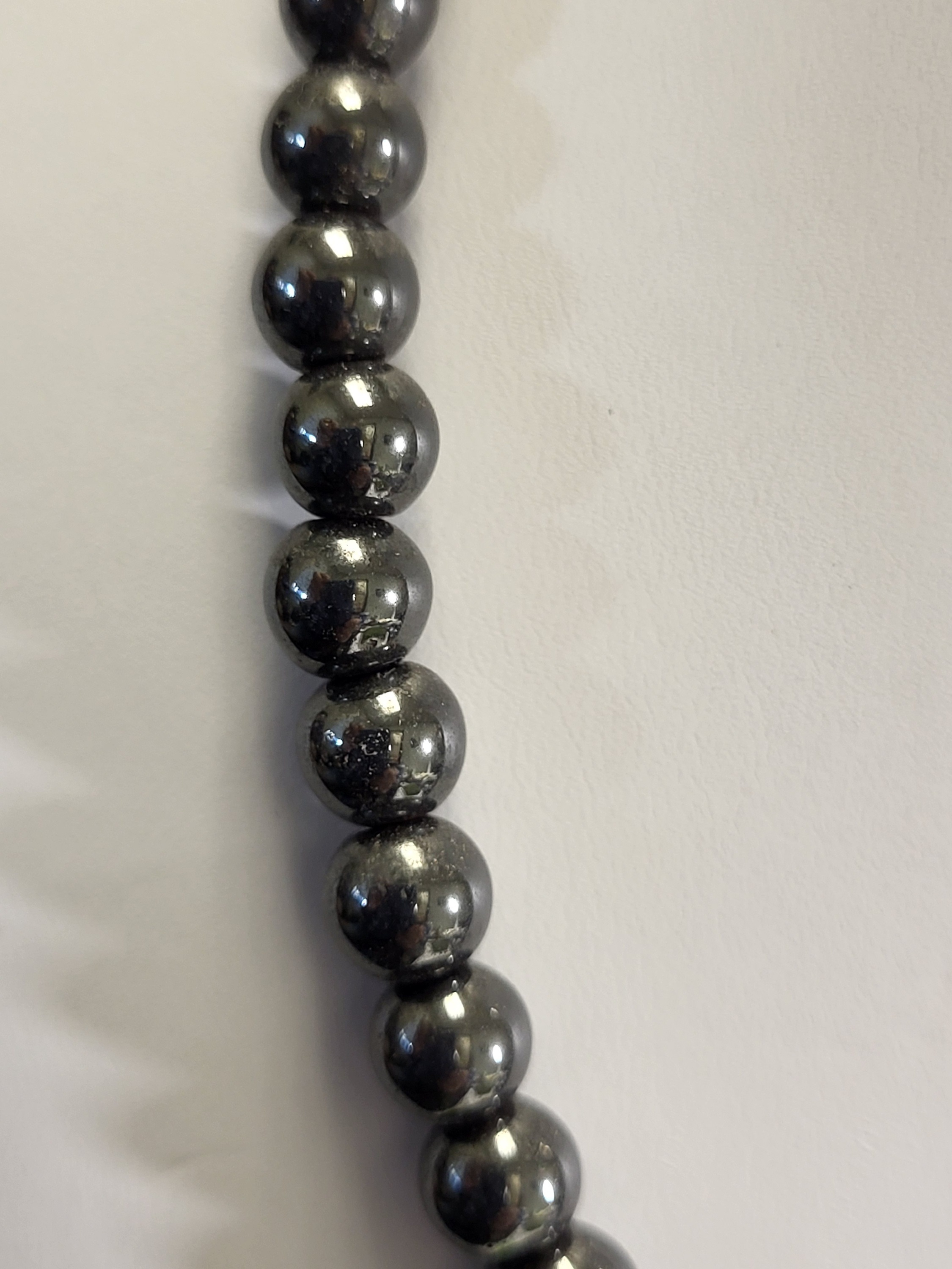 genuine hematite 7.6 mm bead necklace 18″ beauty gorgeous likely AAA quality? hematite cold to the touch see pics