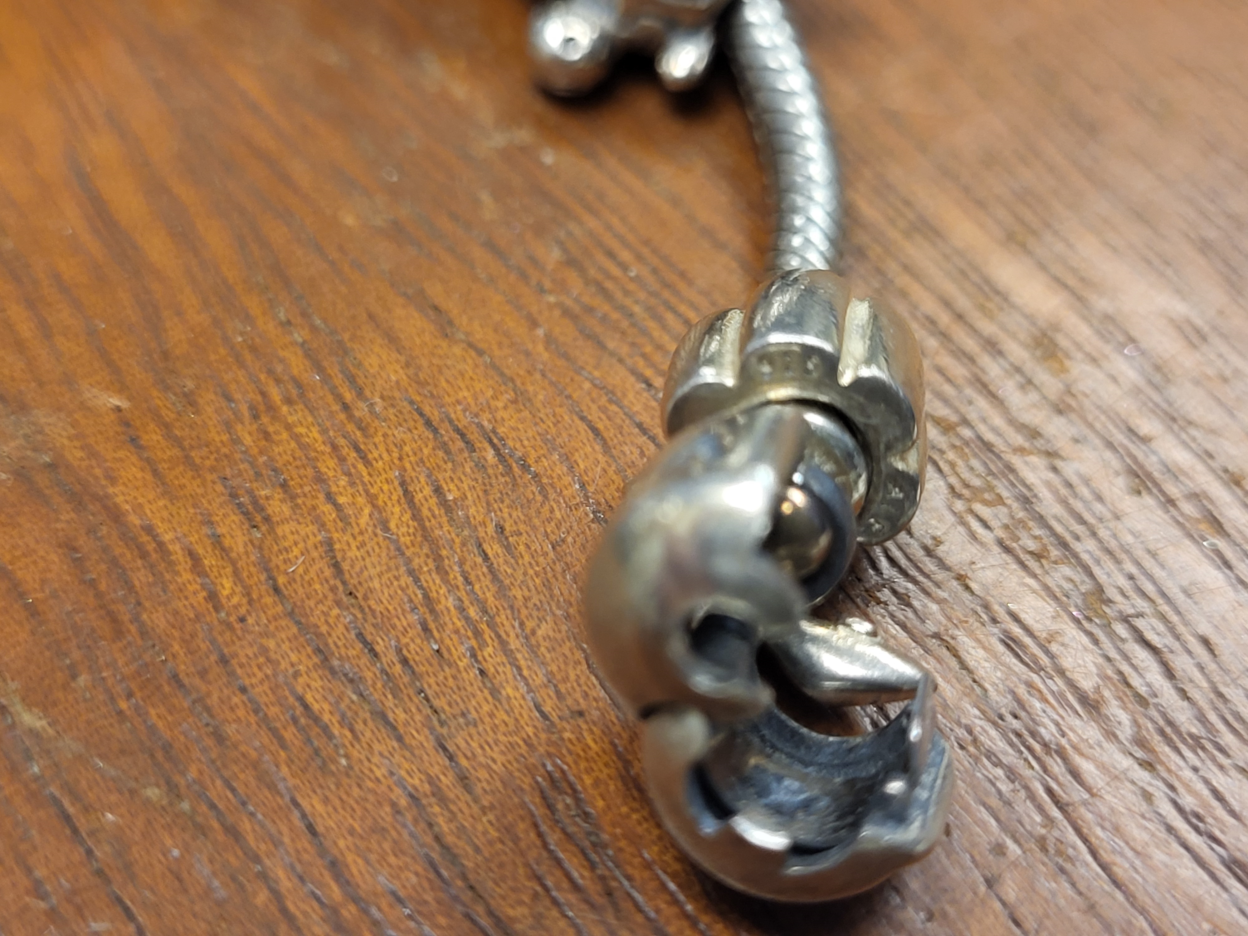 925 sterling 8″ Pandora charm bracelet w ./18 charms, money bag, turtle, slipper, soccer, carriage, etc… 68.9 grams exc condition see pics marked 925