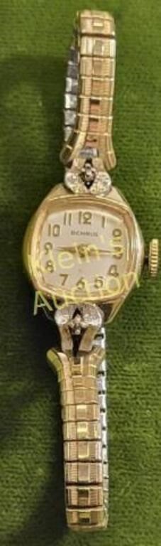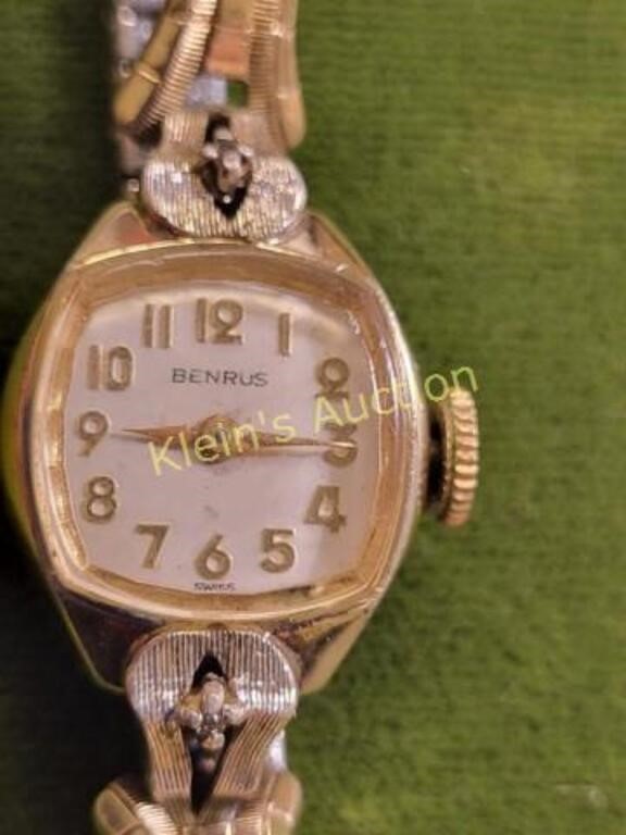 cz252 movement working but hard to set time winds and runs fine 17 jewels 10k rgp case w/ 2 diamond chips nice speidel bad to very clean watch seepics