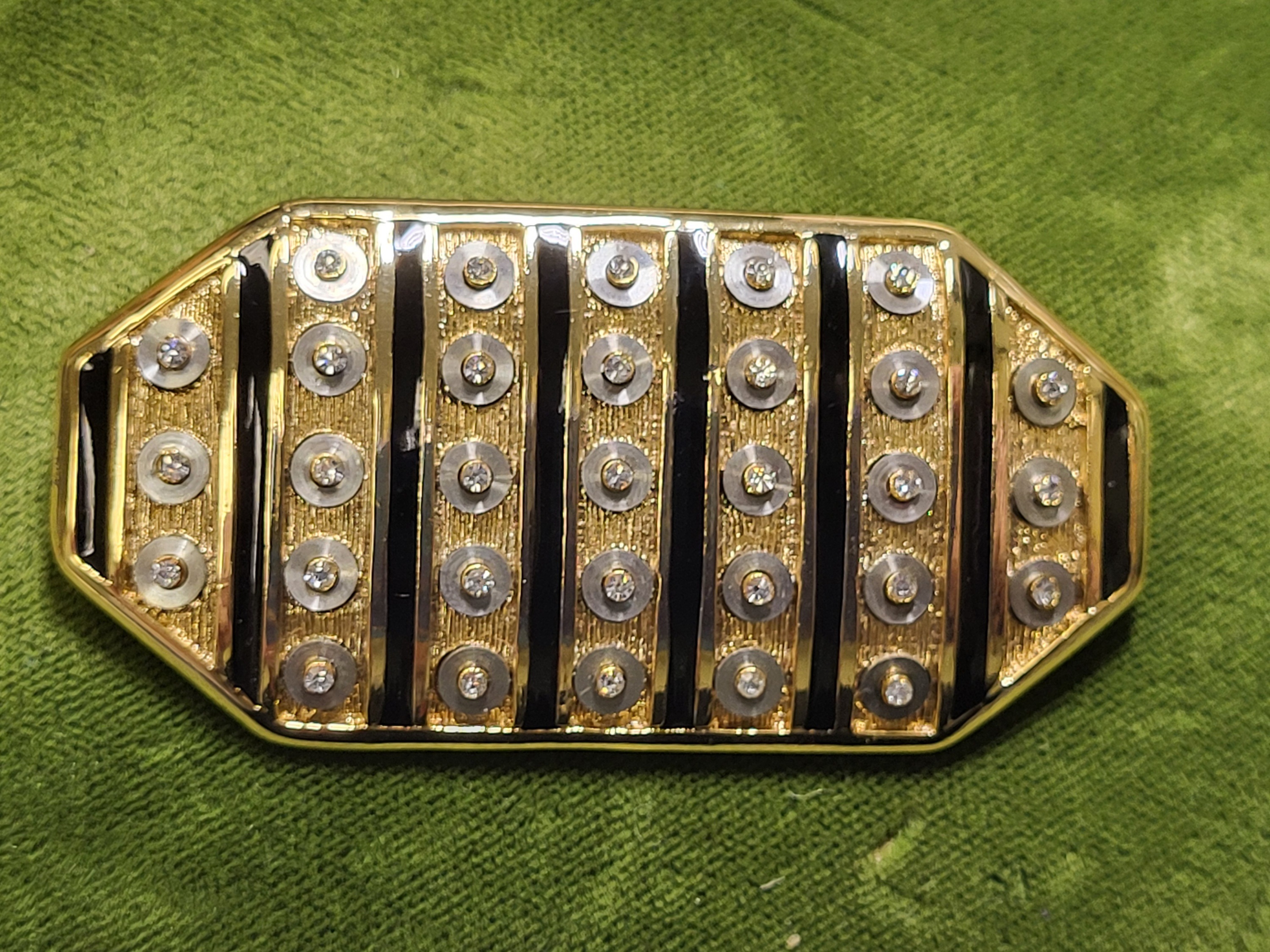 orena paris gold tone enamel & rhinestone brooch 2 1/2″ x 1 1/4″ safety barrel clasp, enamel with rhinestones Gorgeous! Ready to Wear See pics