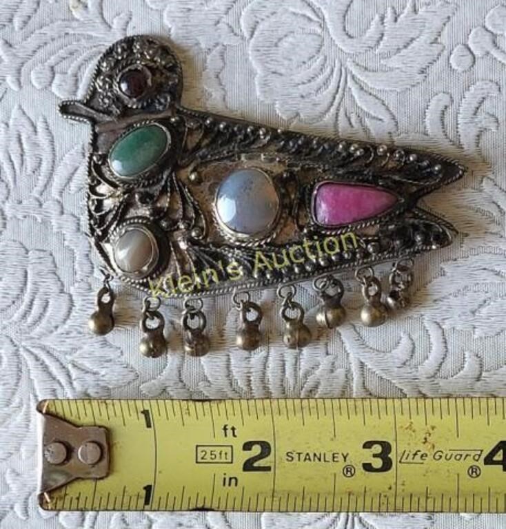 marked india on back several gem stones 3/1/2″ long in very good condition see pics