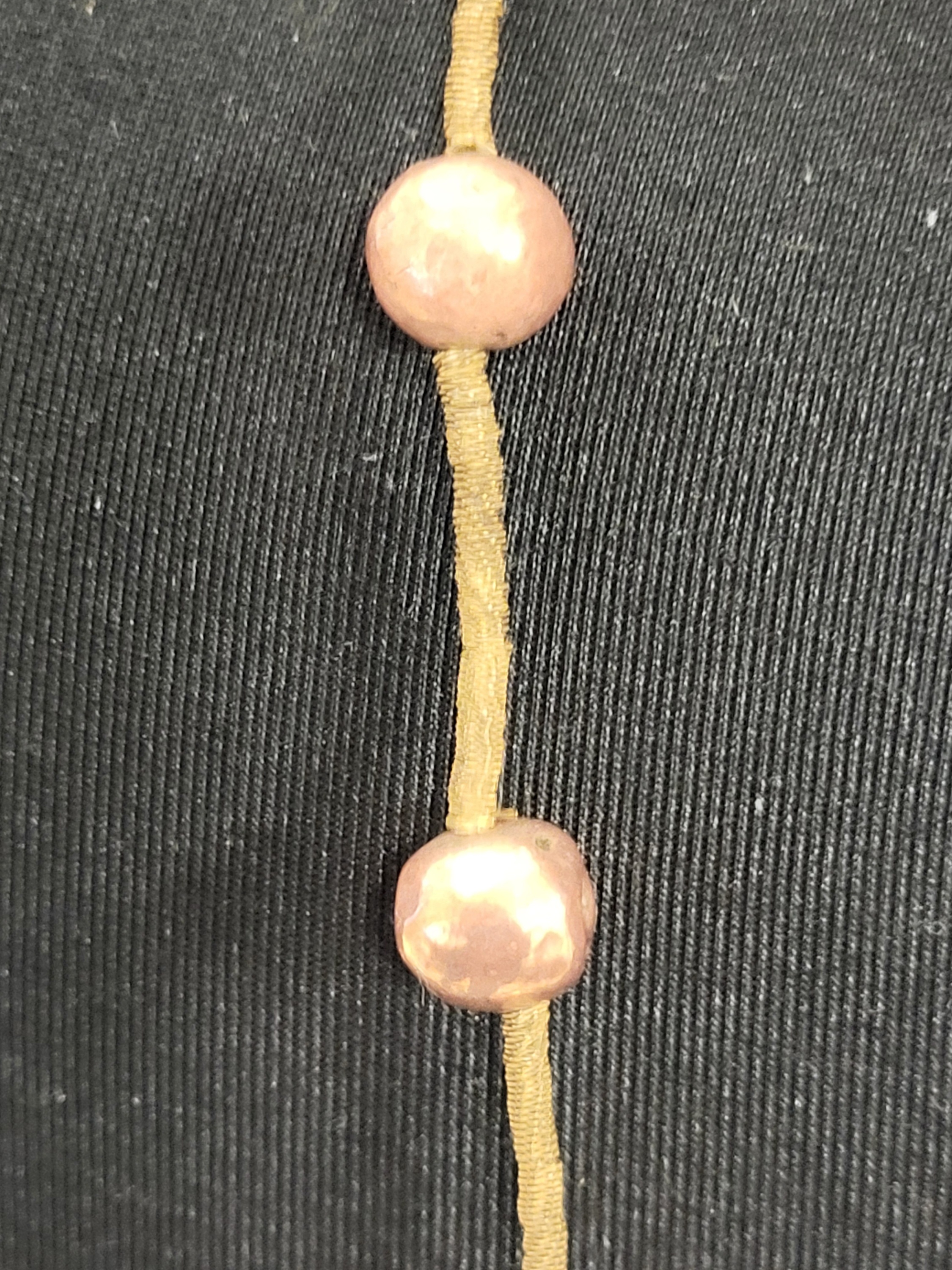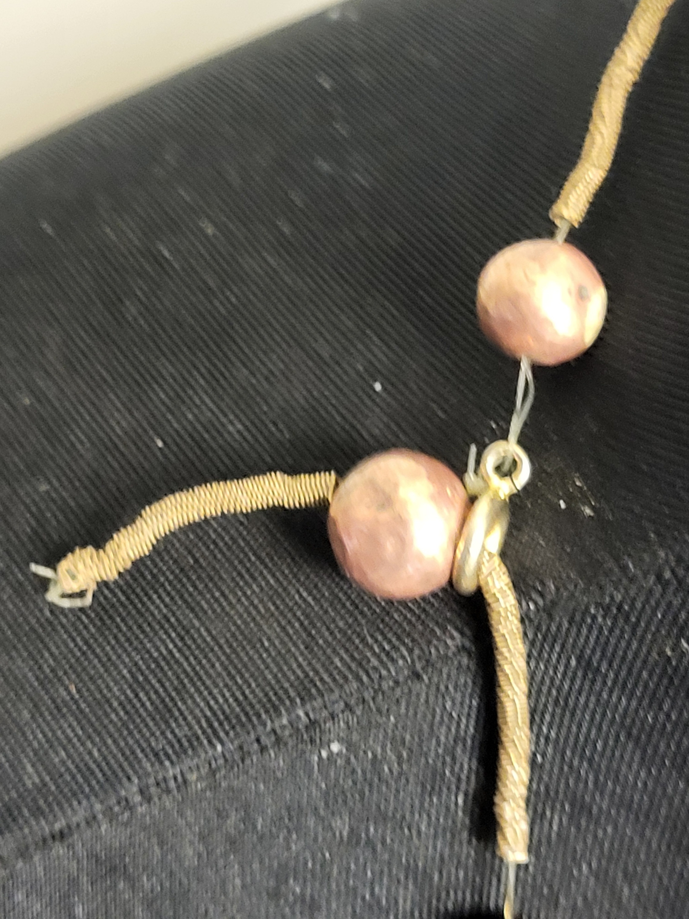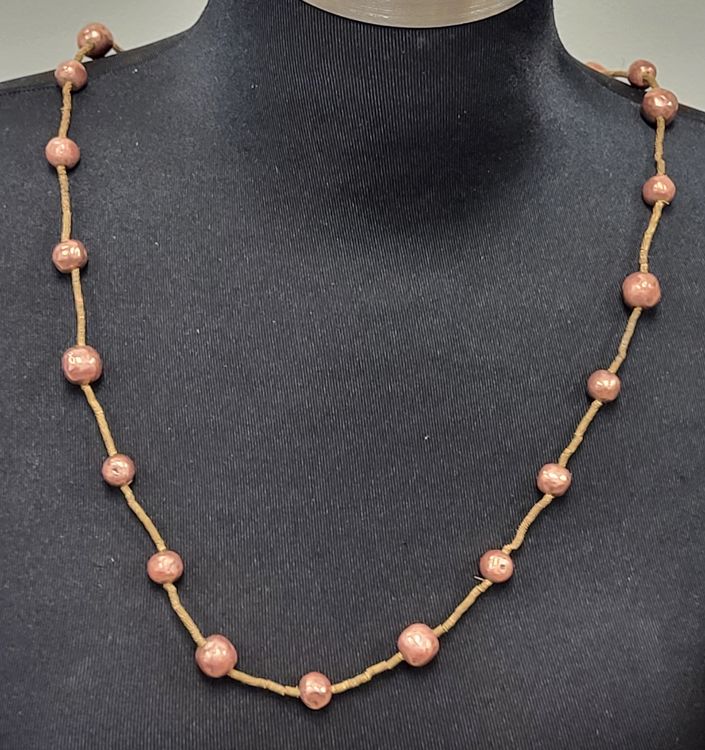 30″ all hand made copper balls & brass spring type dividers will need a new clasp what a statement piece! see pics