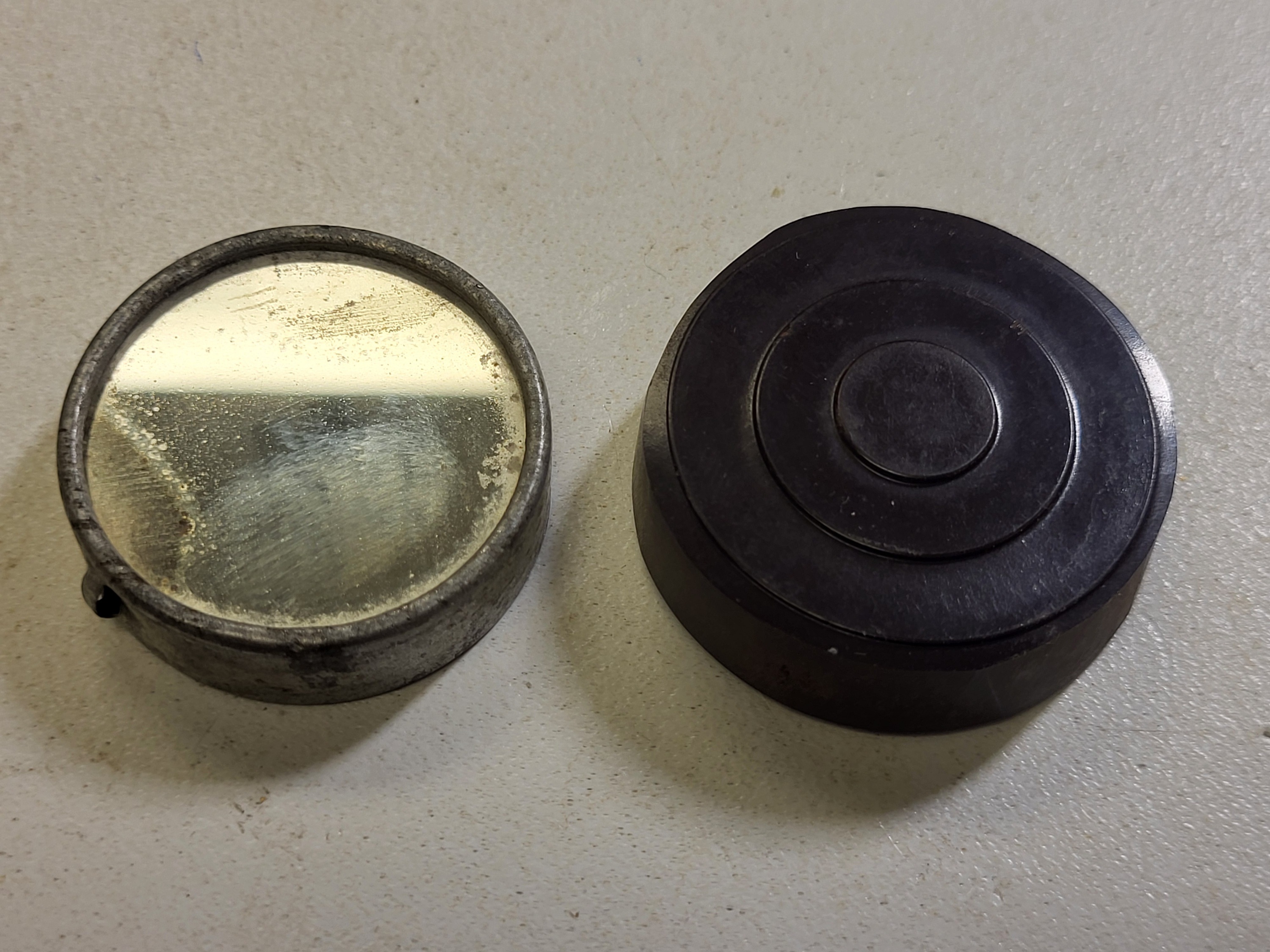see pics 1 looks like Bakelite other aluminum with mirror on back both for one bid