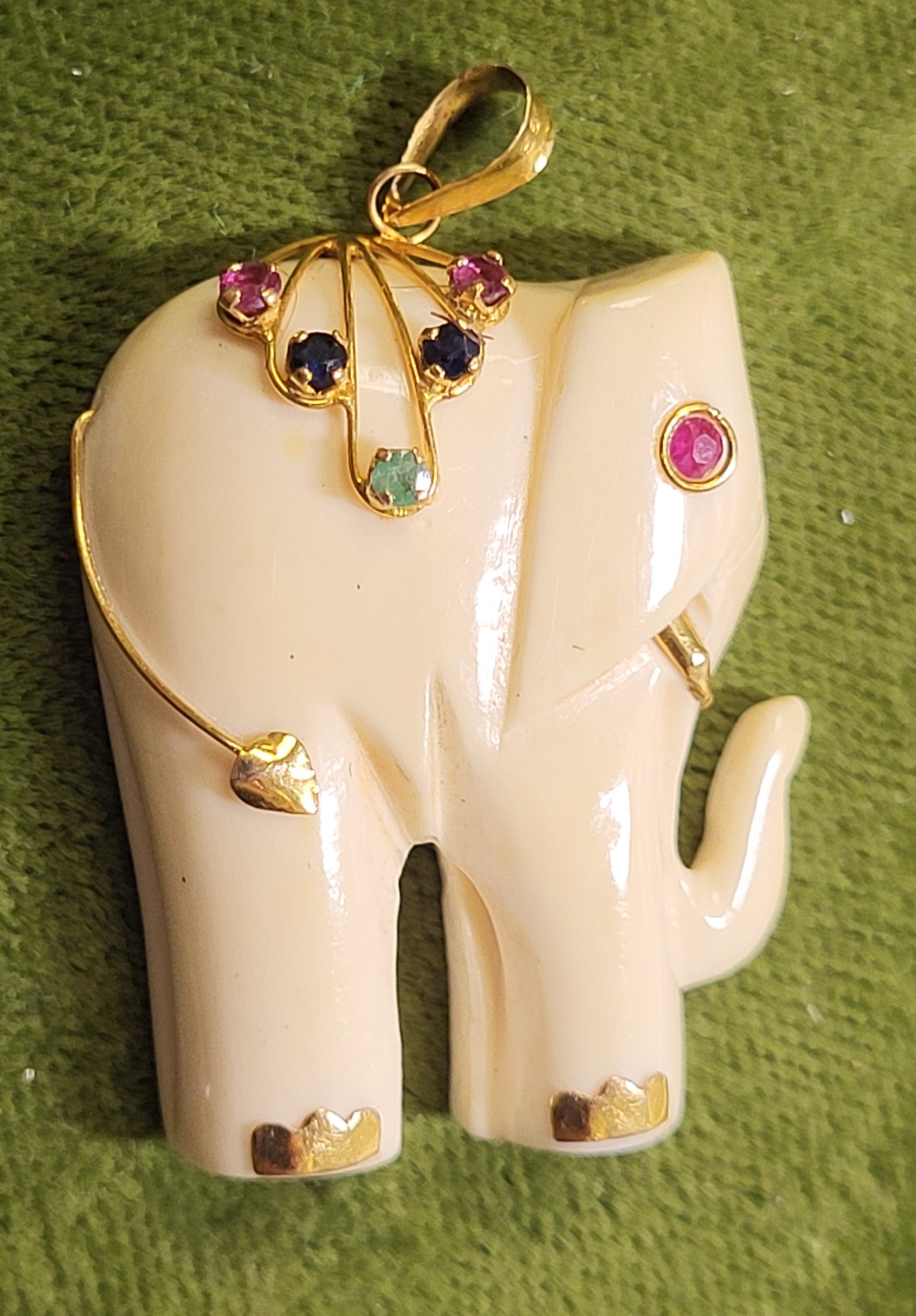 14K yellow gold ruby sapphire emerald elephant pendant