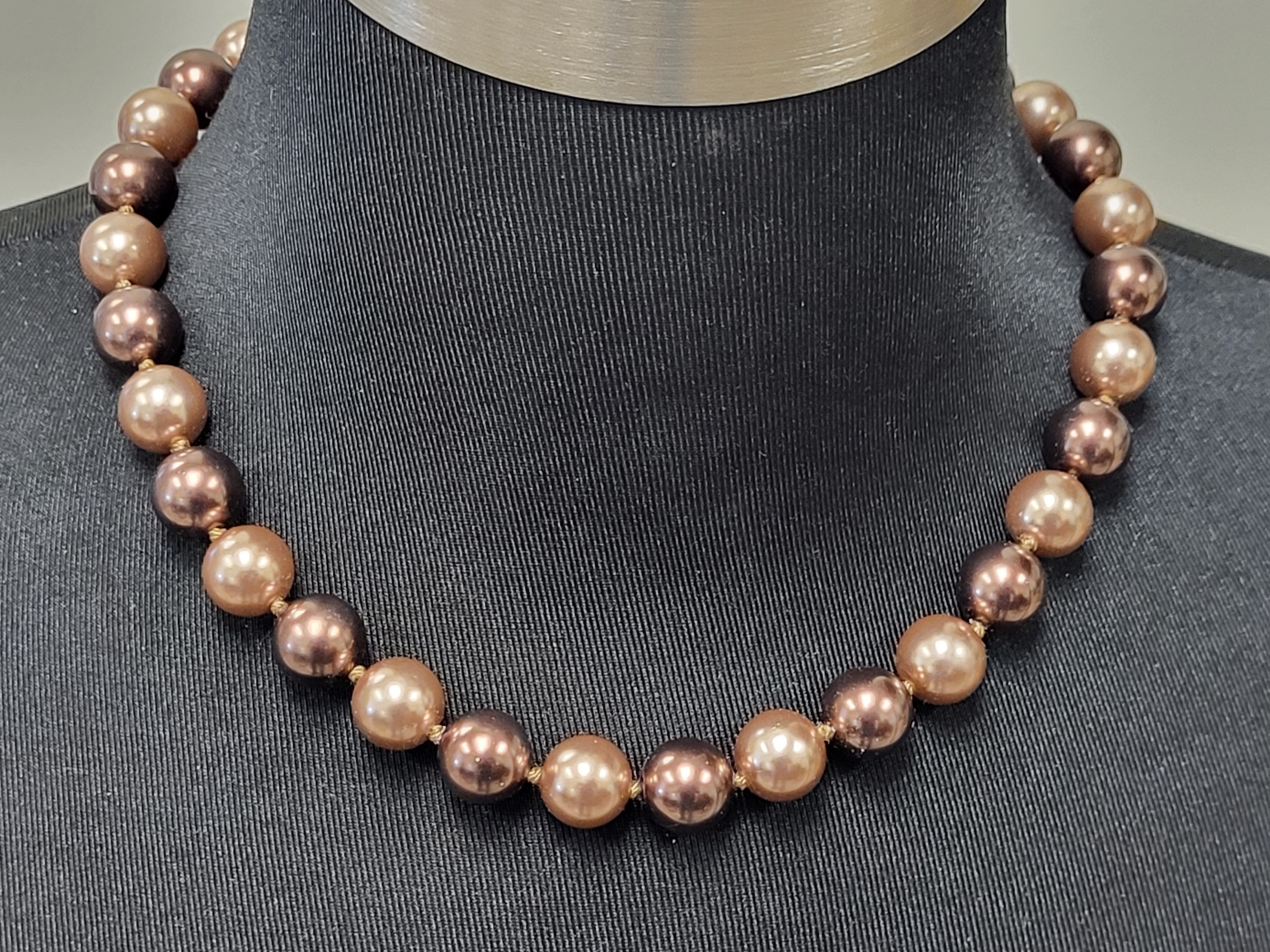 11.5mm faux pearls 17.5″ long with gold tone clasp unsigned see pics