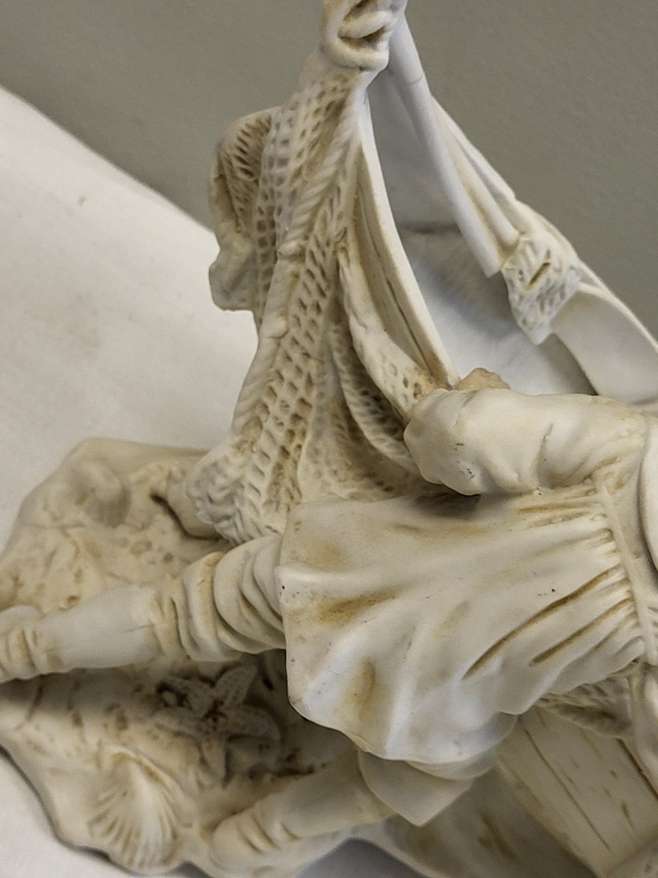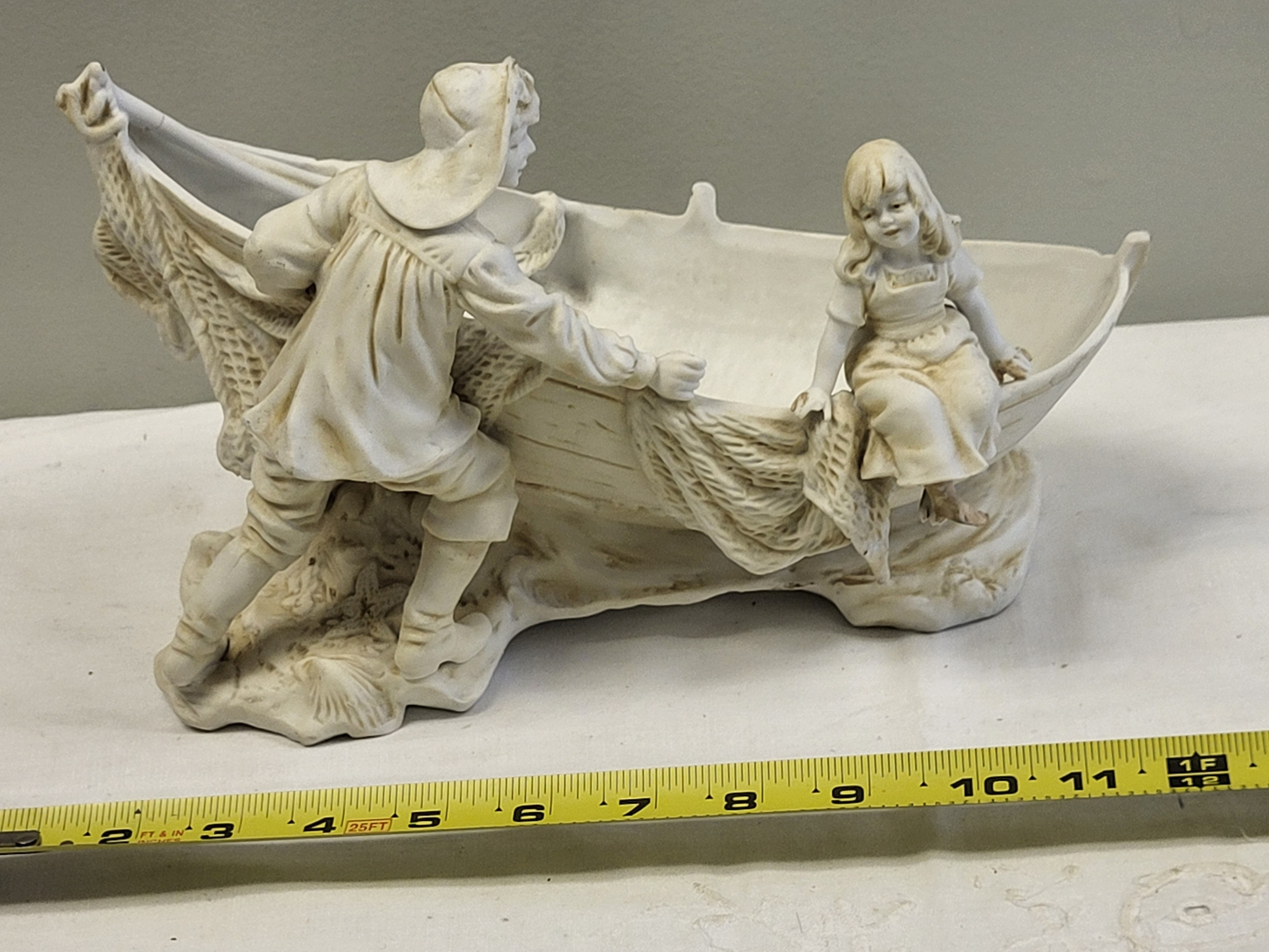 larger figurine see pics also for condition all white porcelain 11″ long 7″ tall signed 196L?
