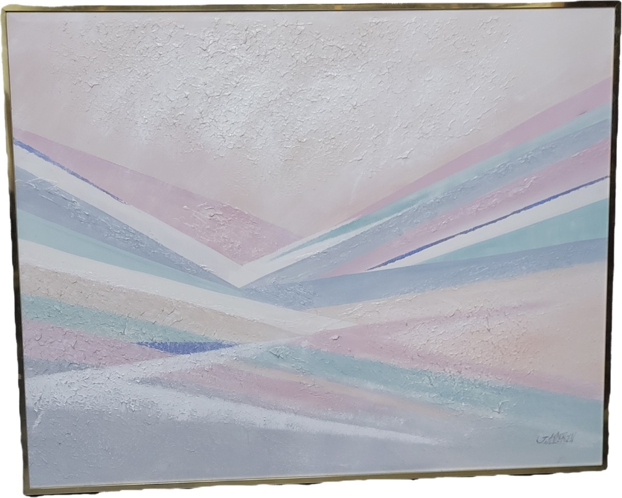 mid century 49″ x 60″ framed size great mid century piece in gold anodized frame see pics