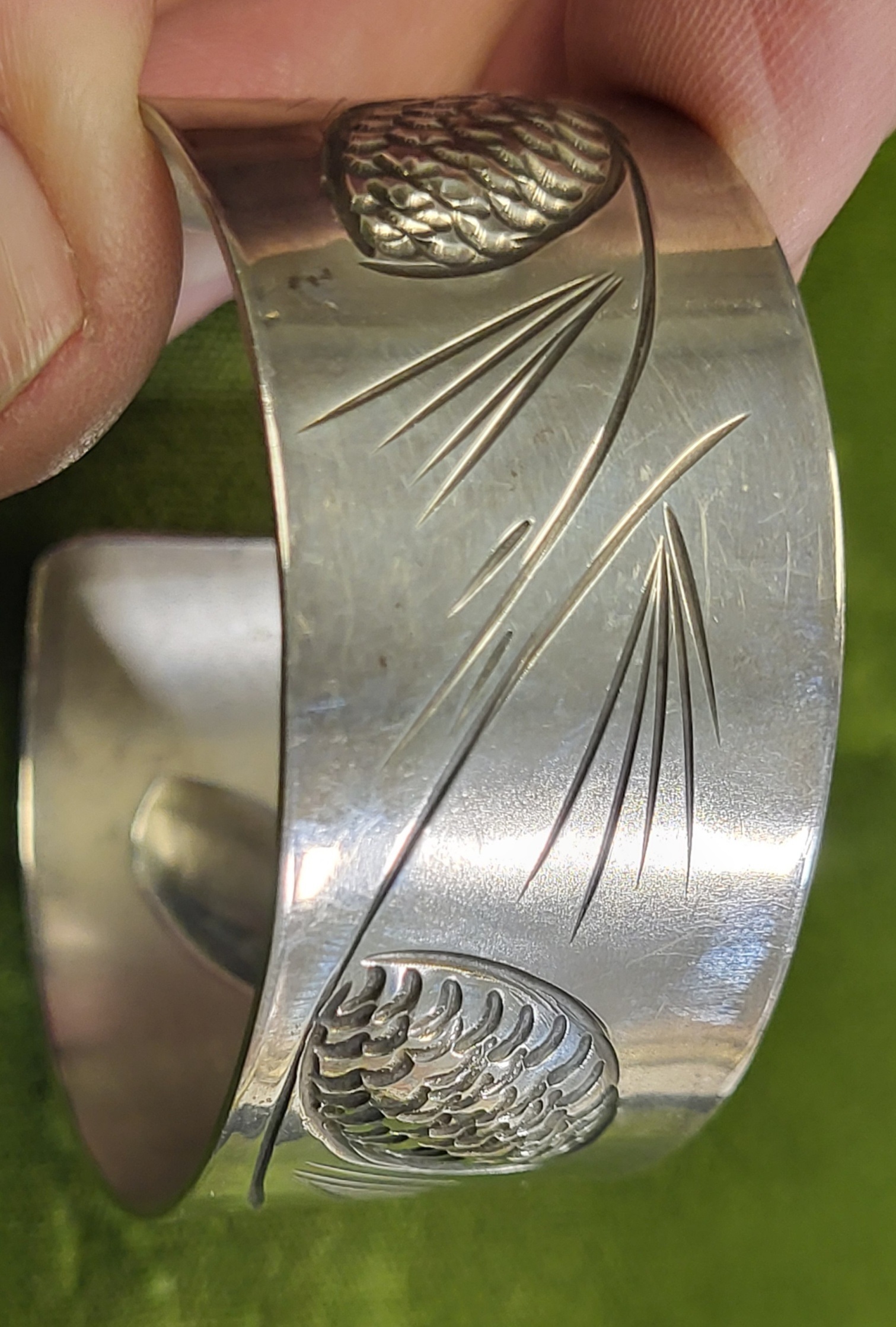 25.7 mm wide embossed pine cone by Staurt NYE excellent see pics