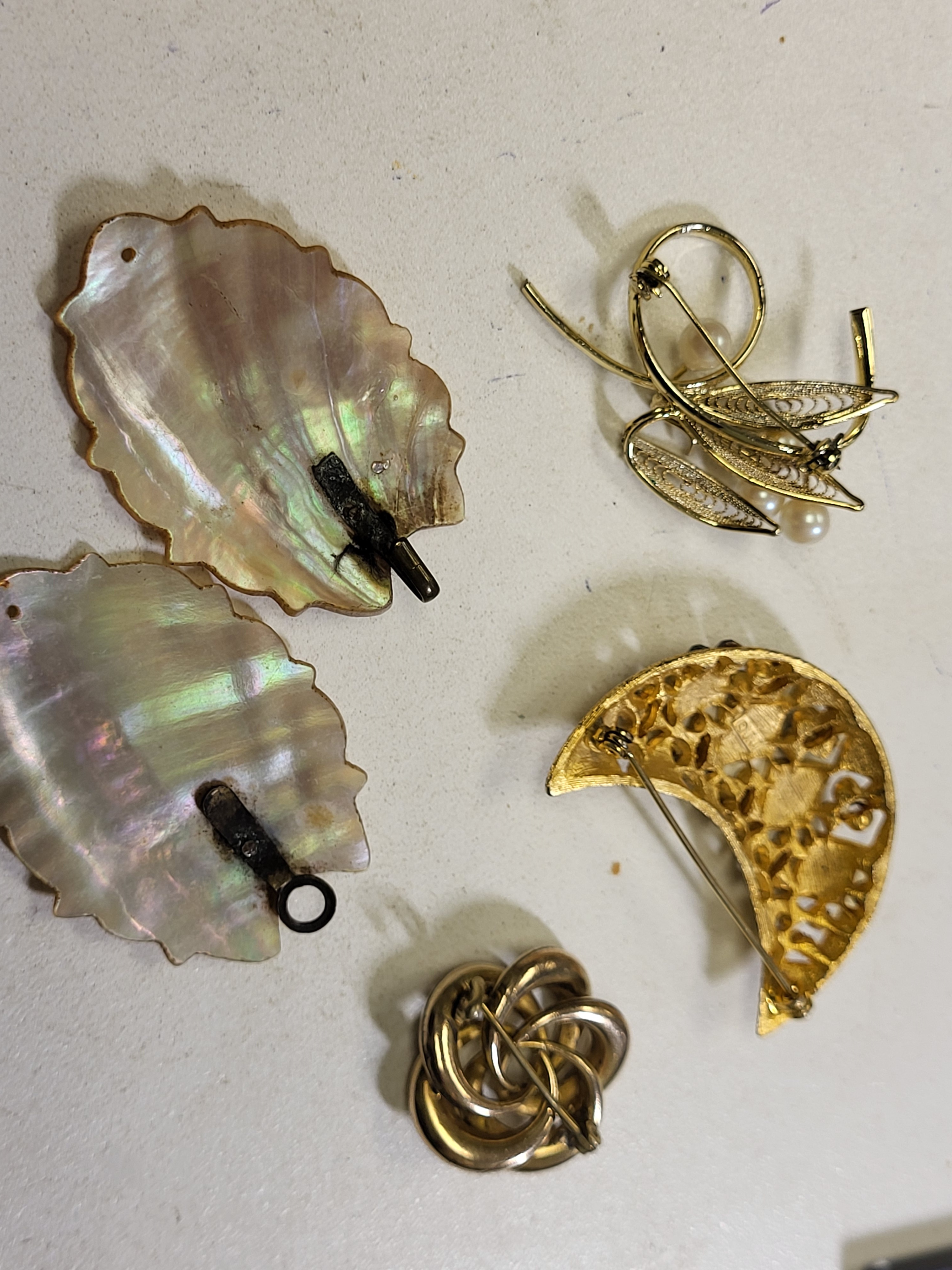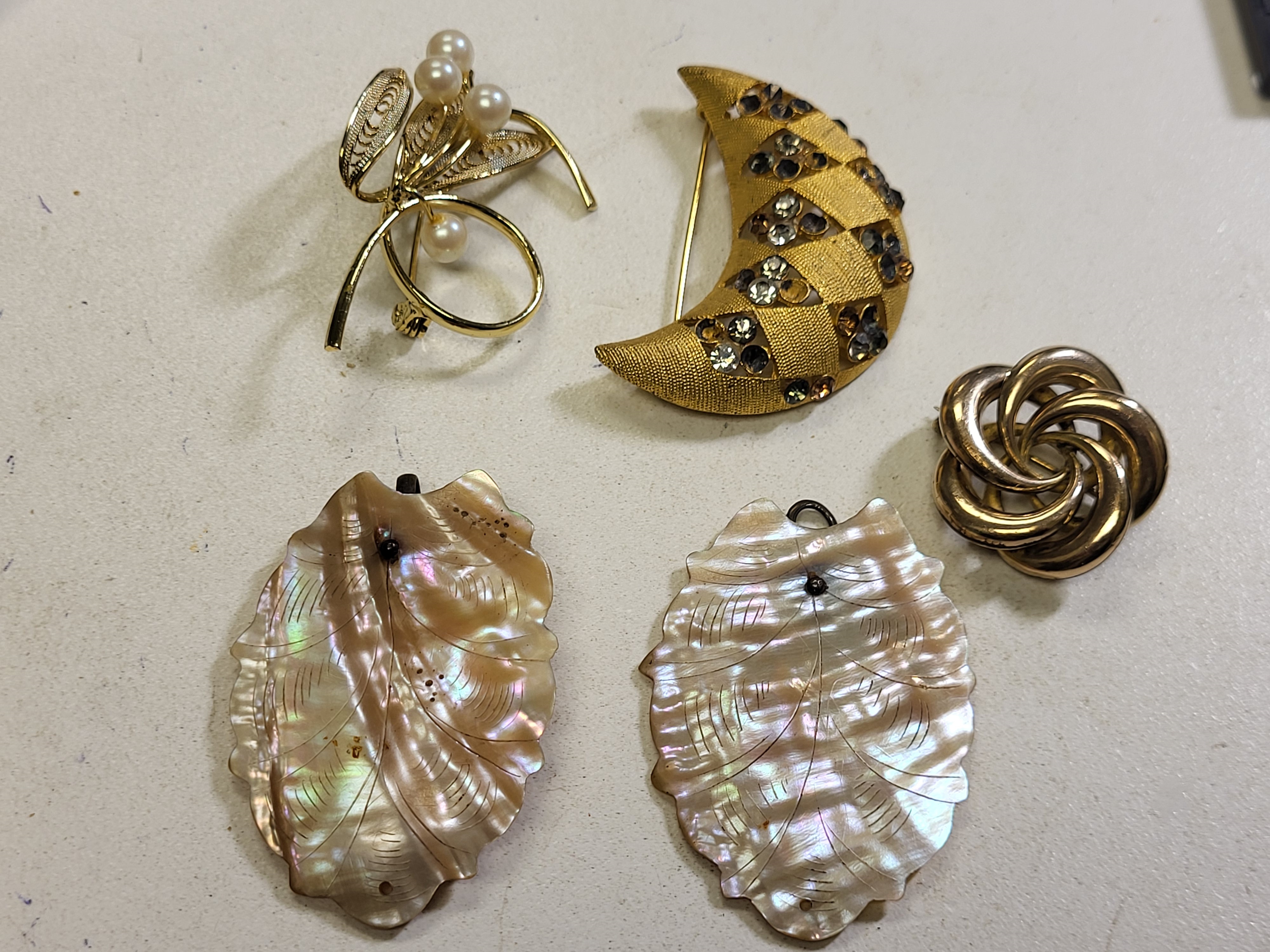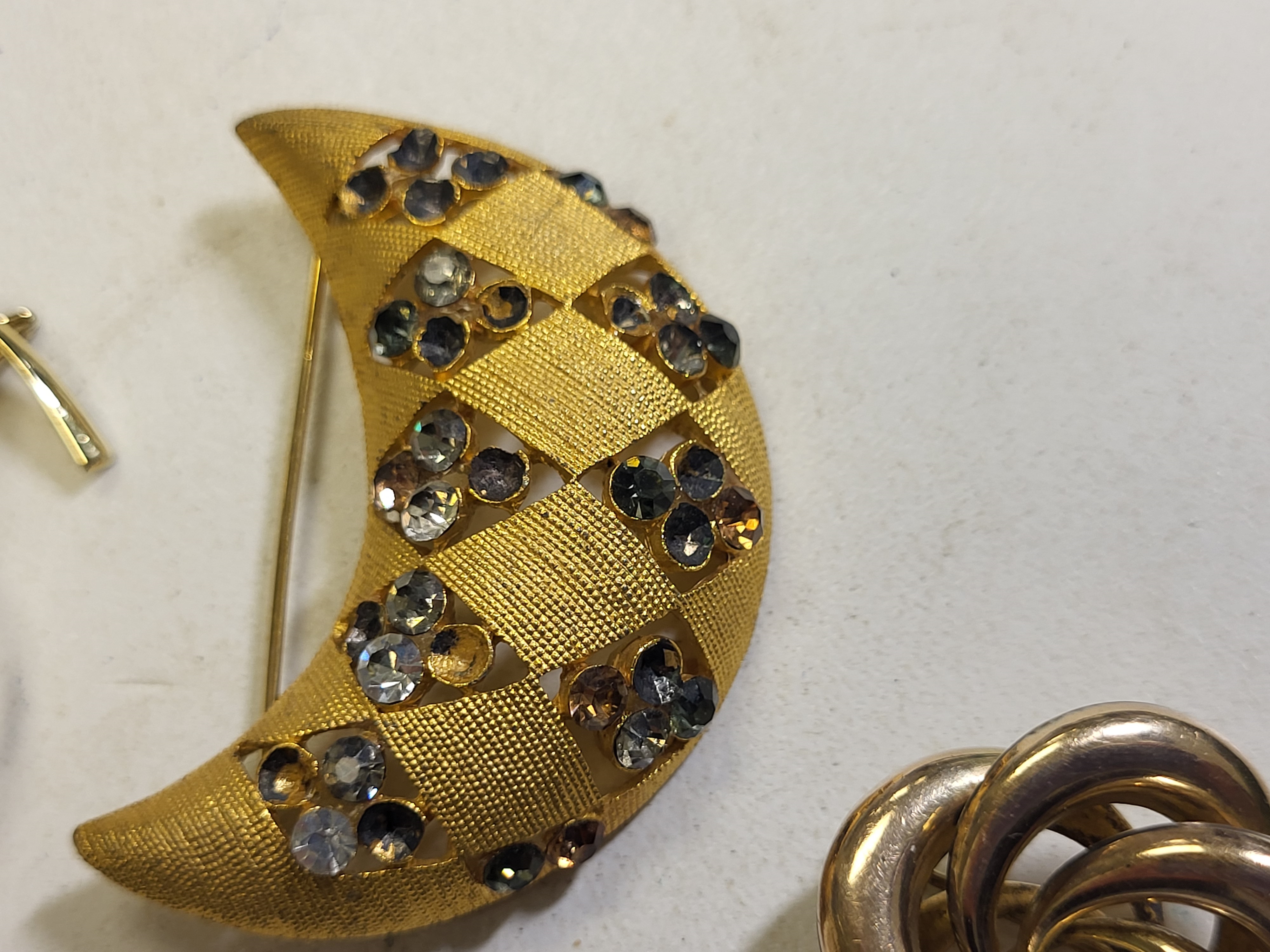 all 5 pcs for one bid JJ crescent moon, brooch need stones replaced see pics