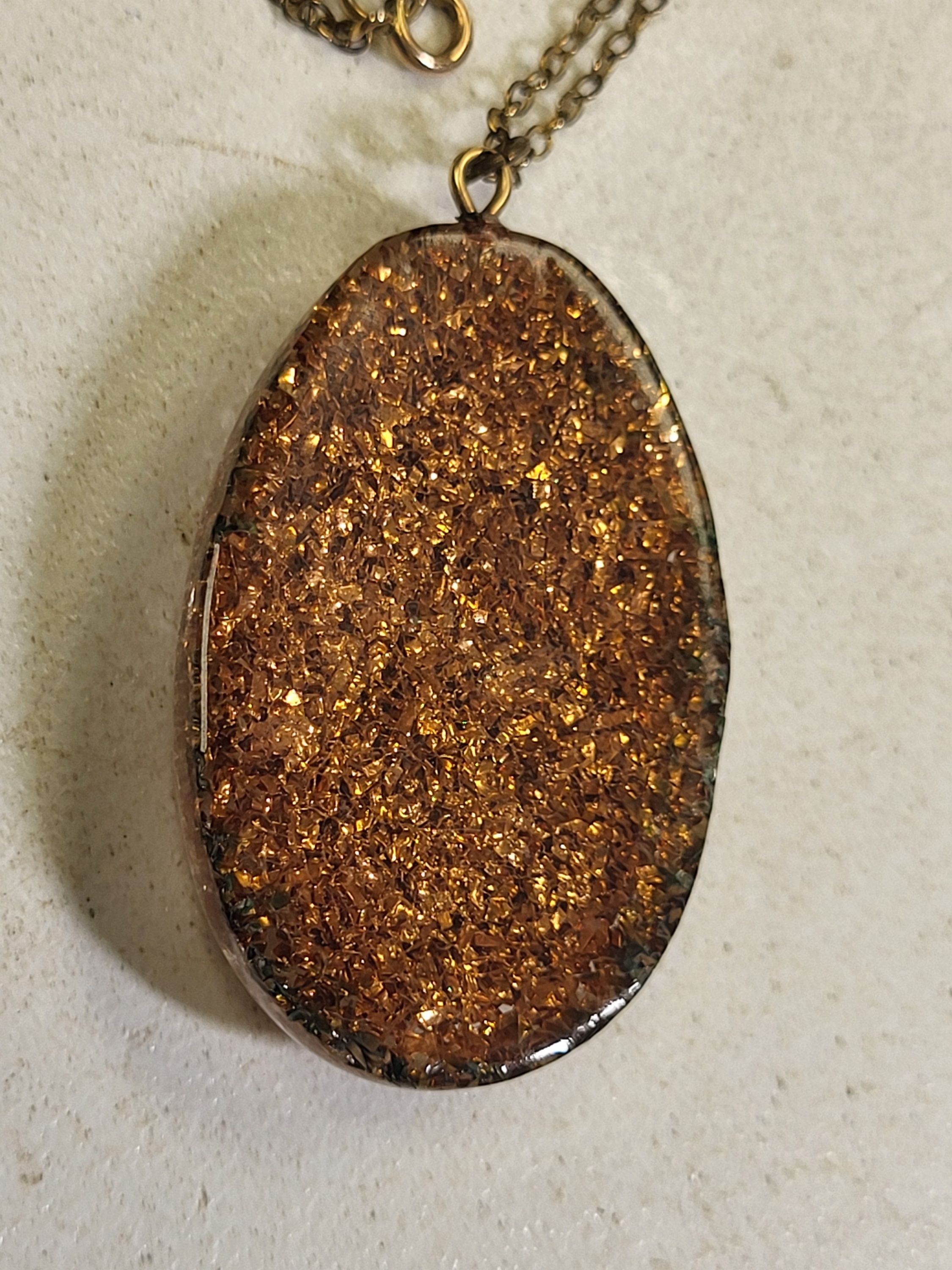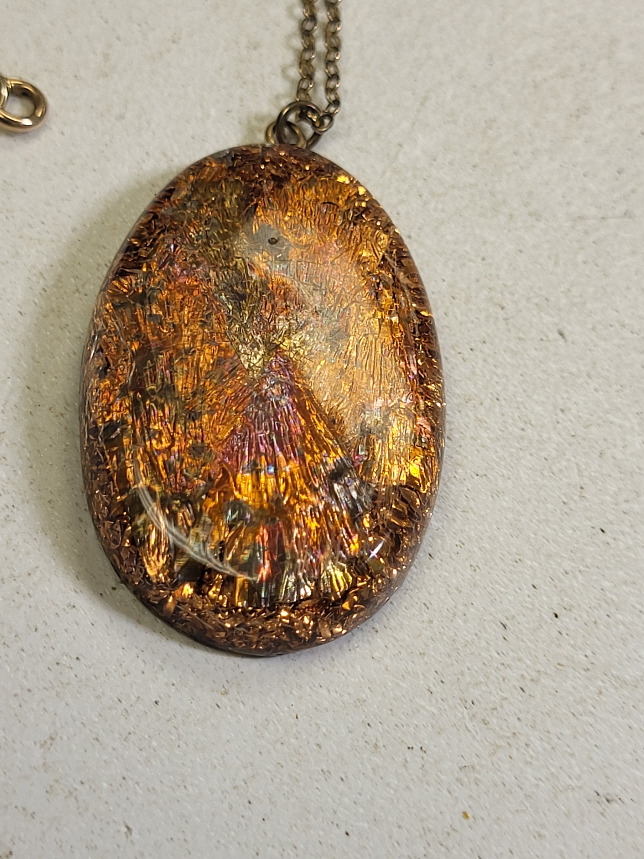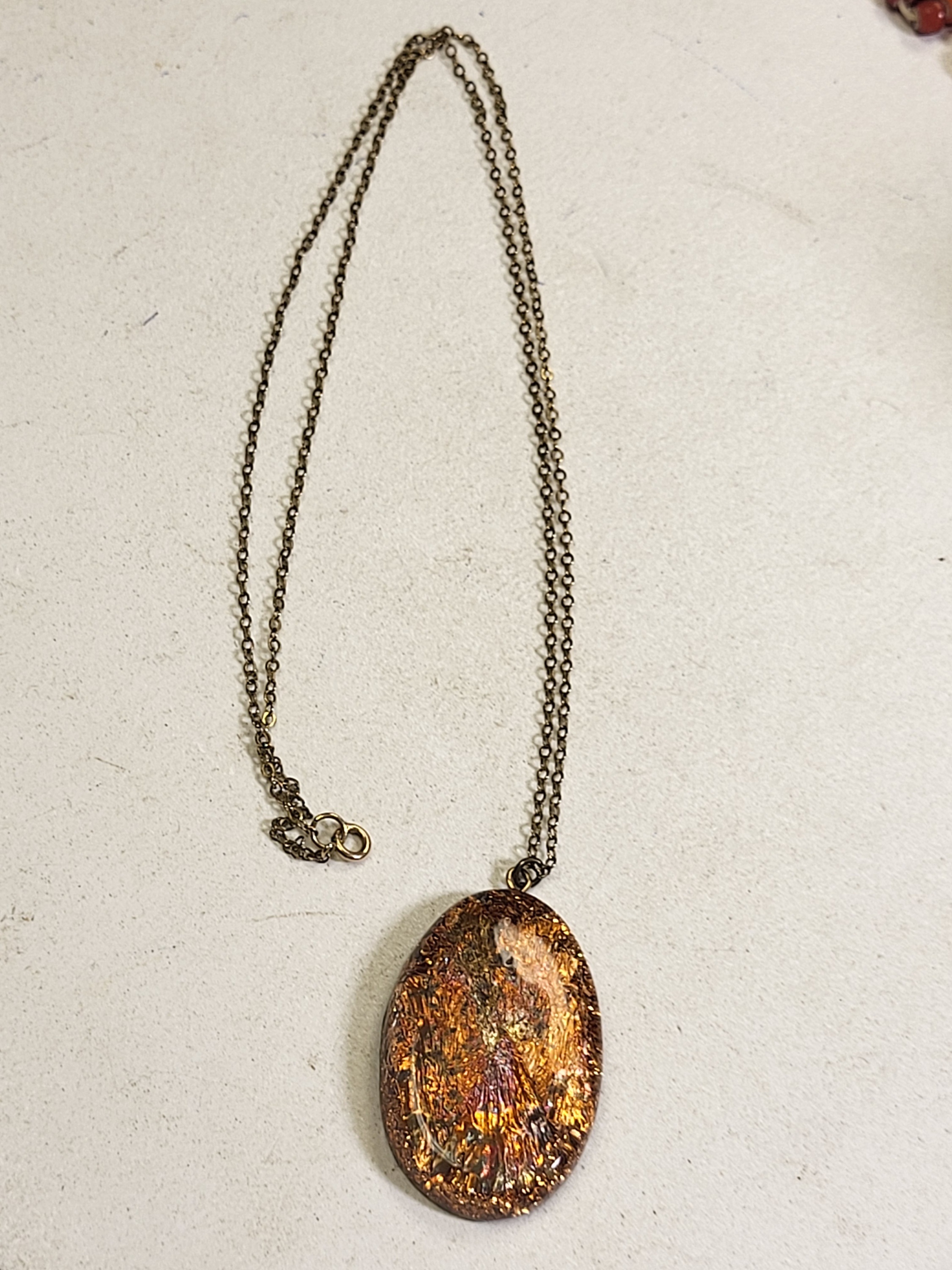 very cool pendant fused in lucite on 20″ gold filled chain see pics