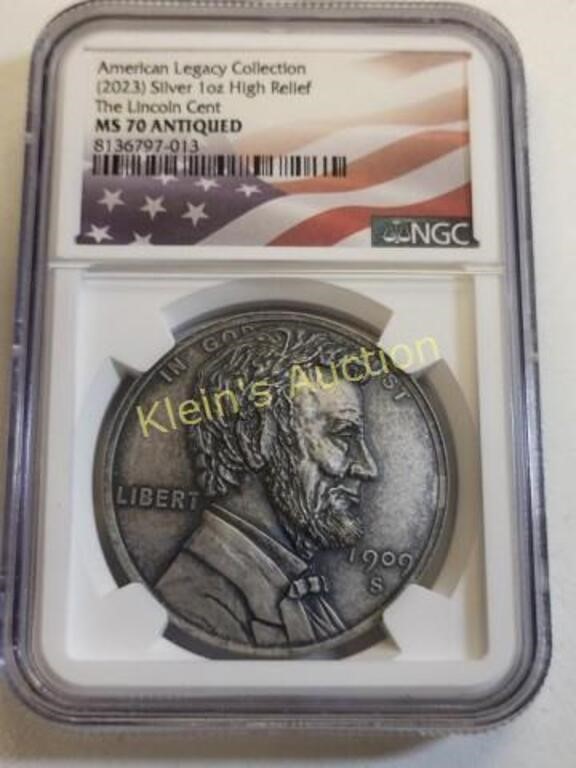 ngc graded and top grade! could not find any available right now at this top grade! and being ngc graded you know it is what they say! one full ounce pure silver see pics909S high relief 1 ounces lincoln cent 2023