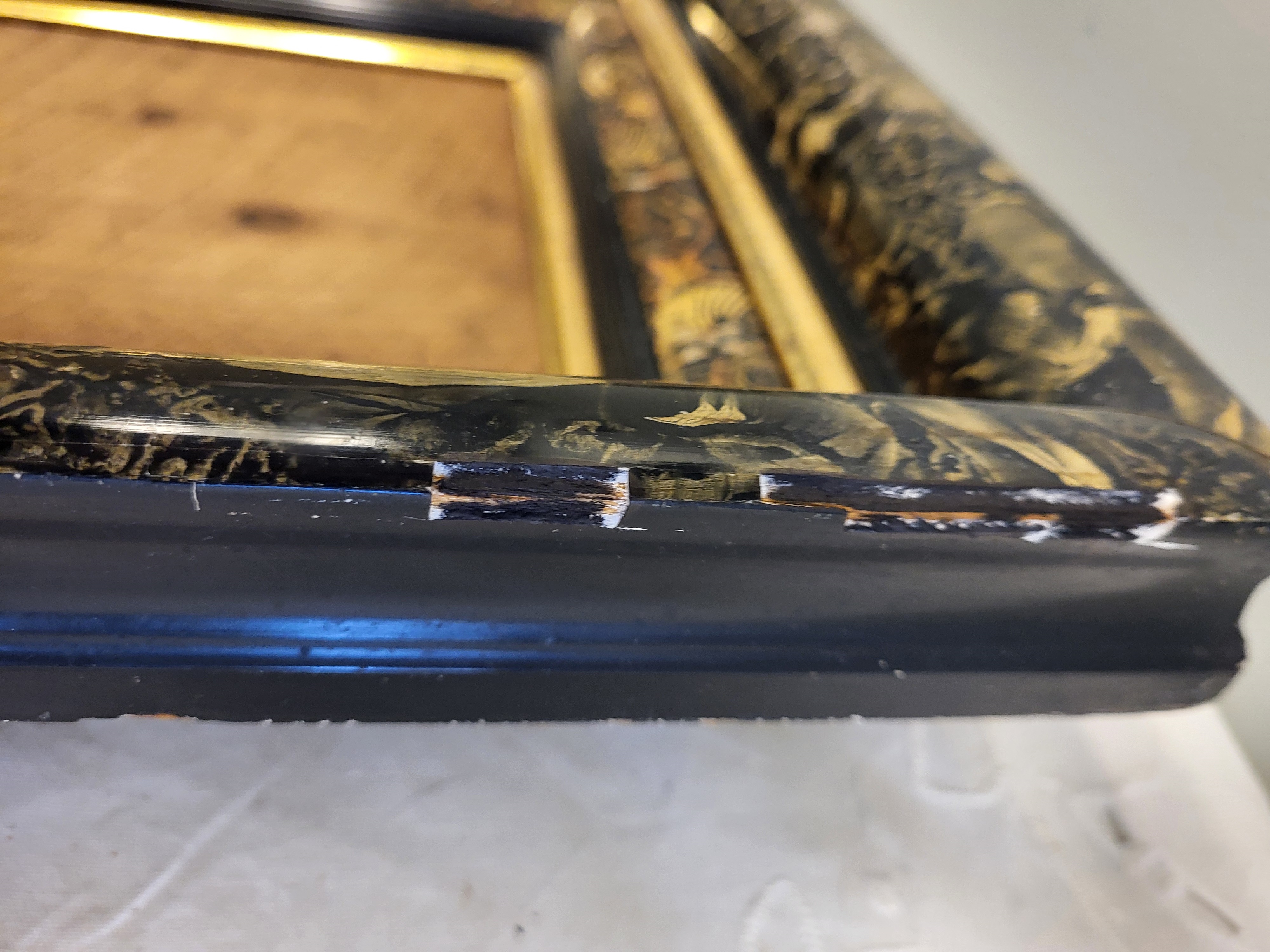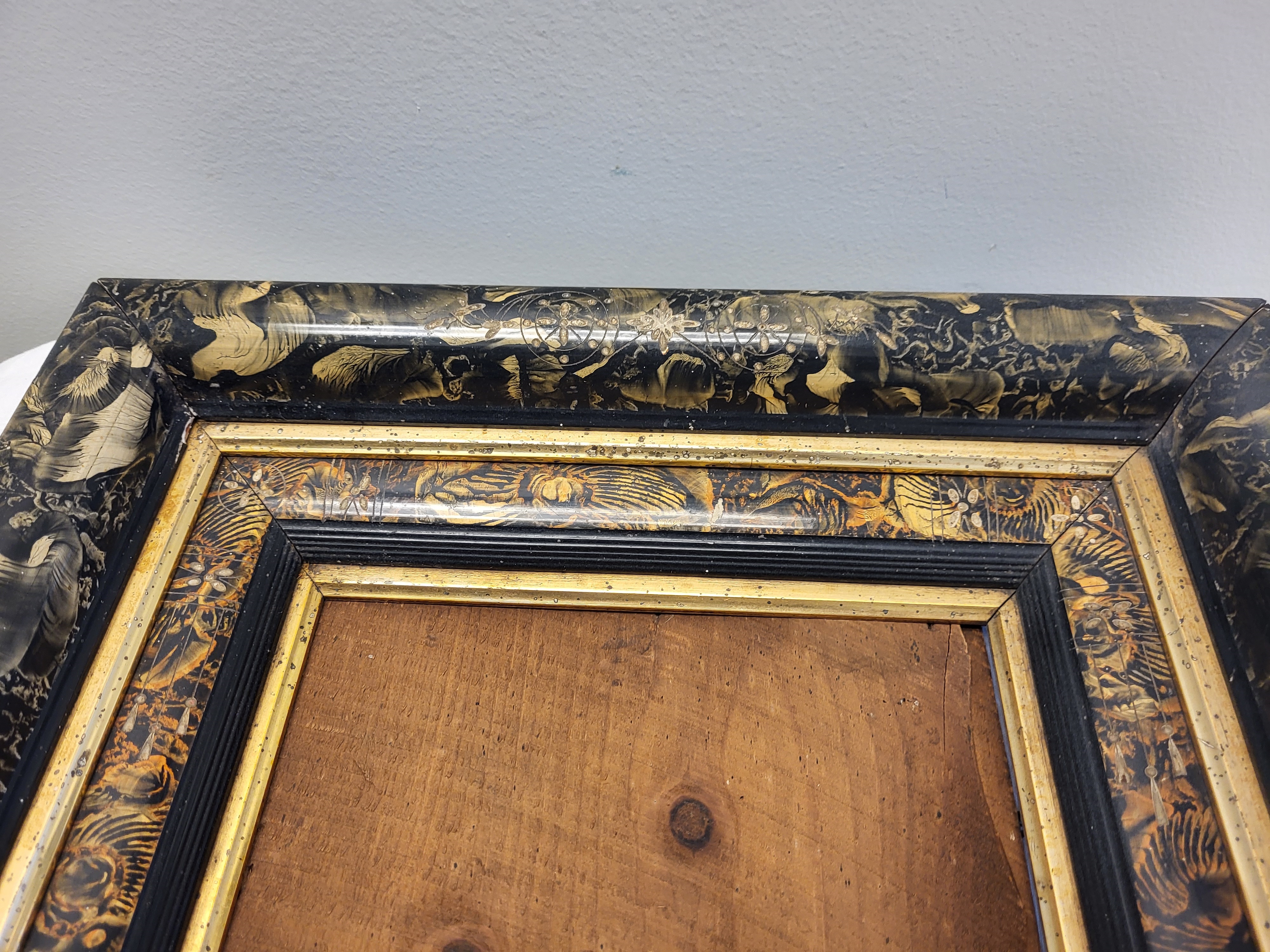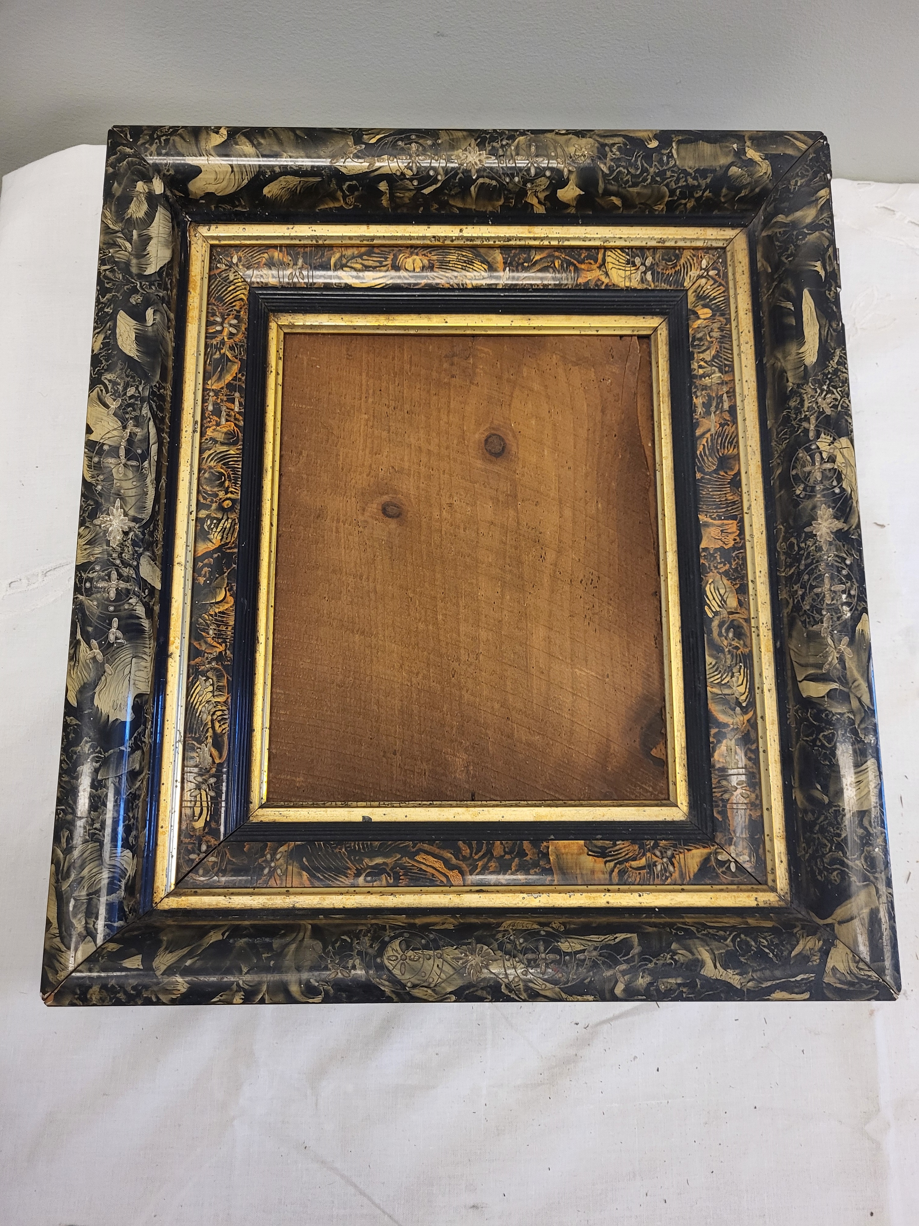 Victorian Eastlake frame with incised decoration, with gilt , shadow box frame, deep well, 14″ x 16″ frame size does have some loss definitely a frame you should not miss out on! great for that victorian picture, see pictures