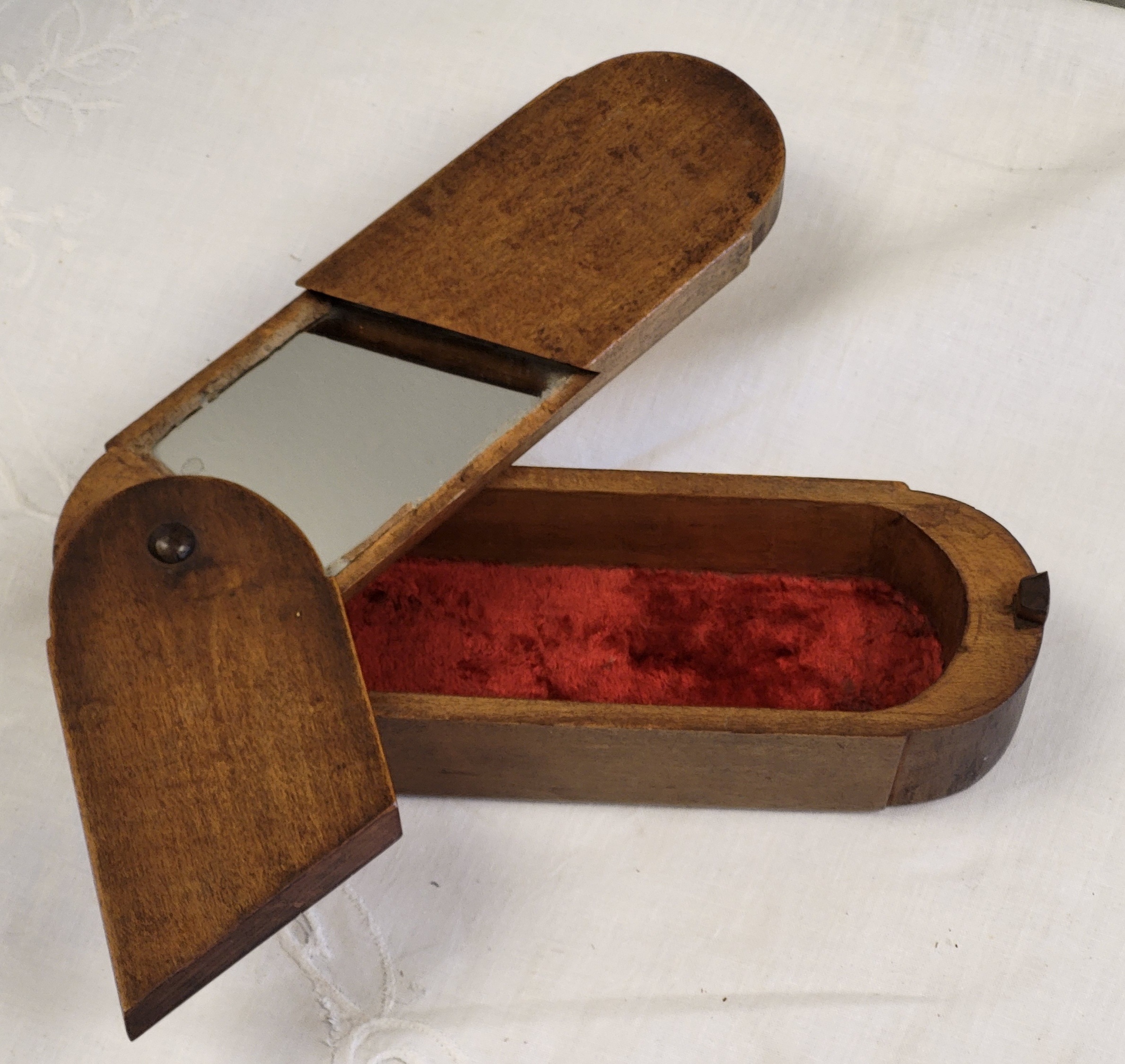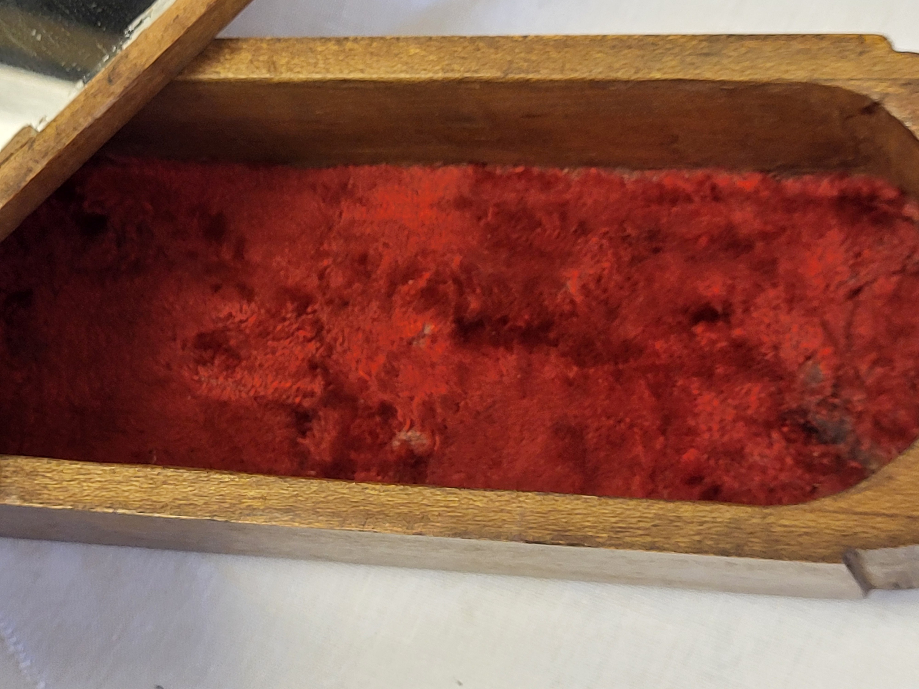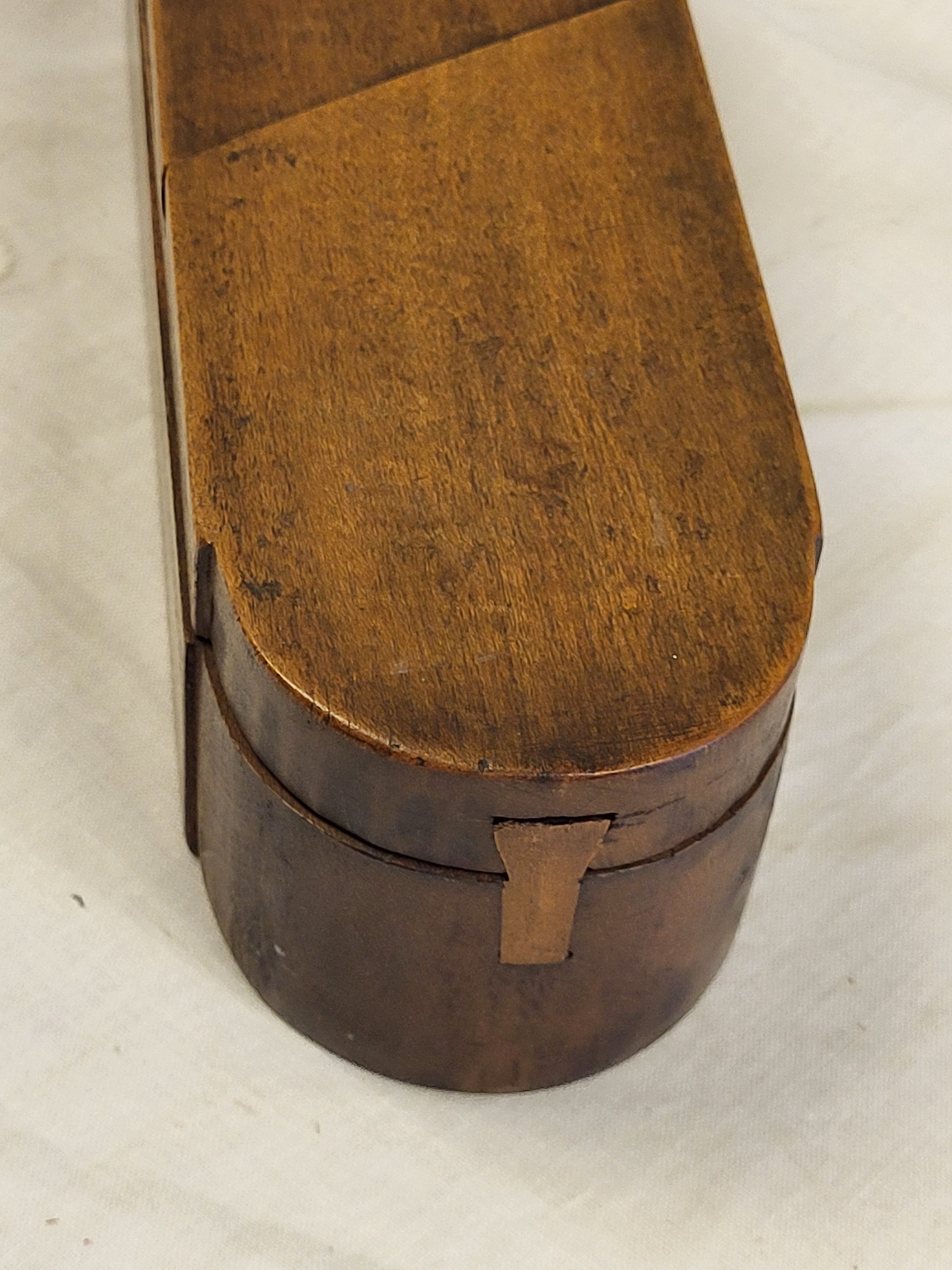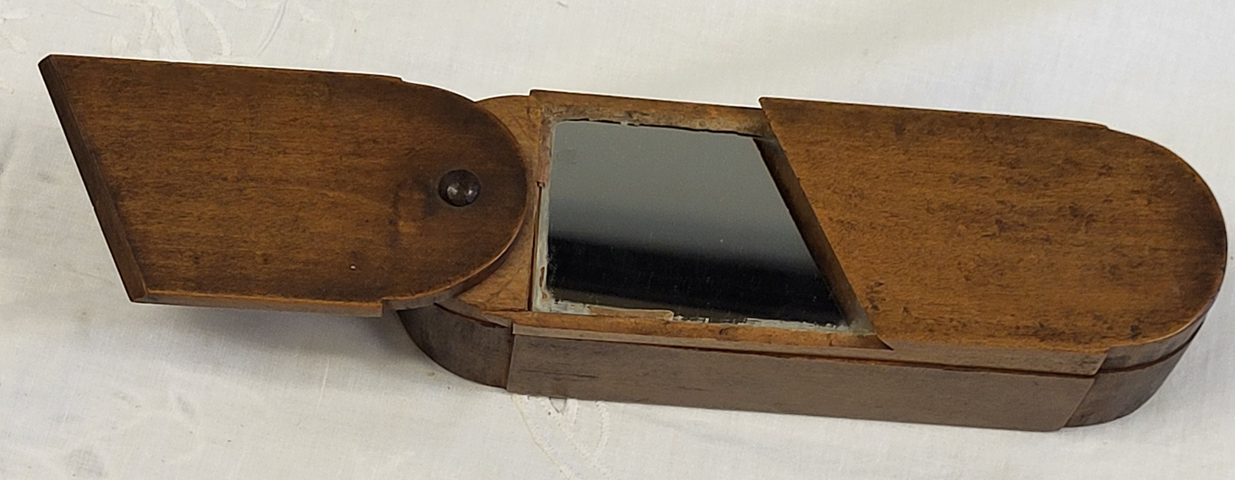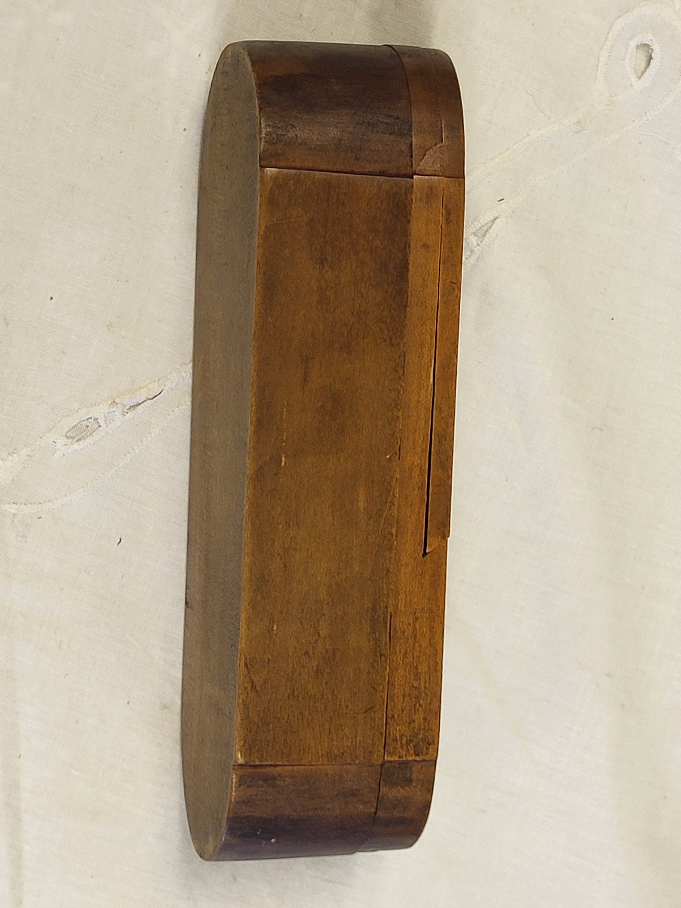 you must open top section to allow slide to work and open the rest, late 1800’s solid chestnut 2 1/2″ tall x 9″ x 3″ see pics