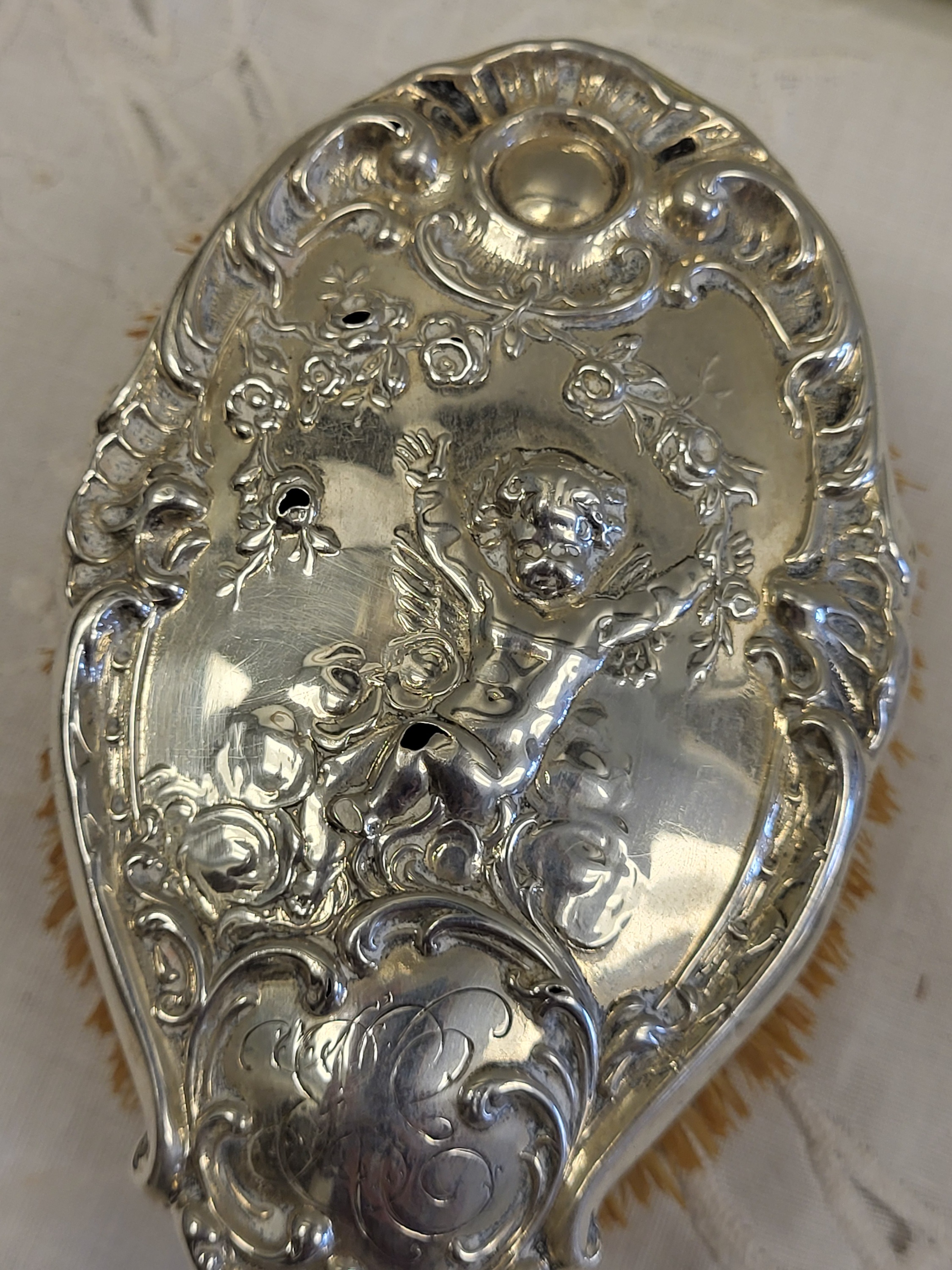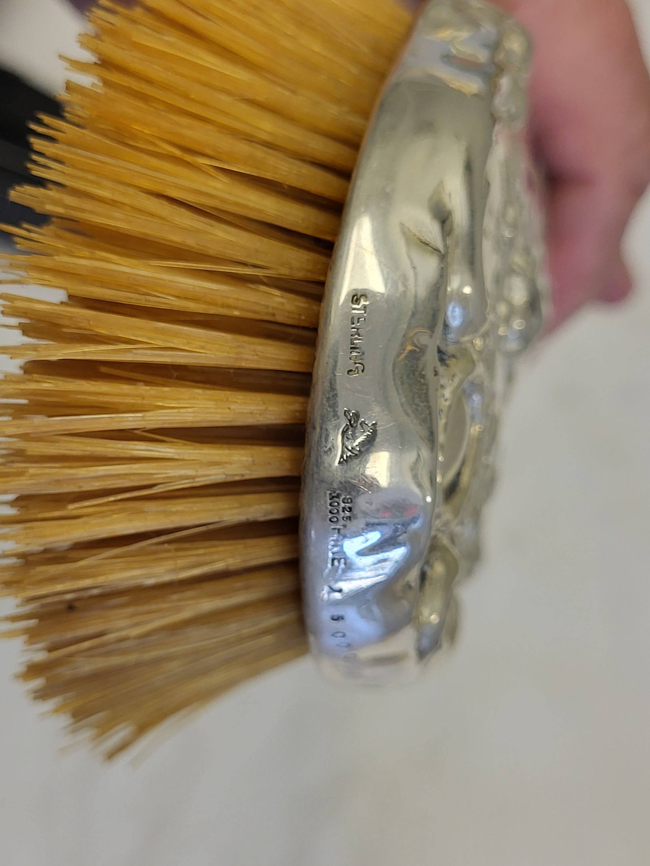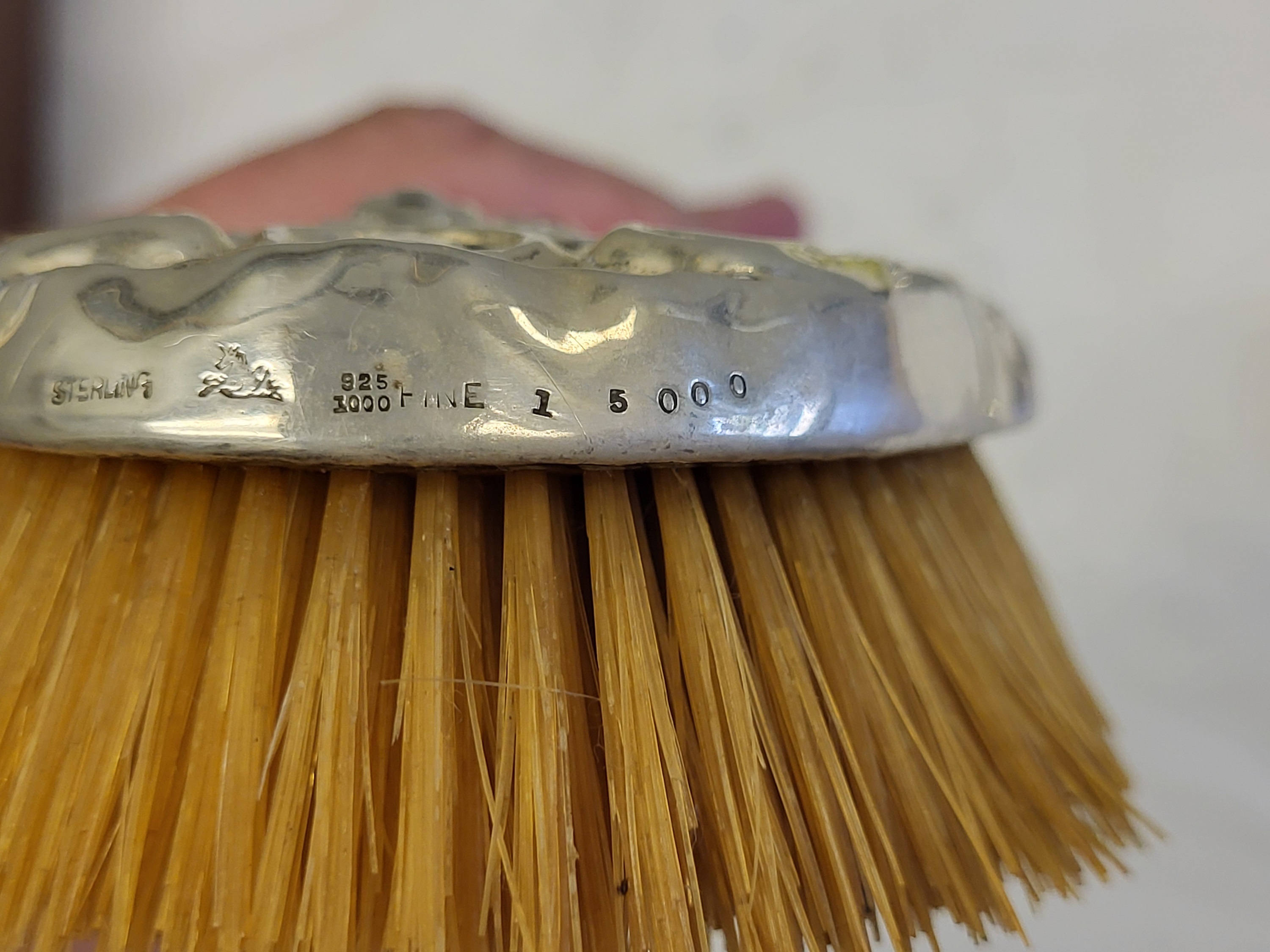 marked sterling with winged unicorn 925-1000 hand held mirror and hair brush 9