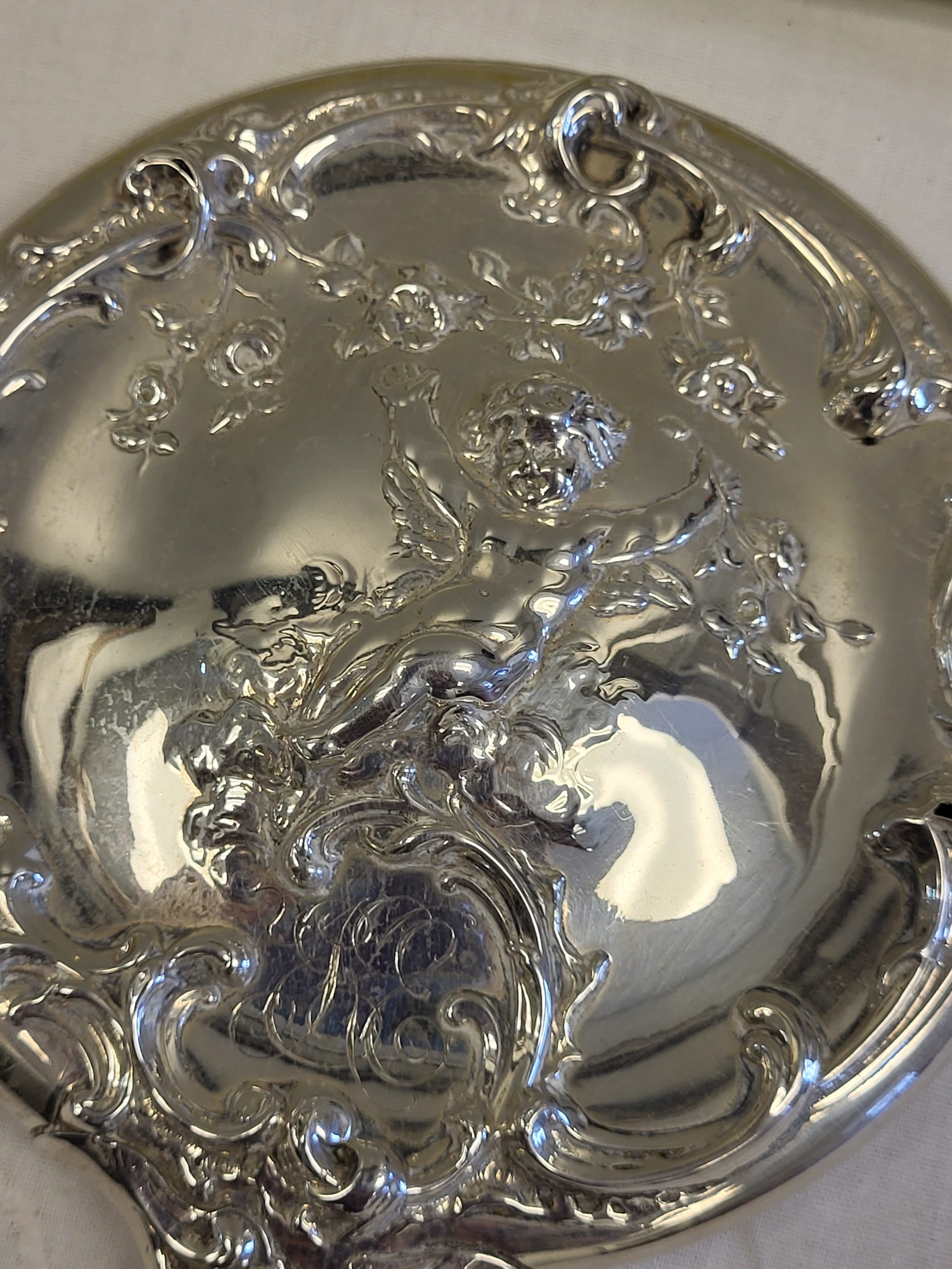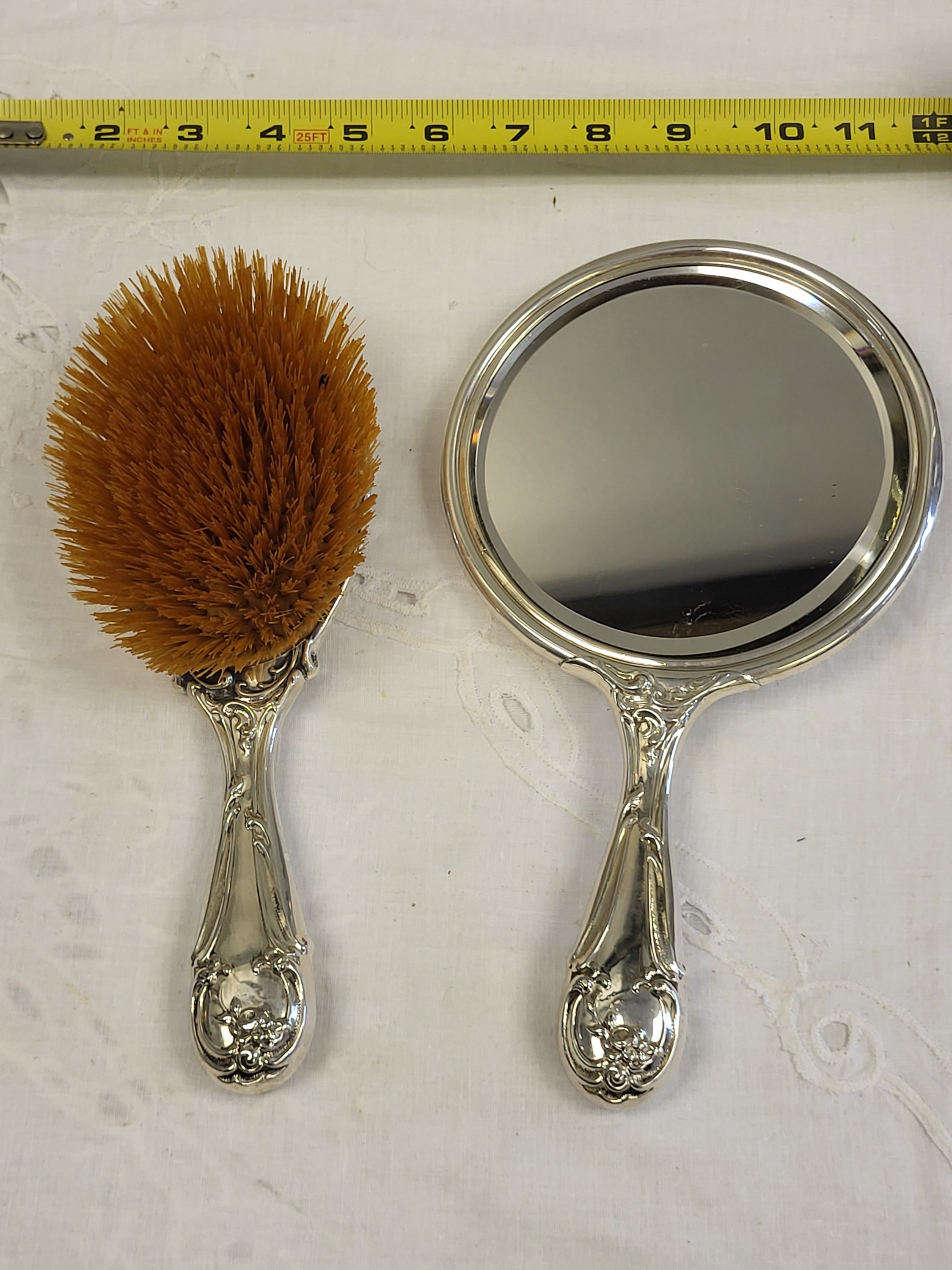 long mirror and 8" long brush appx 500 grams? some wear on back super nice elegant look! the unicorn signifies best quality silver argentium see pics both forone bid